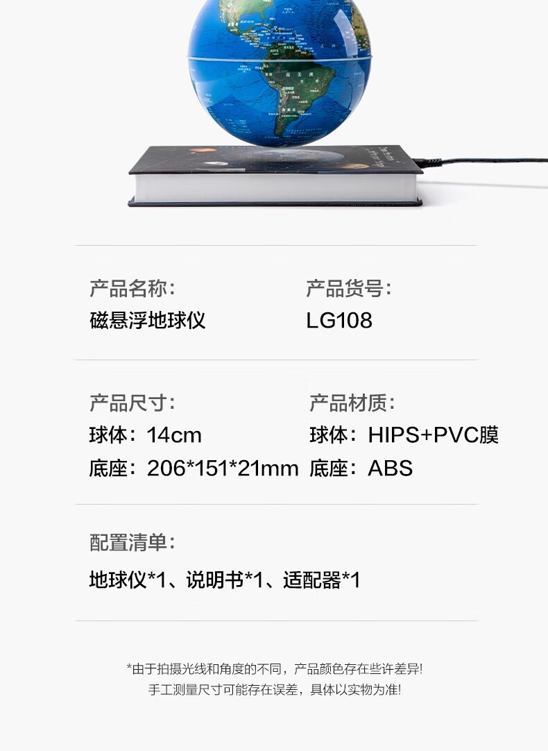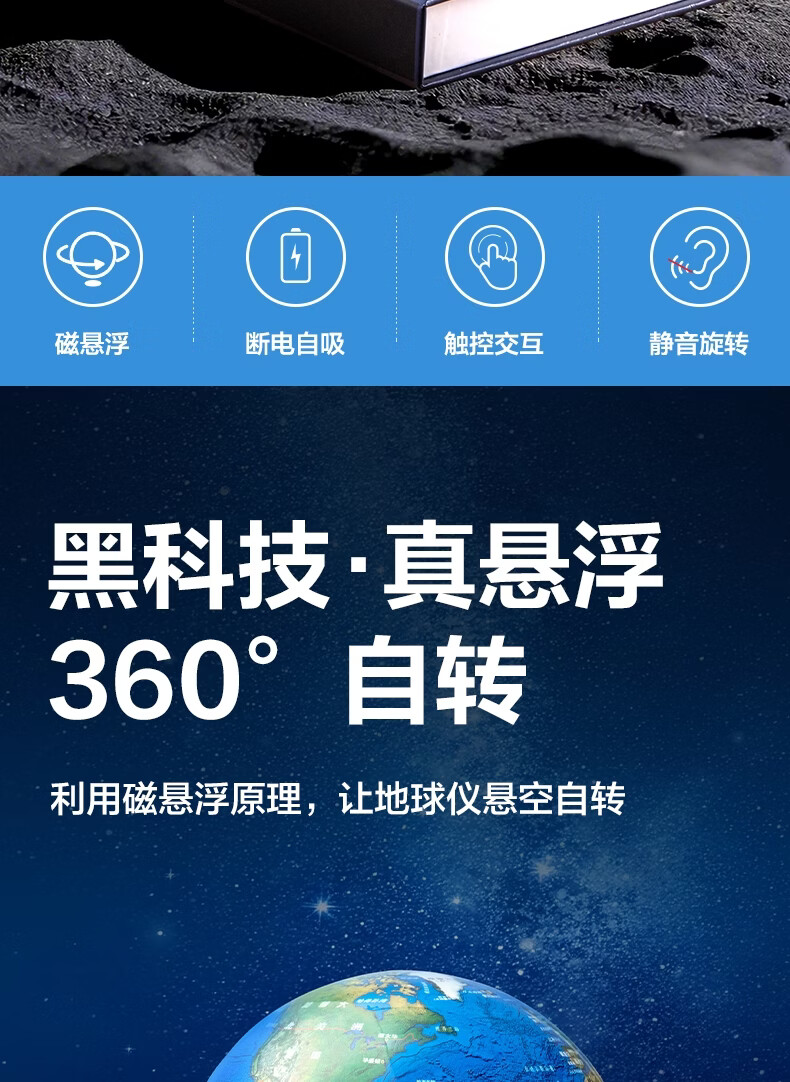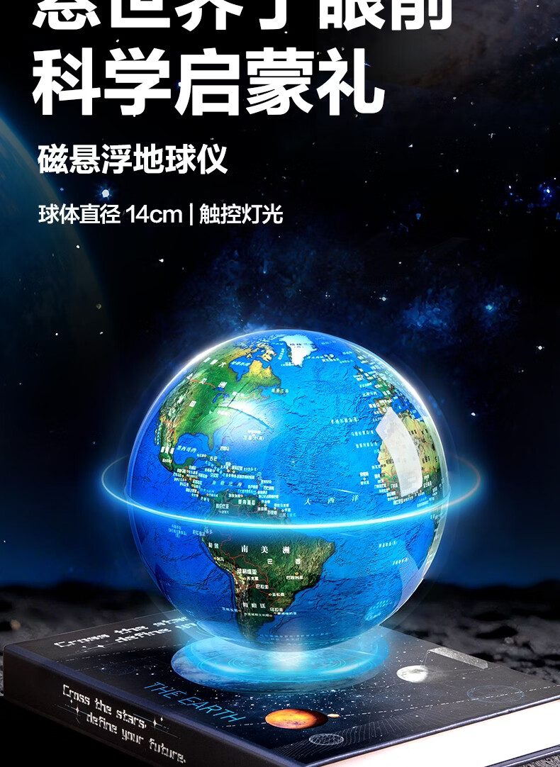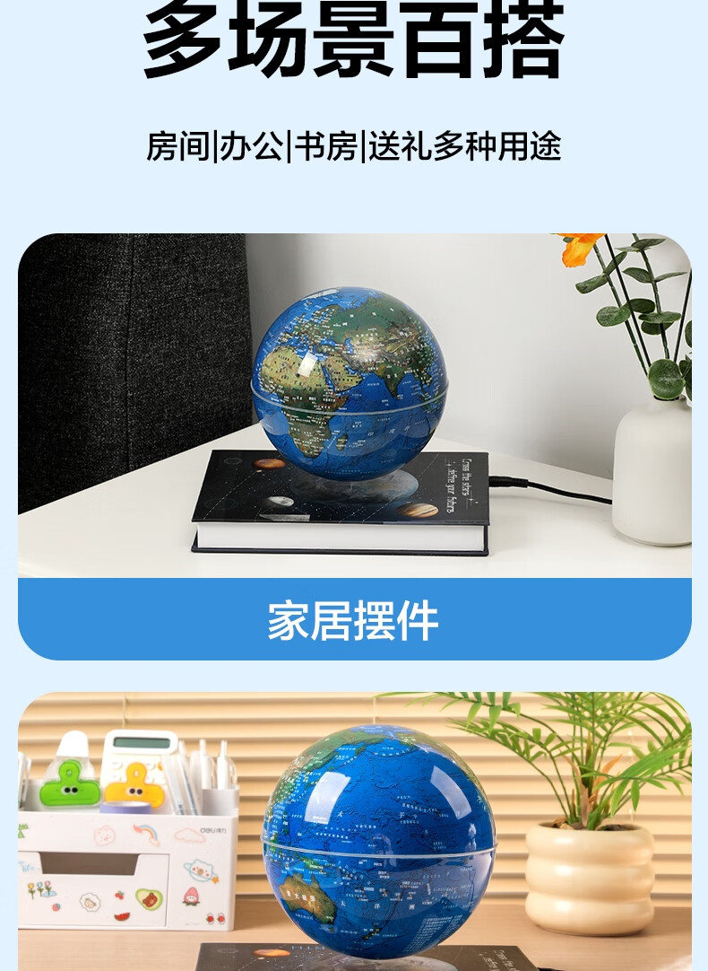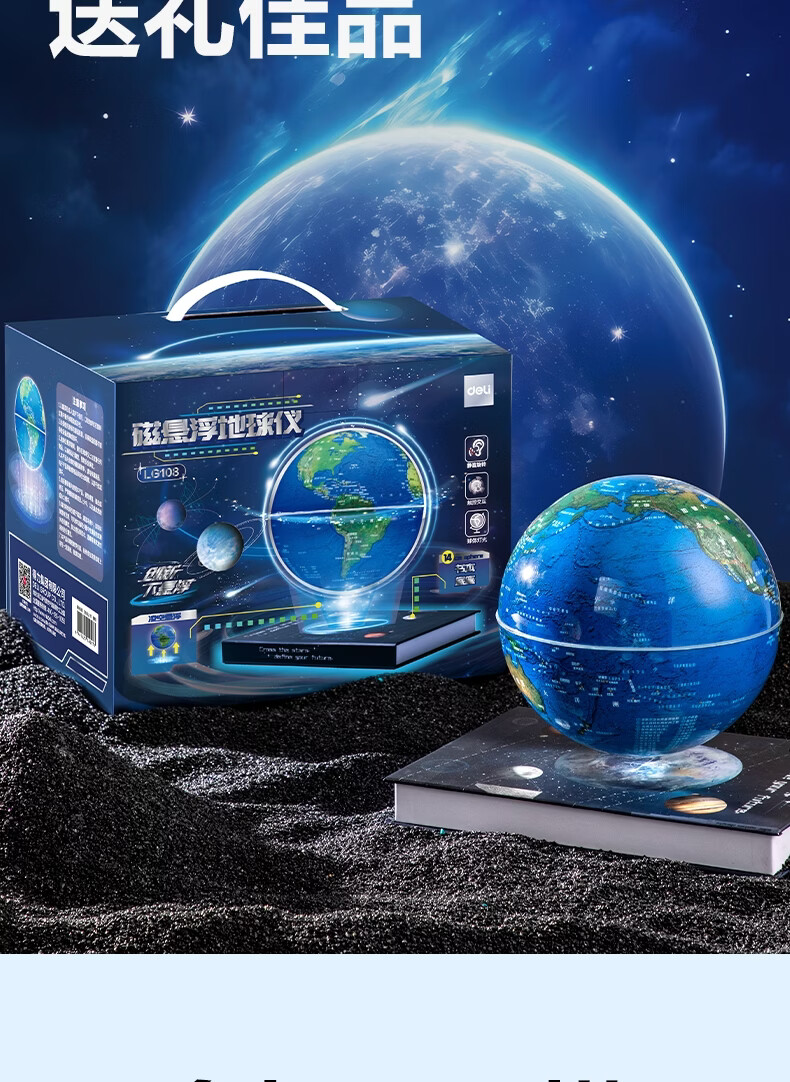 得力书本磁悬浮地球仪男孩女孩夜灯玩具六一儿童节礼物生日礼品小学生初中生礼物