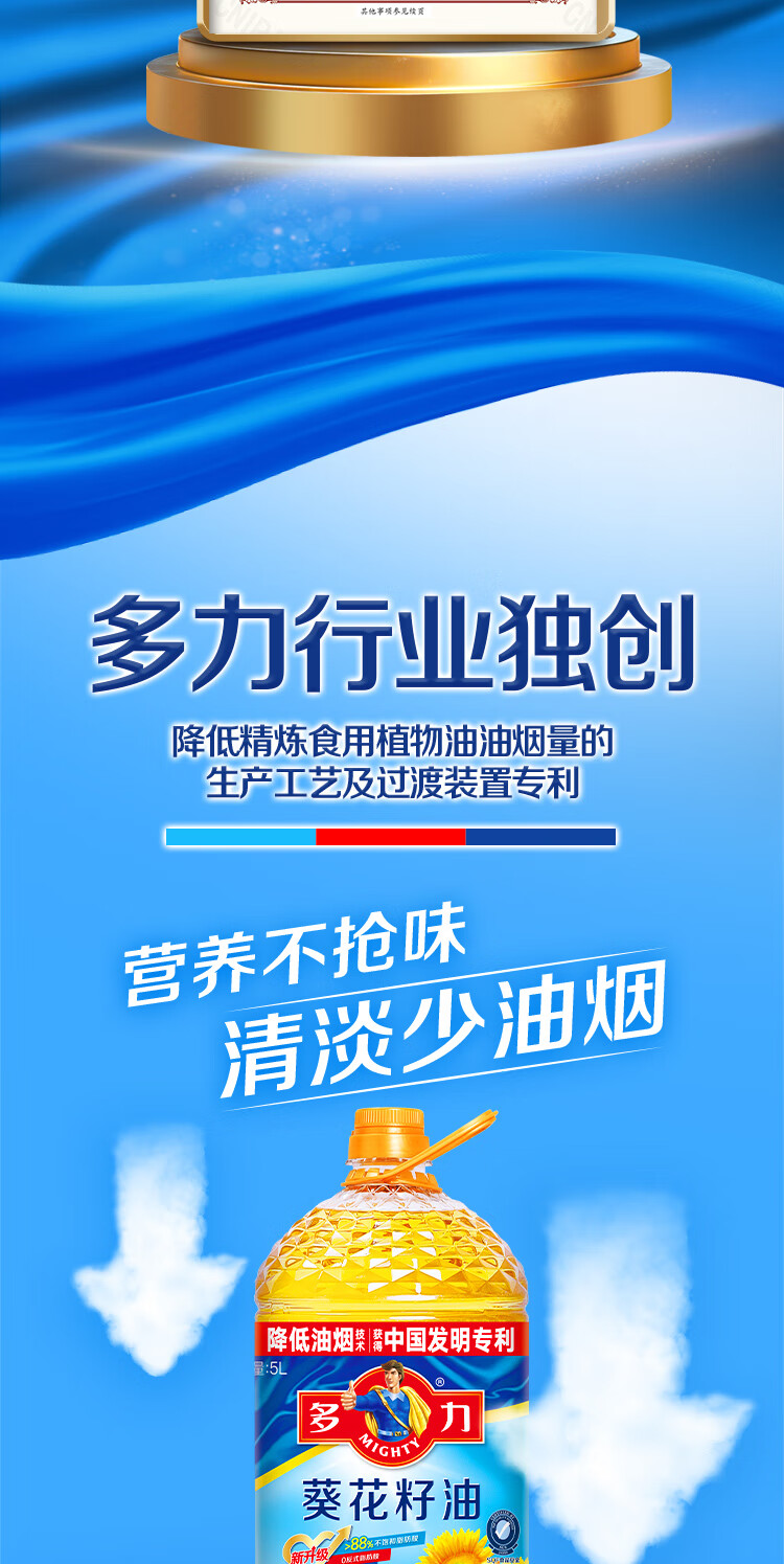 多力【张若昀同款】葵花籽油5L+238ml食用油物理压榨零反式脂肪酸年货