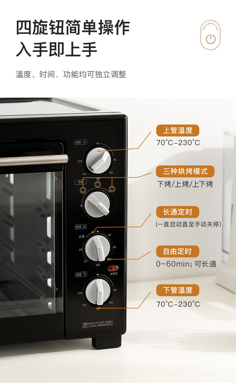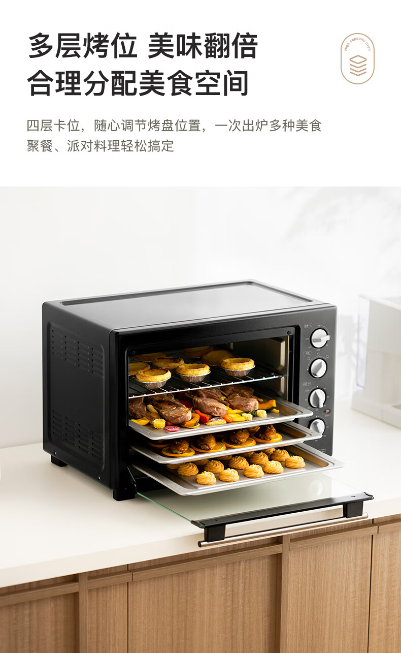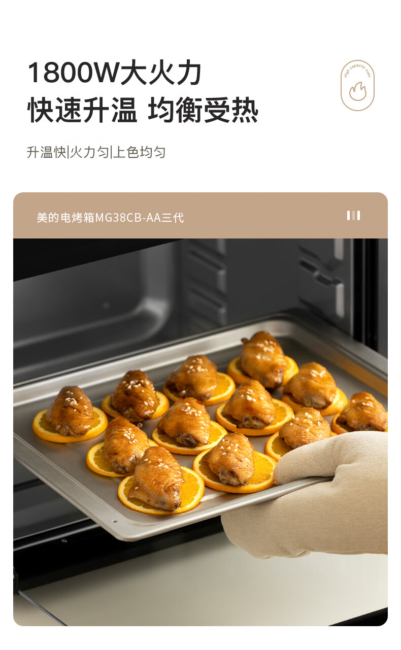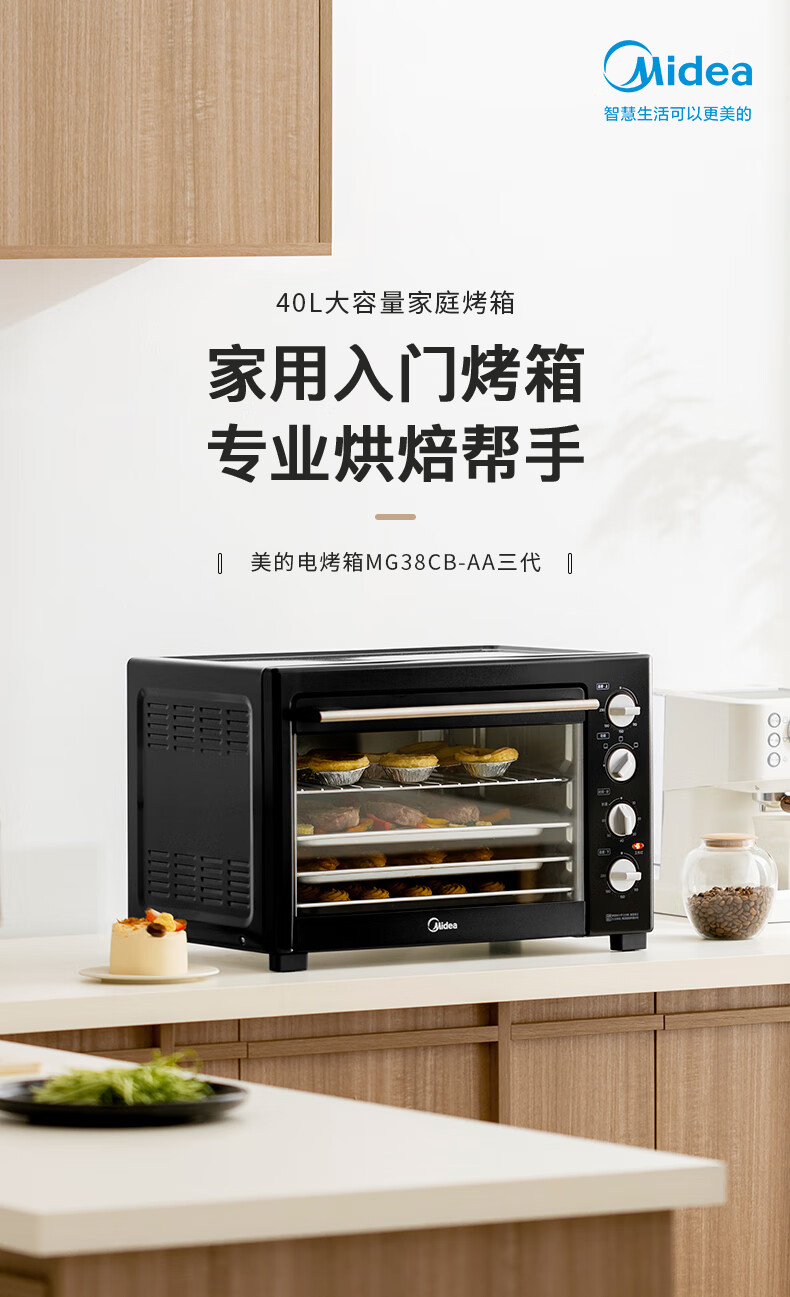 美的(Midea)40L大容量多功能电烤箱家用专业烘焙 上下独立控/温机械操控/四层烤位MG38CB-AA三代