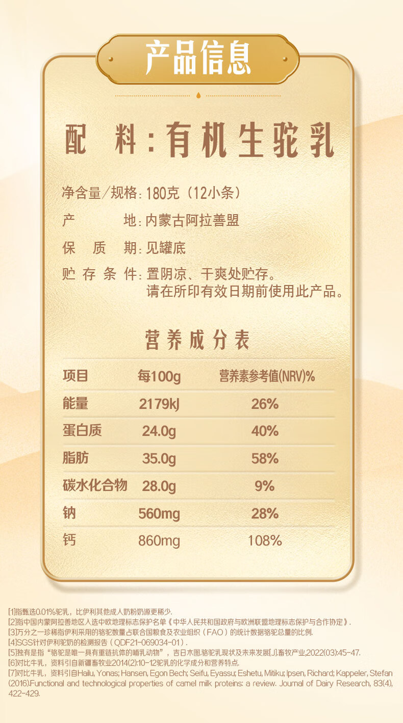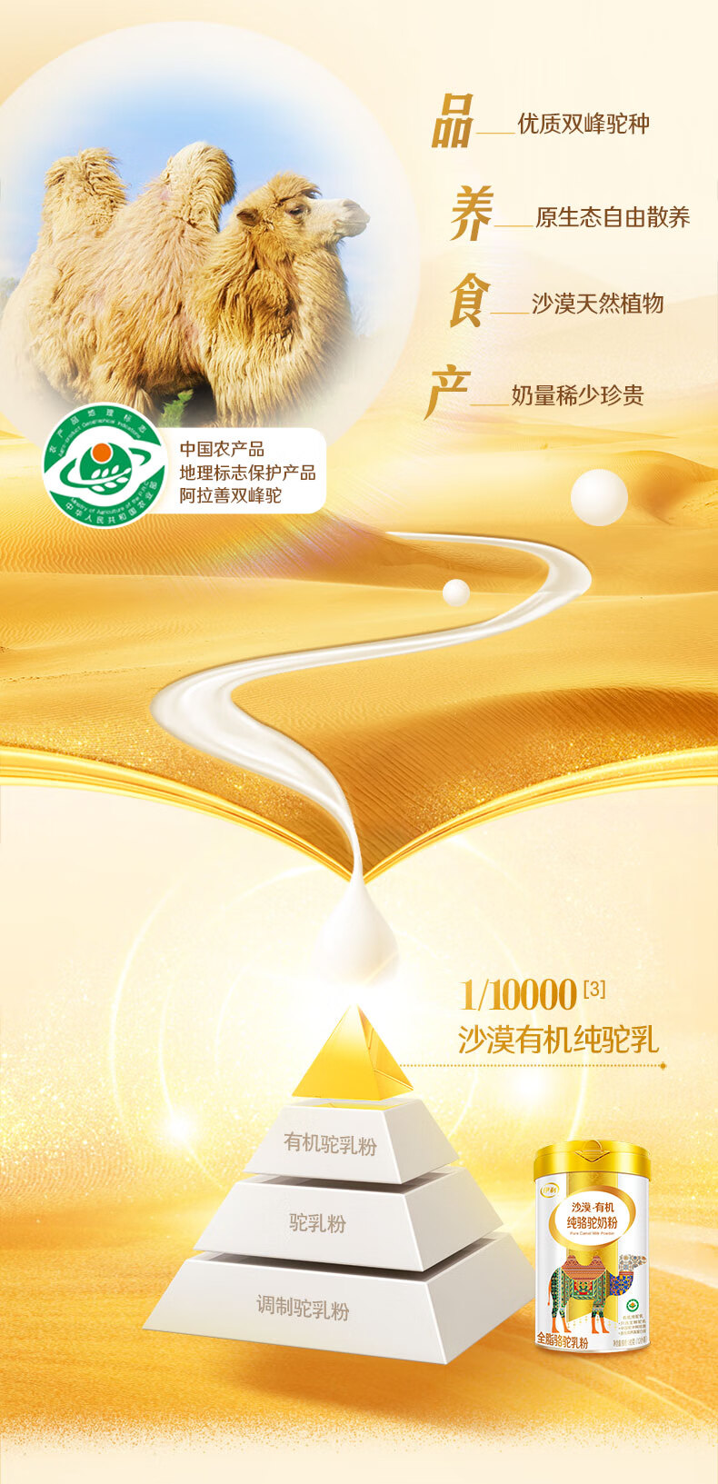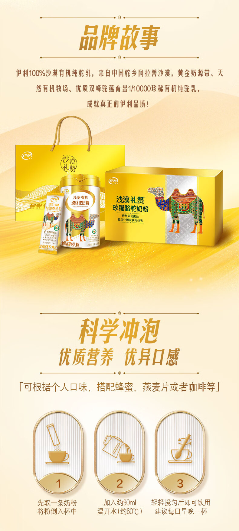 伊利沙漠有机纯骆驼奶粉礼盒 年货节送礼 中老年奶粉 老人营养 180g*2