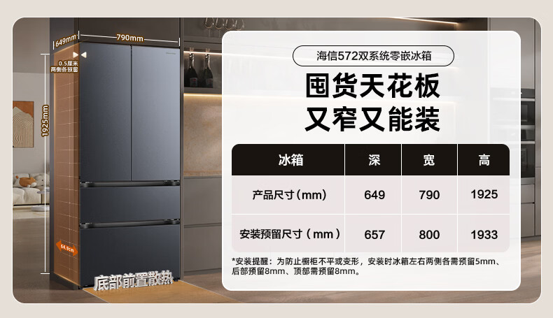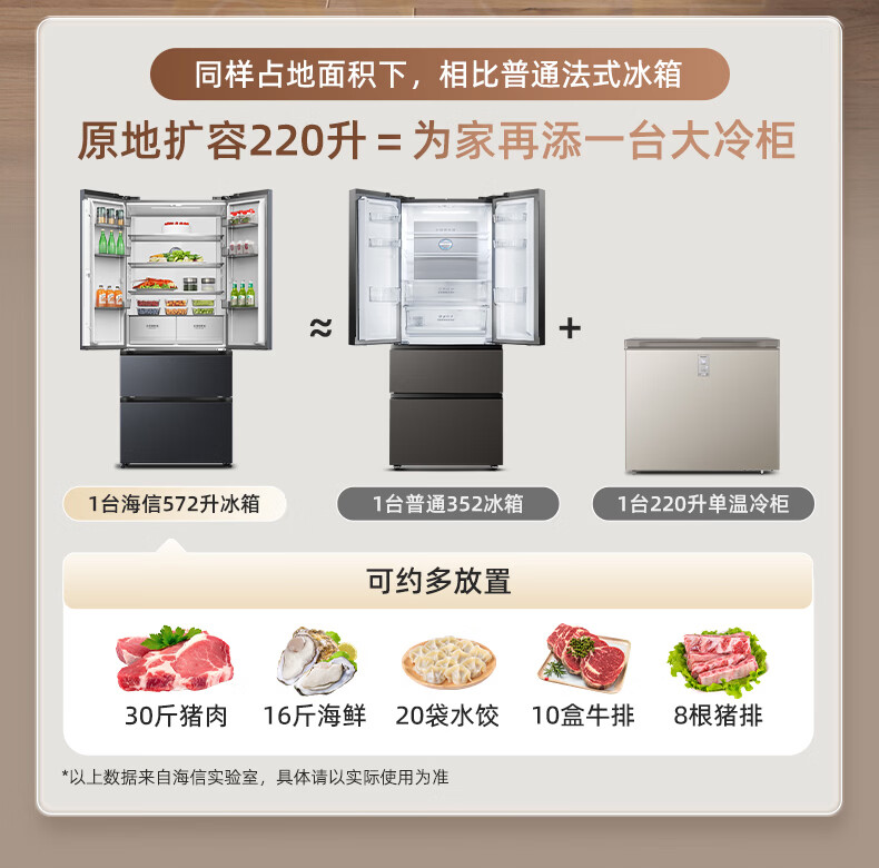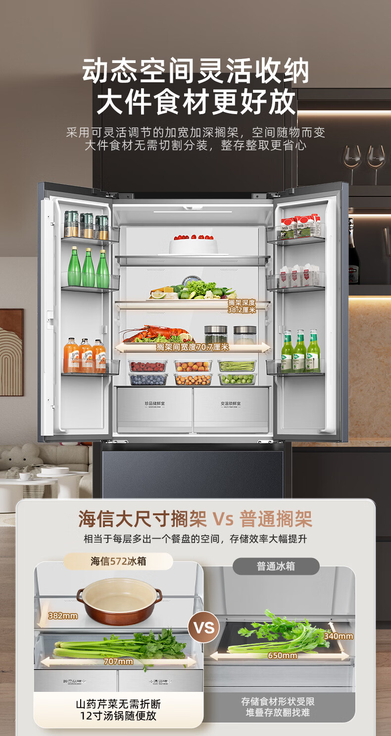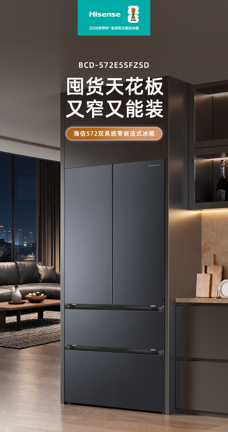 海信572L冰箱法式多门冰箱双系统零嵌大容量主动除菌净味超薄超窄冰箱BCD-572E5SFZSD国家补贴