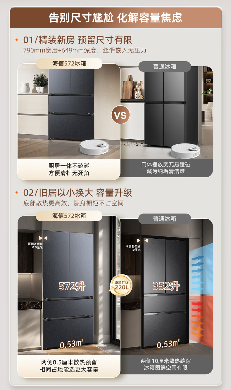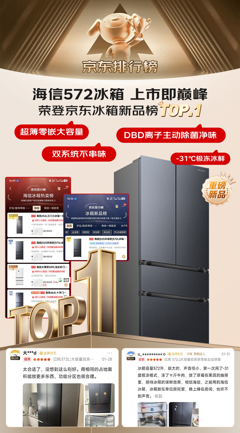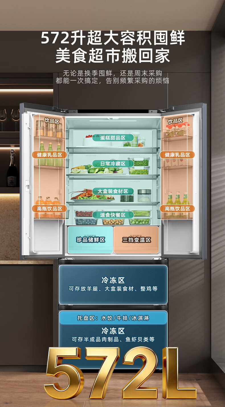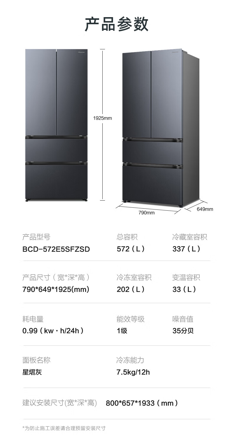 海信572L冰箱法式多门冰箱双系统零嵌大容量主动除菌净味超薄超窄冰箱BCD-572E5SFZSD国家补贴