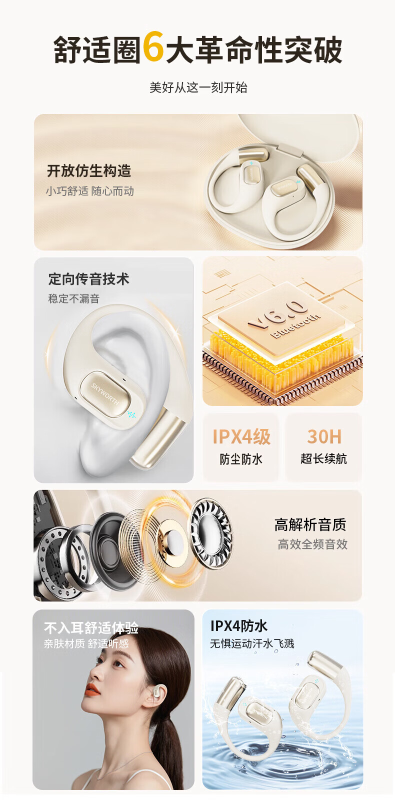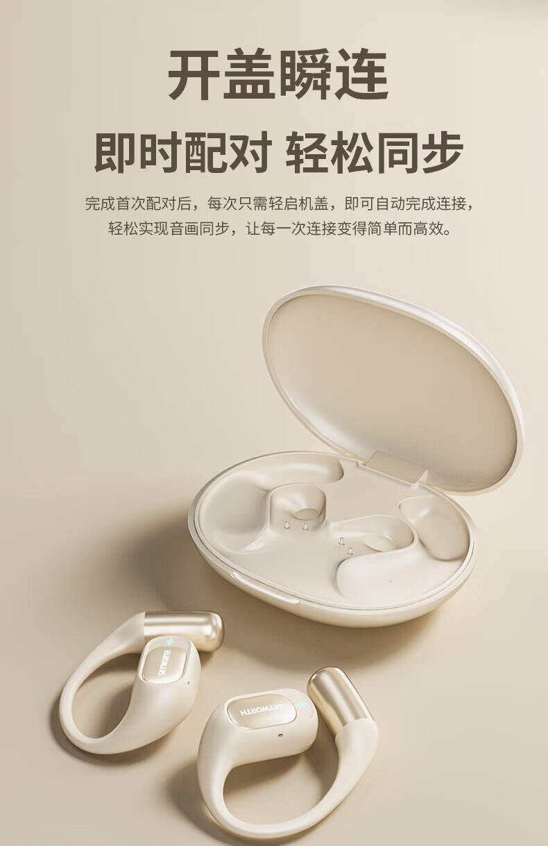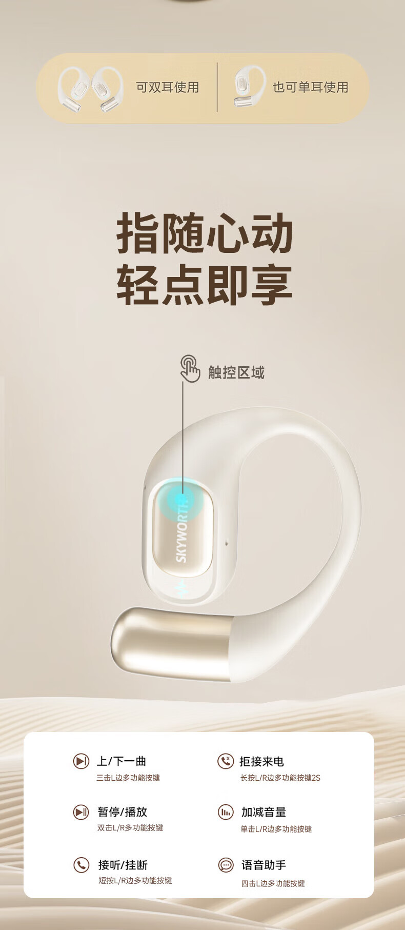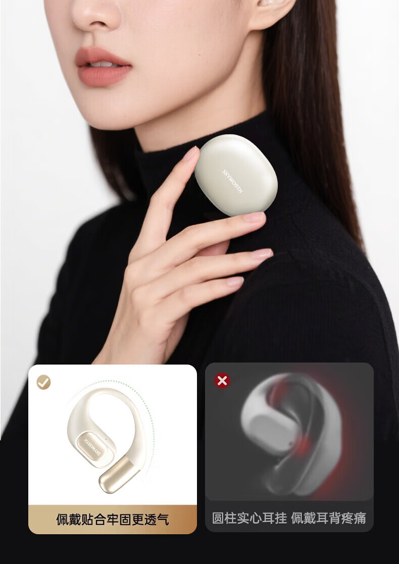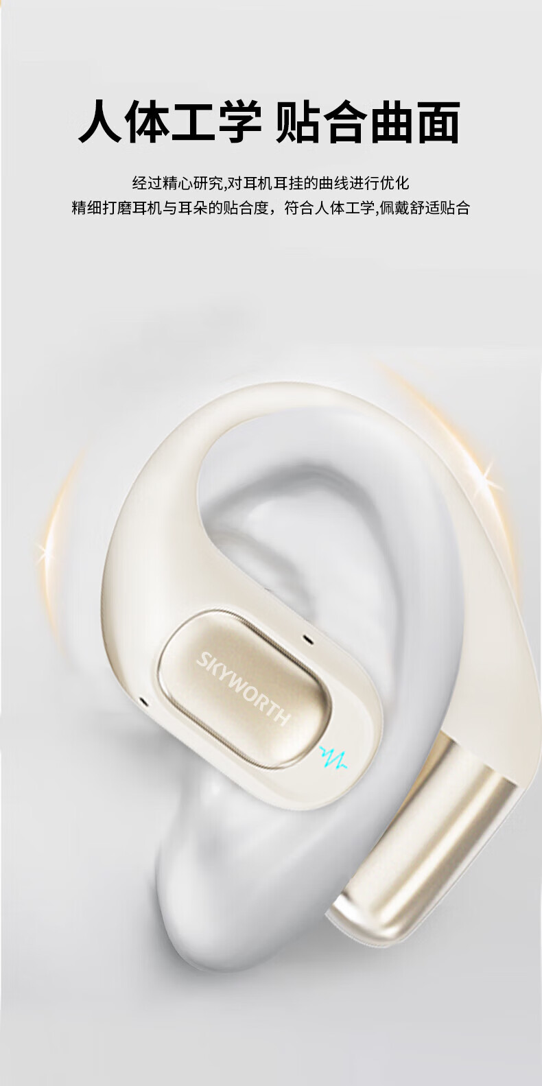 创维(Skyworth)D2 OpenFit 浅岩米 蓝牙耳机挂耳式骨传导开放式不入耳运动耳机超长续航降噪高音质降噪久戴不痛