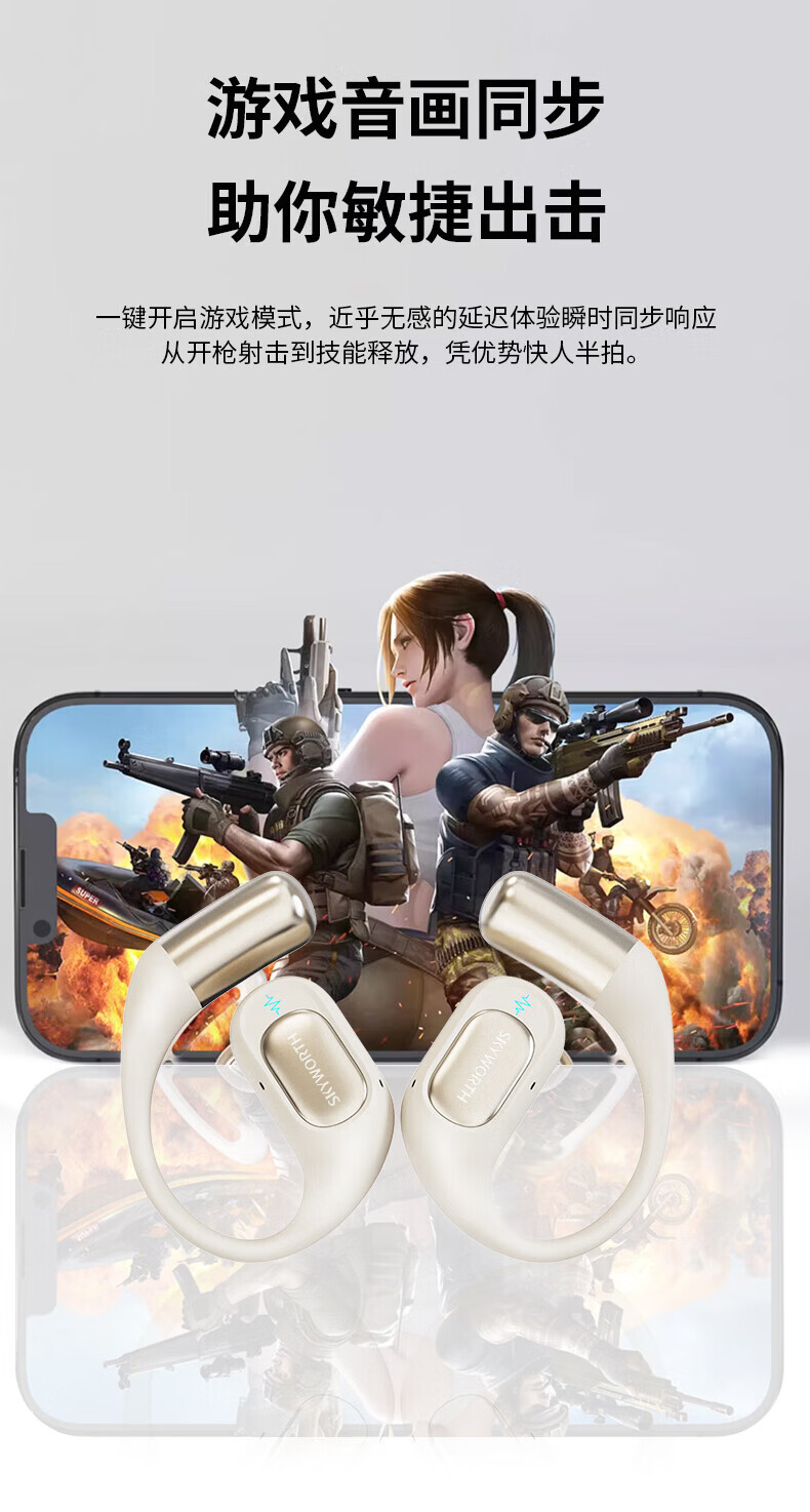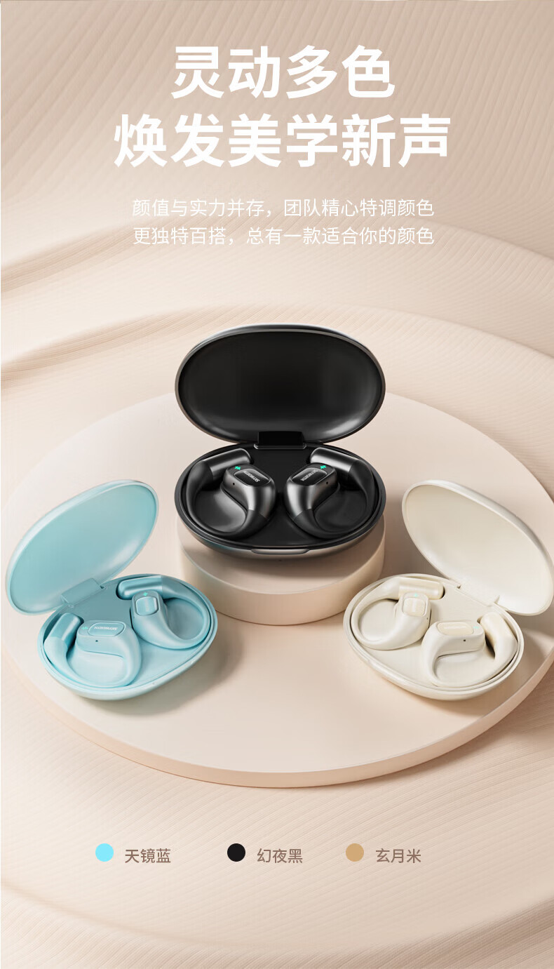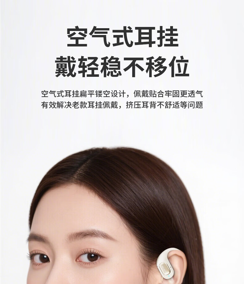 REAL YOUNGJWS 开放运动舒适不入耳挂耳式AI通话降噪 ipx7防水 超长续航高颜值配饰无线蓝牙耳机