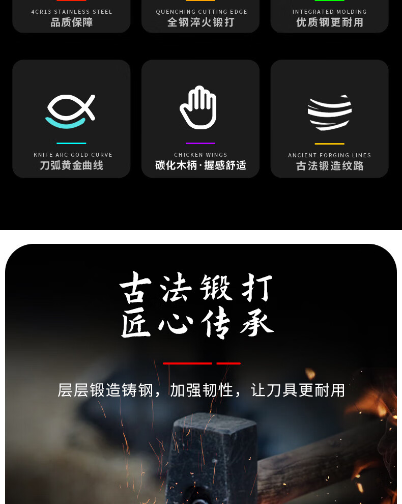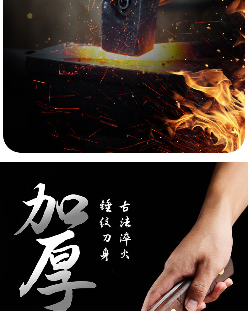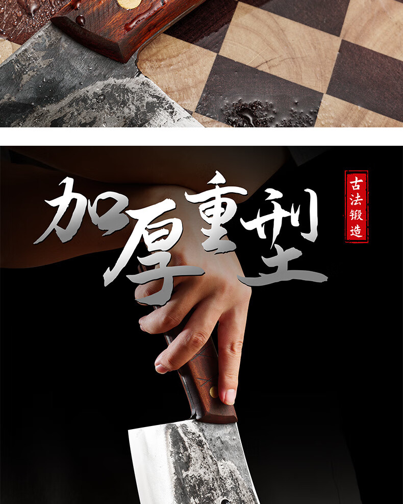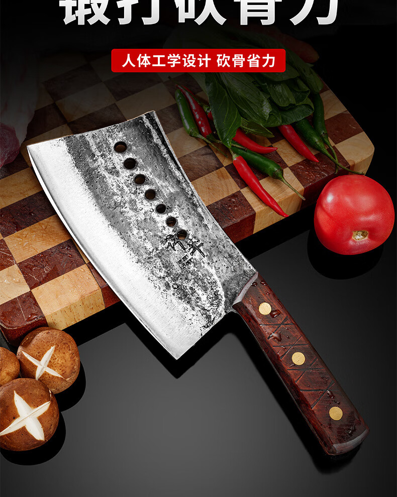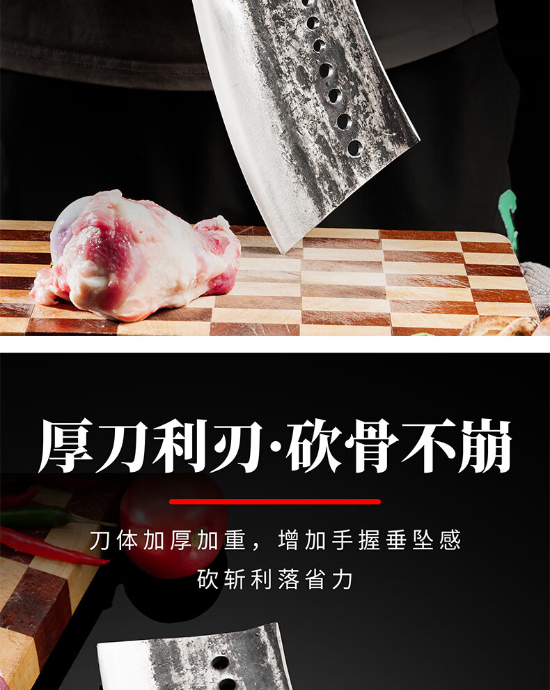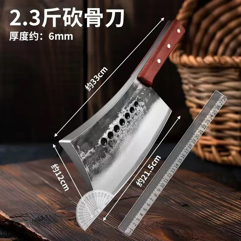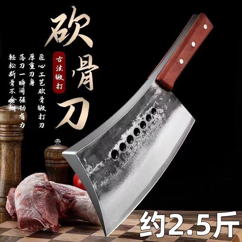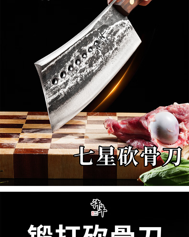 阳江砍骨刀锻打高锰钢高硬度重型砍骨头刀斩剁大骨七星加厚菜刀具 锰钢加厚砍骨刀【约3.0斤】