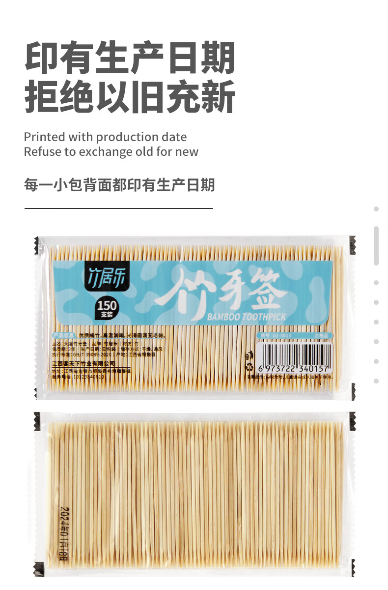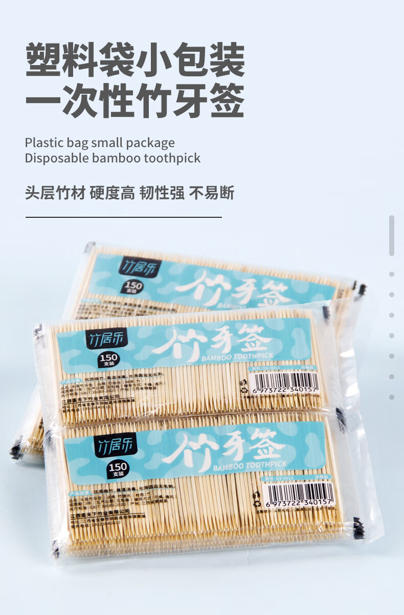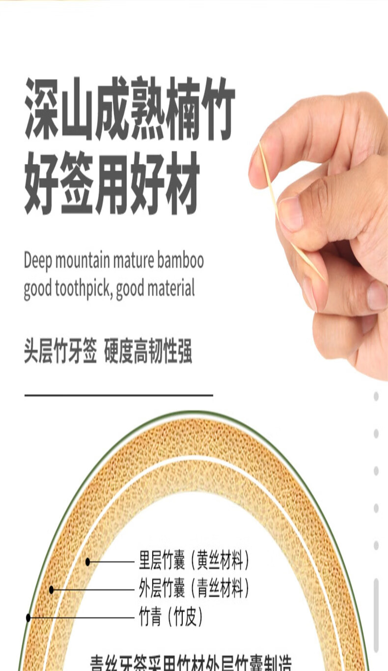 牙签家用水果牙签盒一次性双头竹制木牙签便携牙签剔牙 5袋约750支