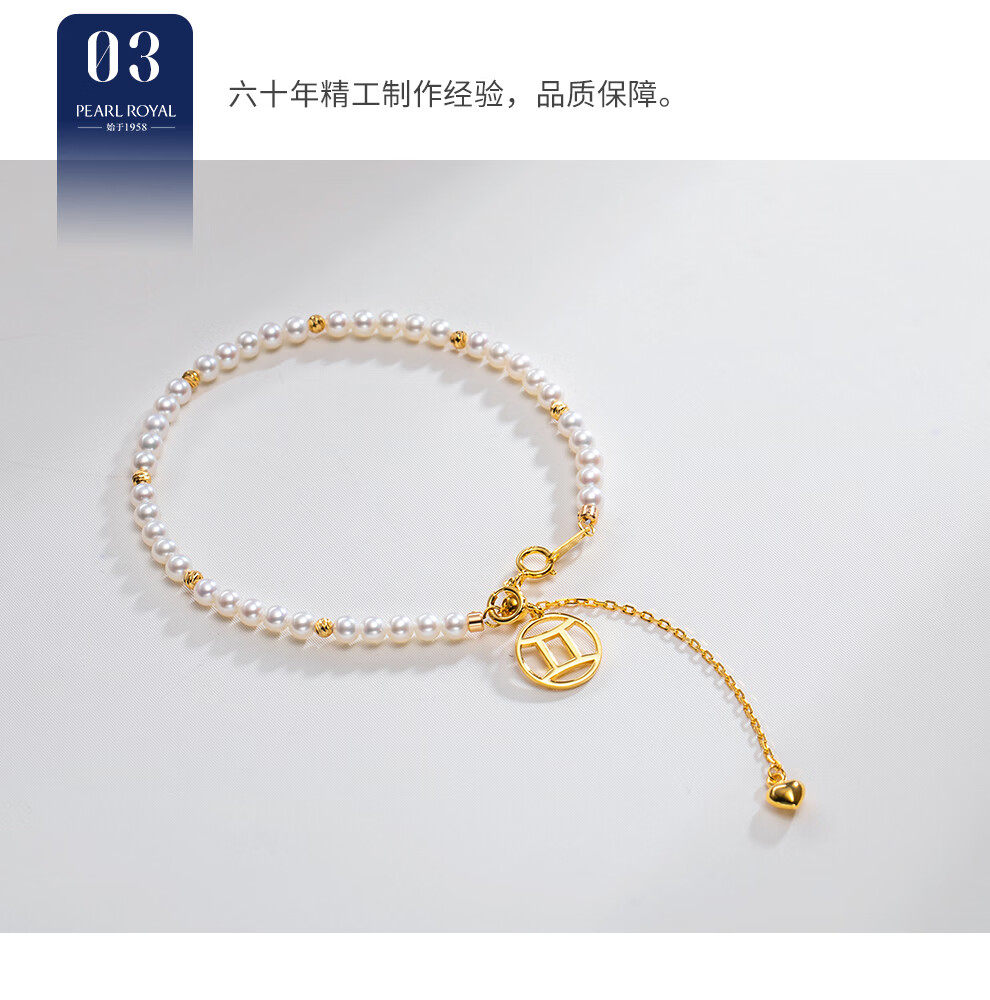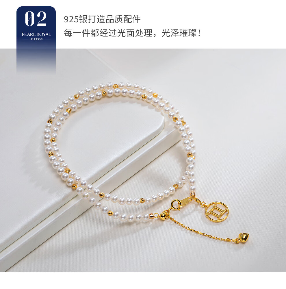 南珠宫绾华925银双层海水珍珠手链强光泽圆形年轻款百搭新年礼物送老婆 金色款 5.5-6.0mm