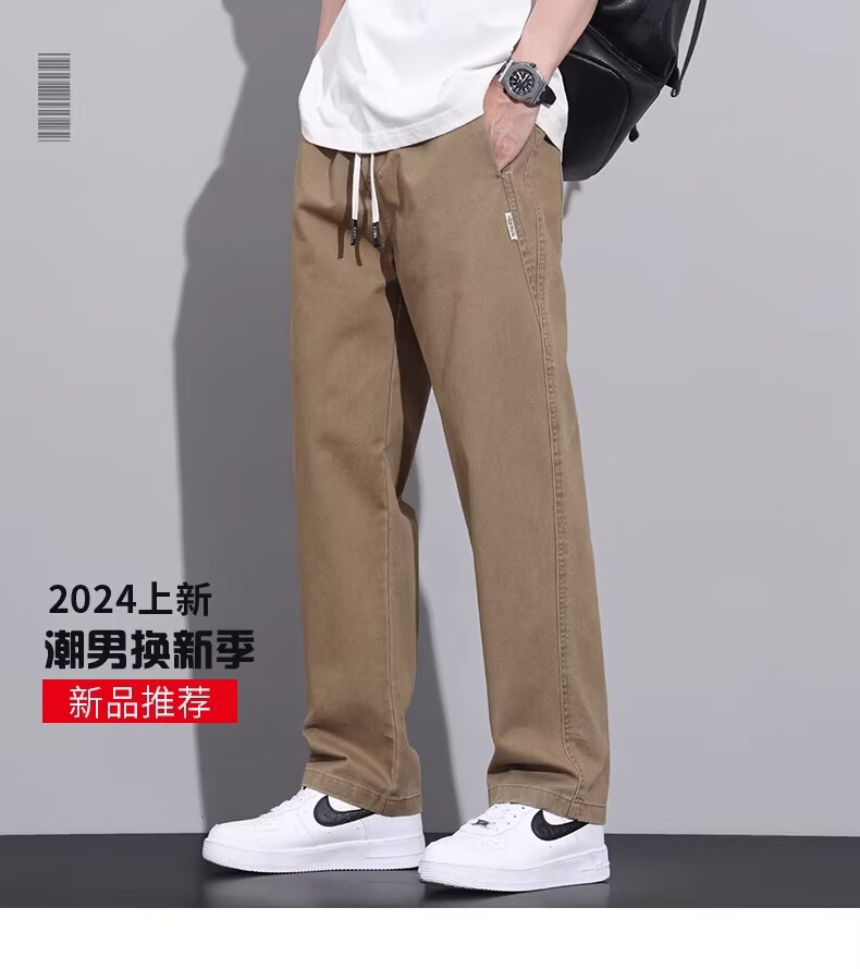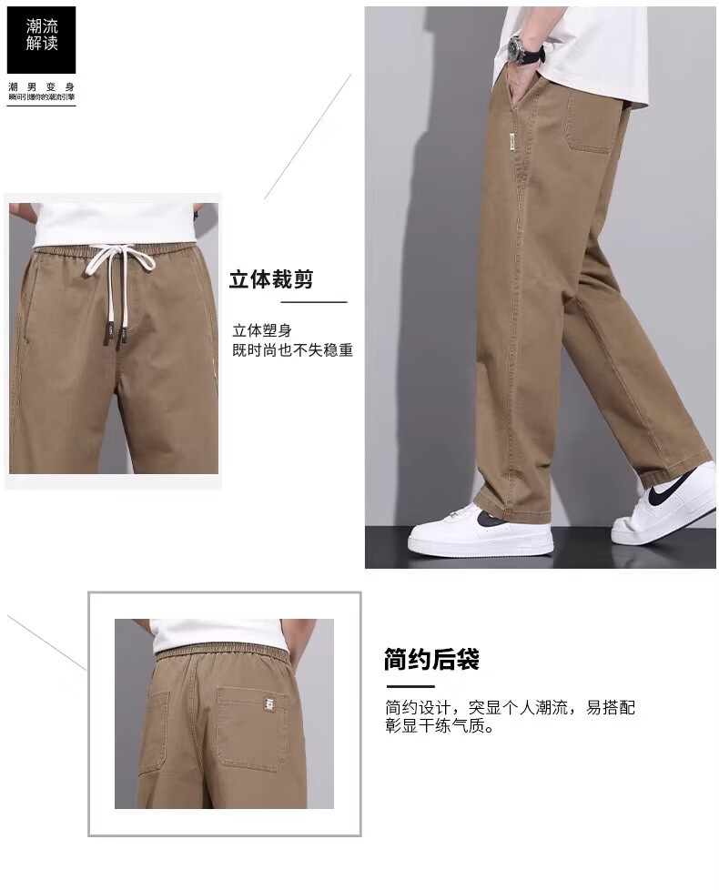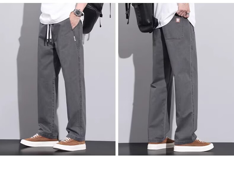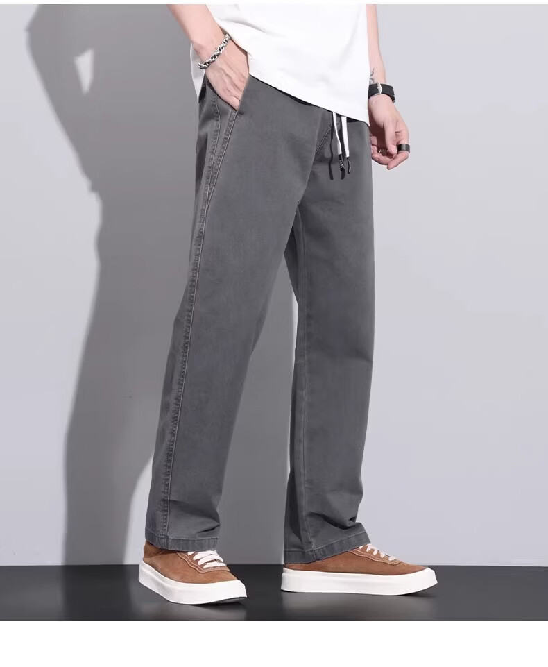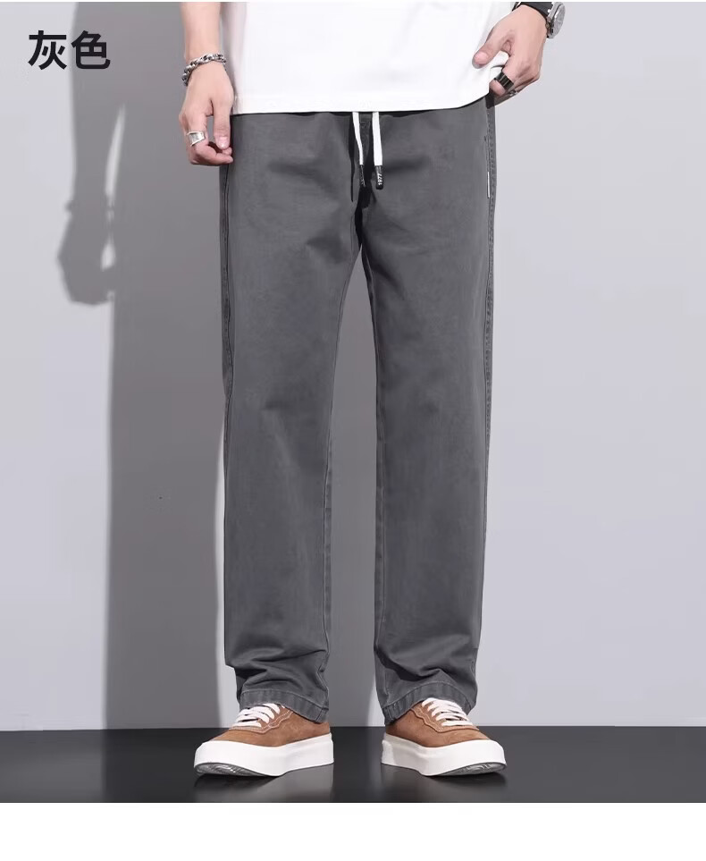 真维斯秋冬季纯棉仿牛仔裤男士直筒裤2026新款抽绳松紧腰宽松休闲长裤子 灰色 M