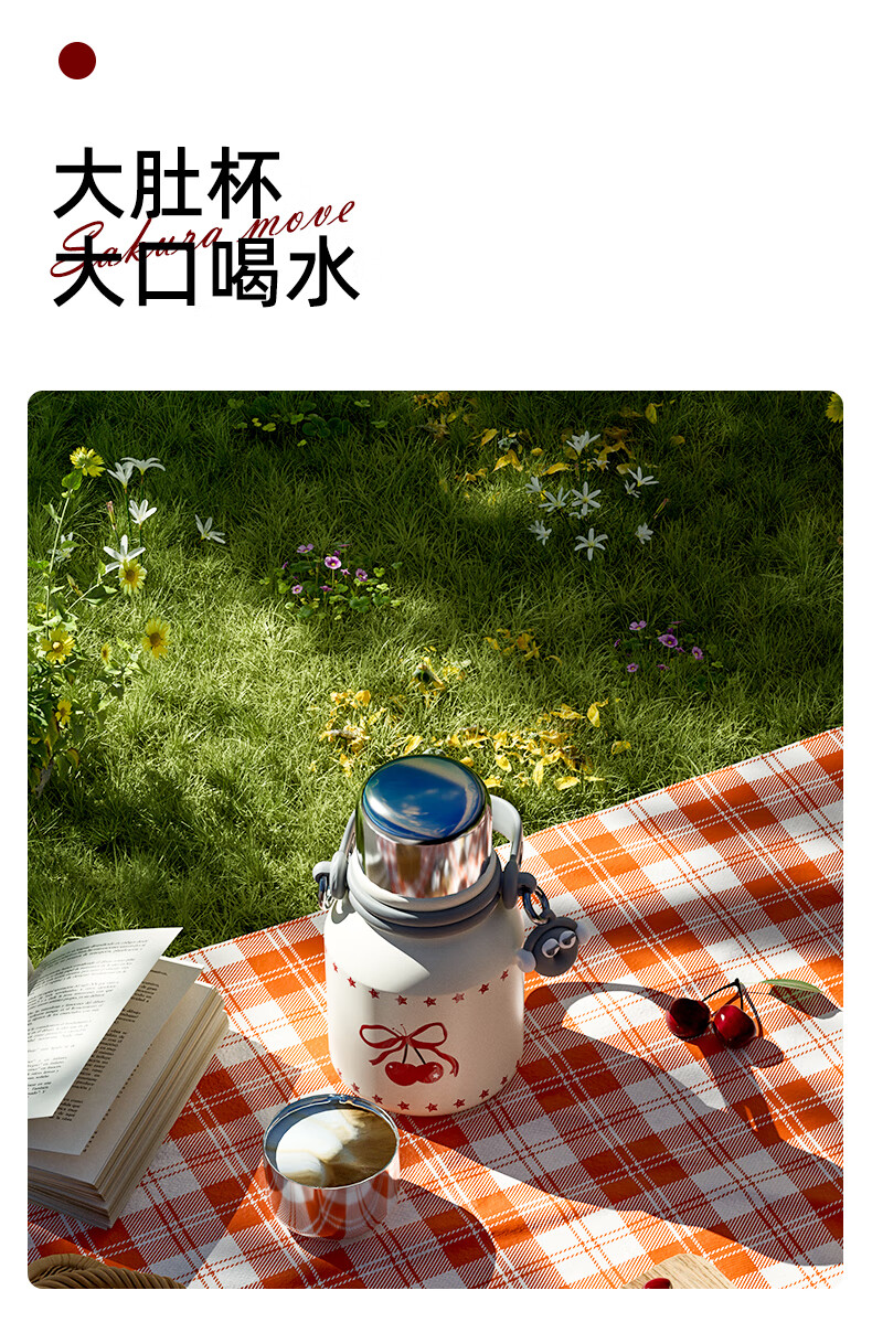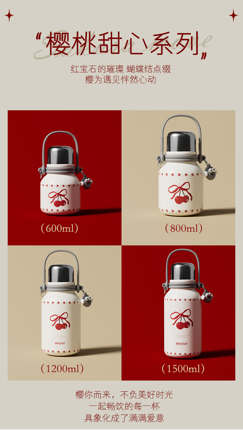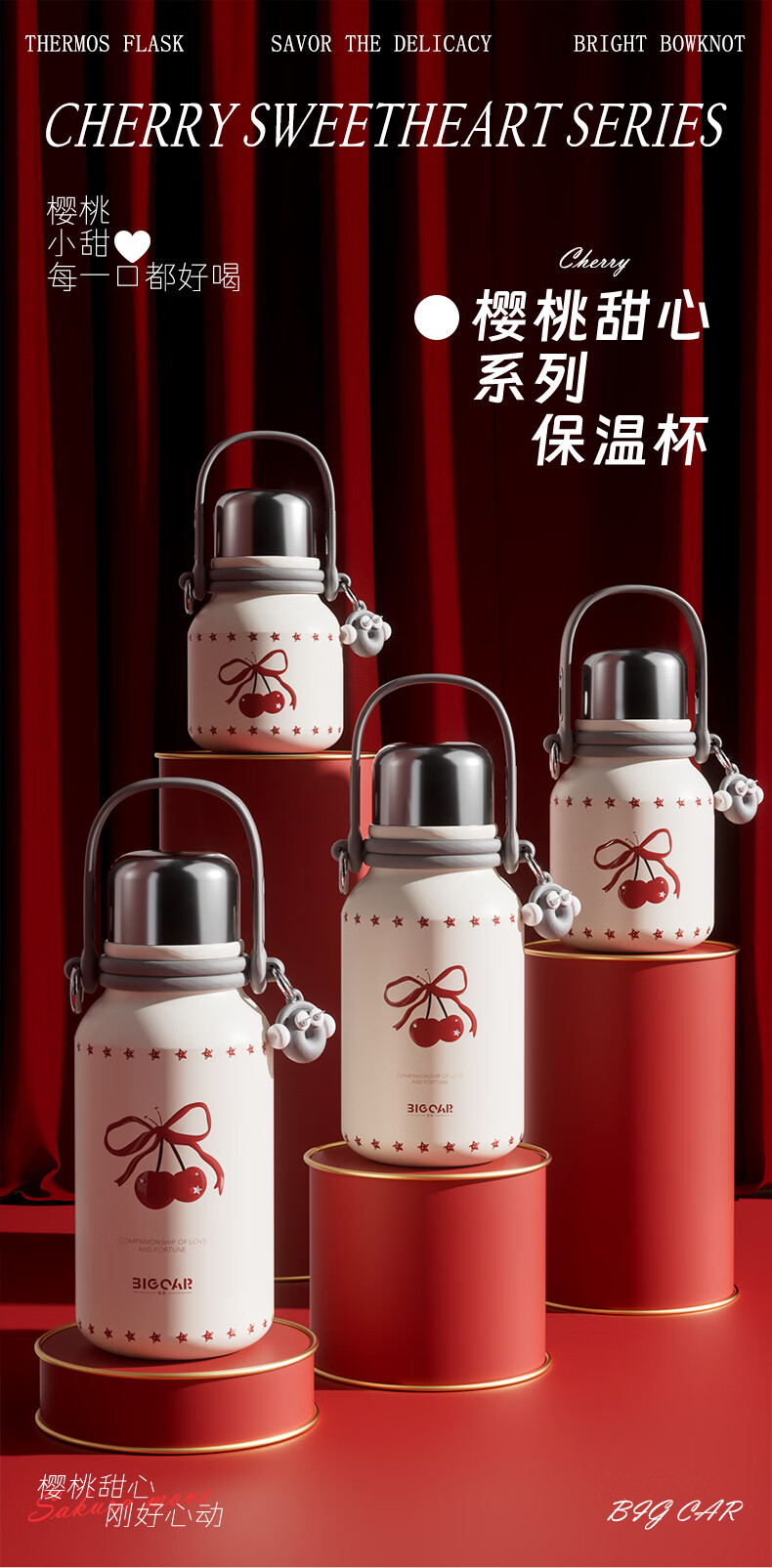 大卡保温杯大容量2025新款男女生高颜值水杯子316不锈钢便携保温水壶 白星樱桃【送玩偶+杯带】800ml