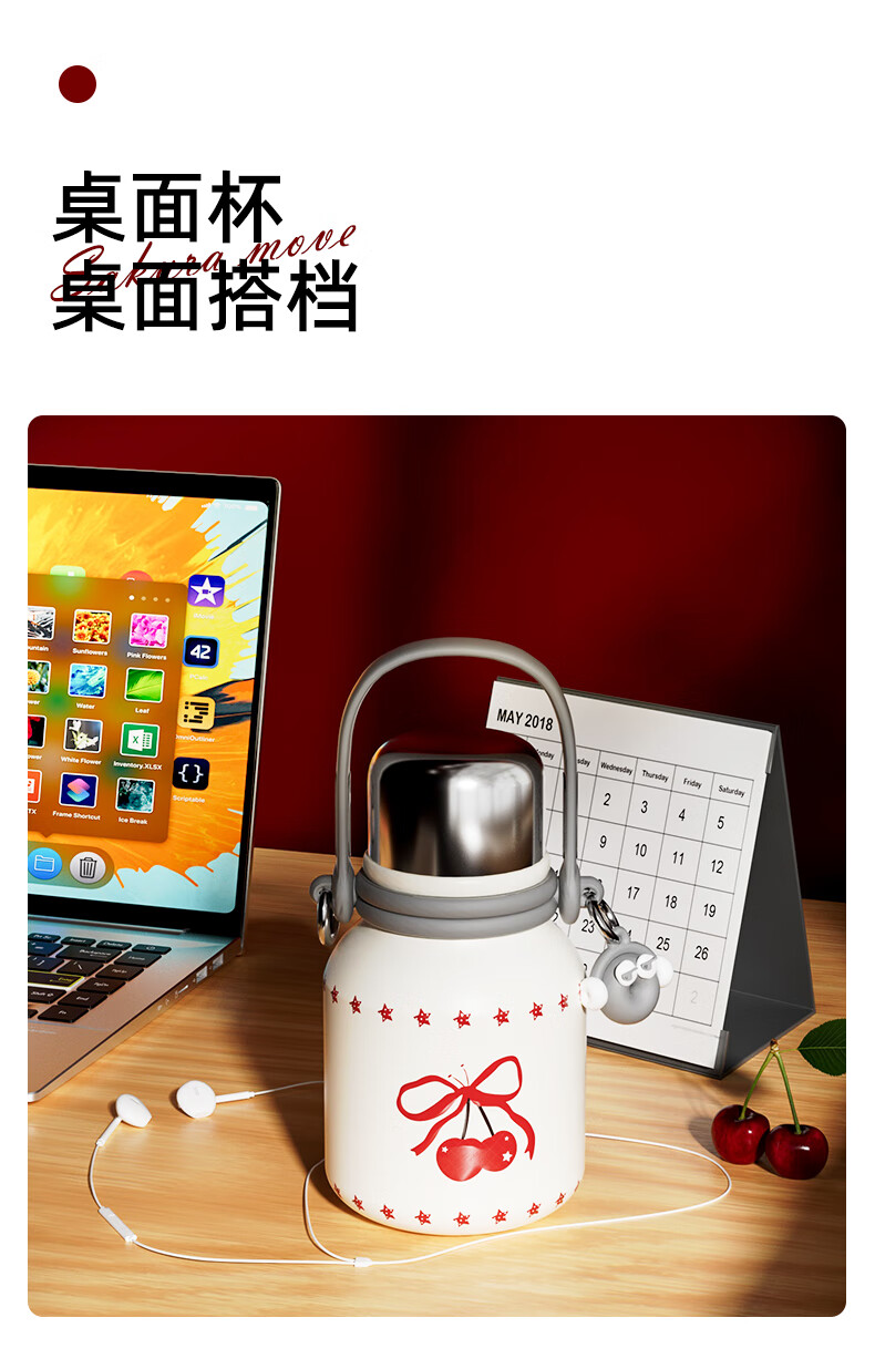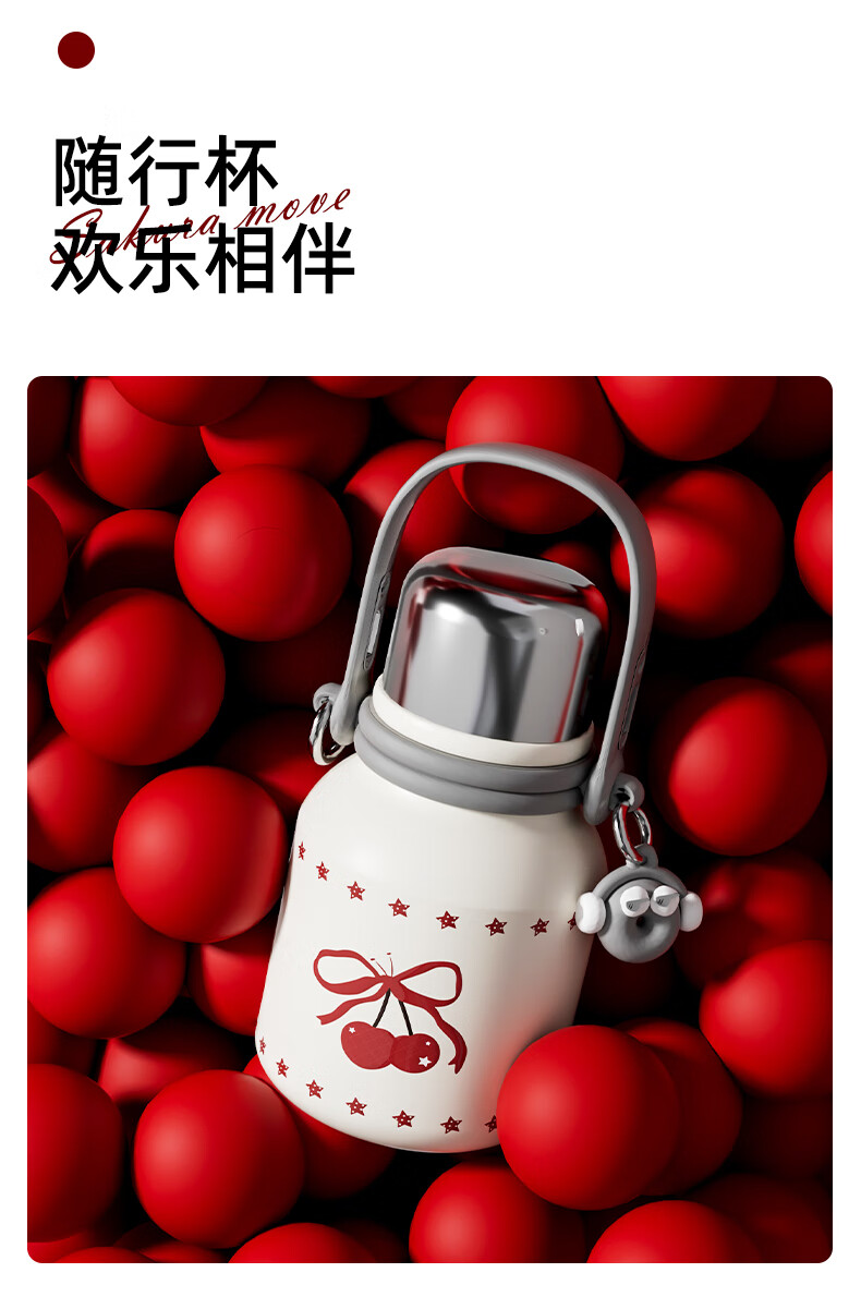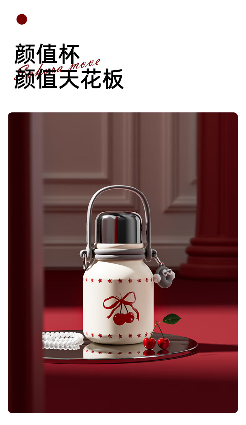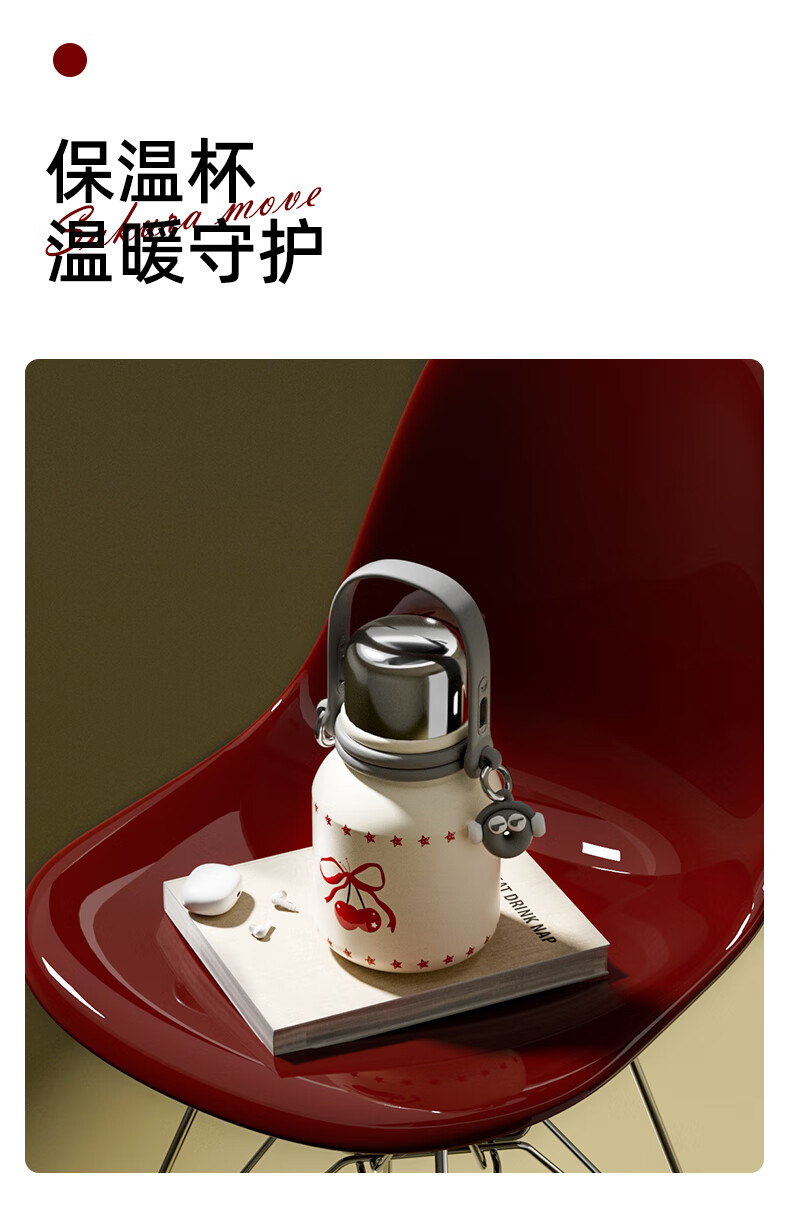 大卡保温杯大容量2025新款男女生高颜值水杯子316不锈钢便携保温水壶 白星樱桃【送玩偶+杯带】800ml