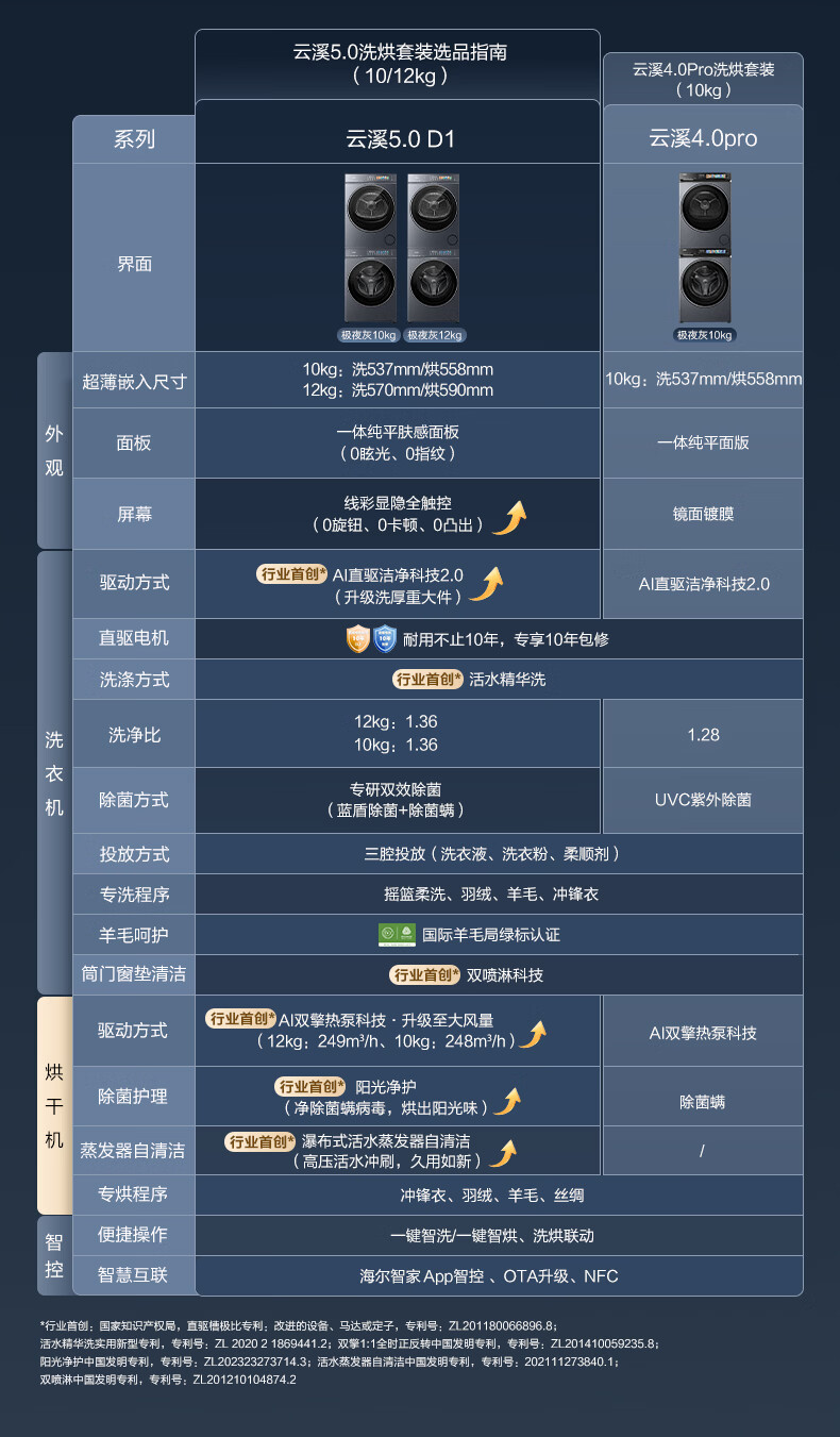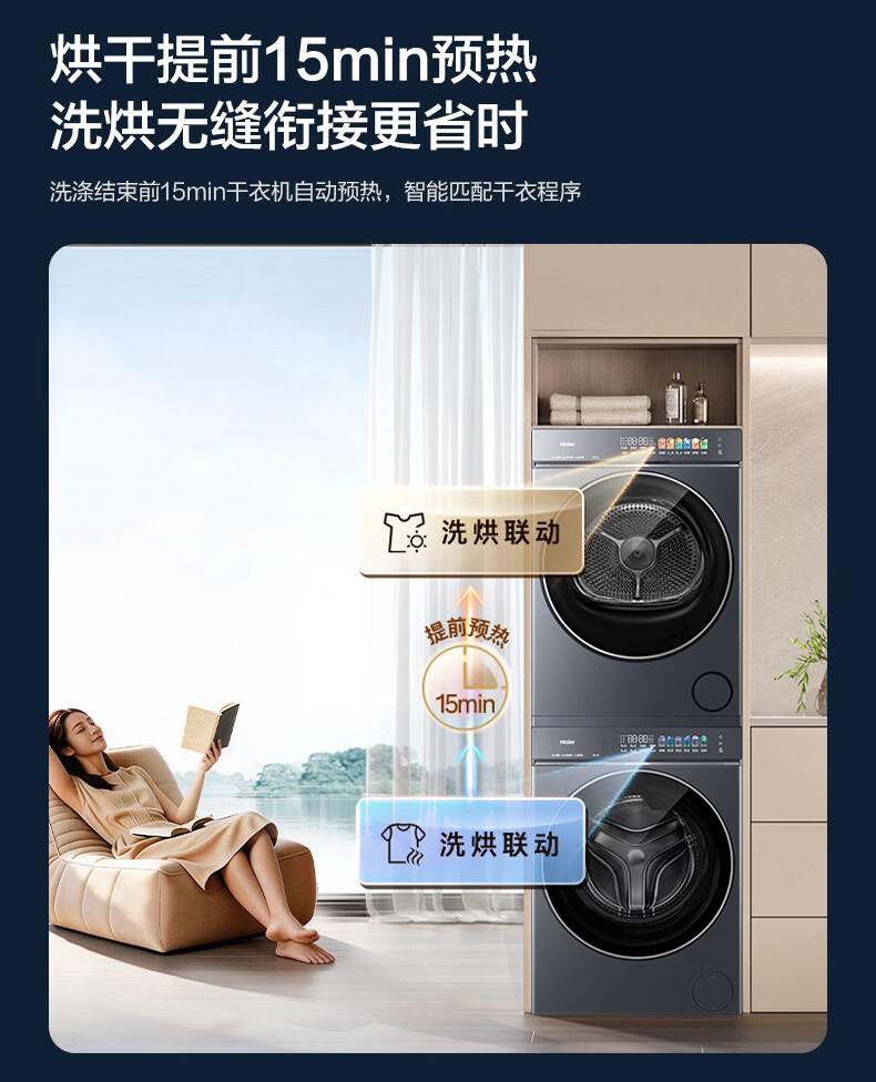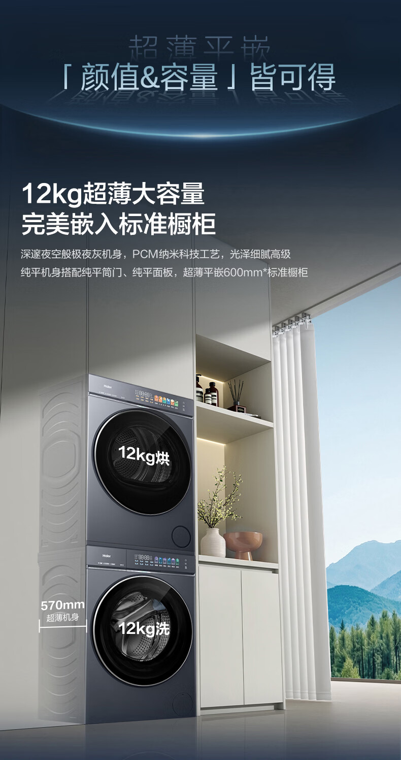 海尔(Haier)云溪5.0滚筒洗烘套装 12KG 全自动滚筒洗衣机+双擎热泵烘干机A直驱双效除菌 D1
