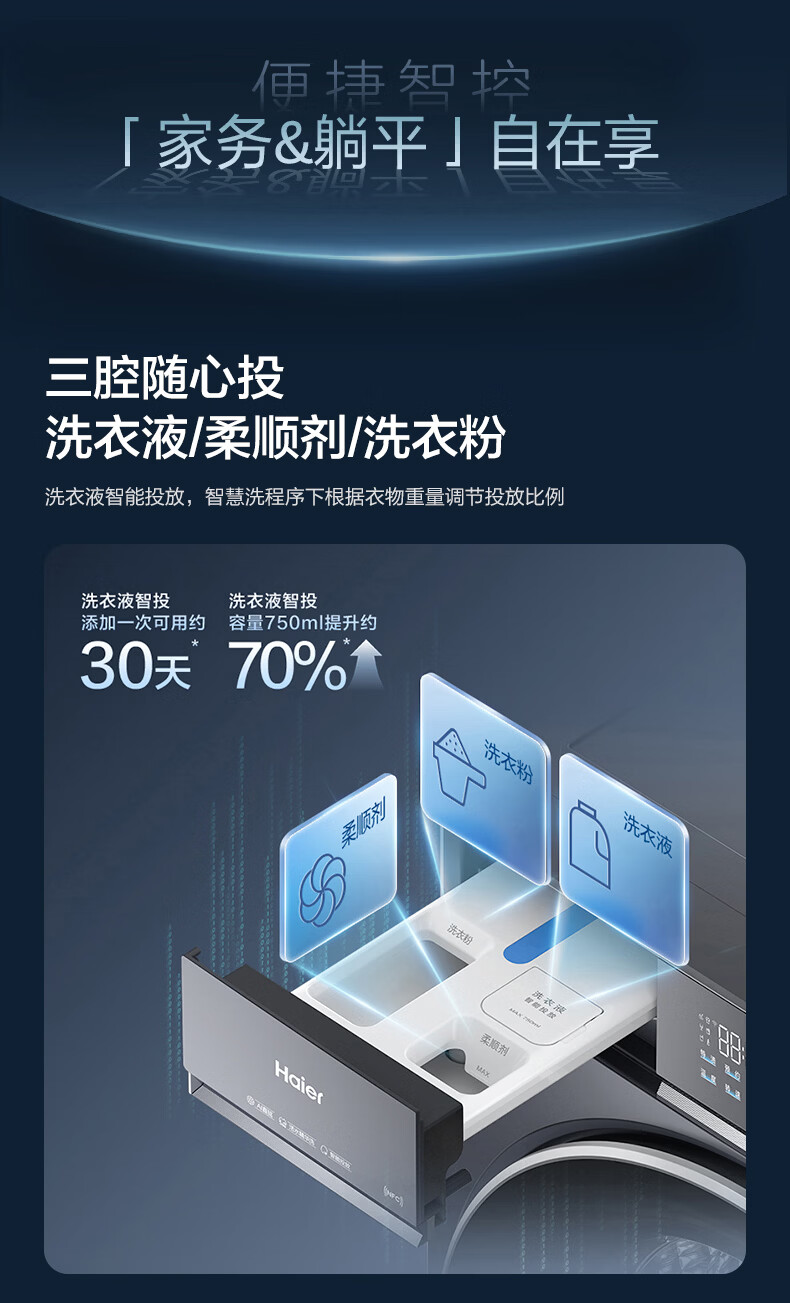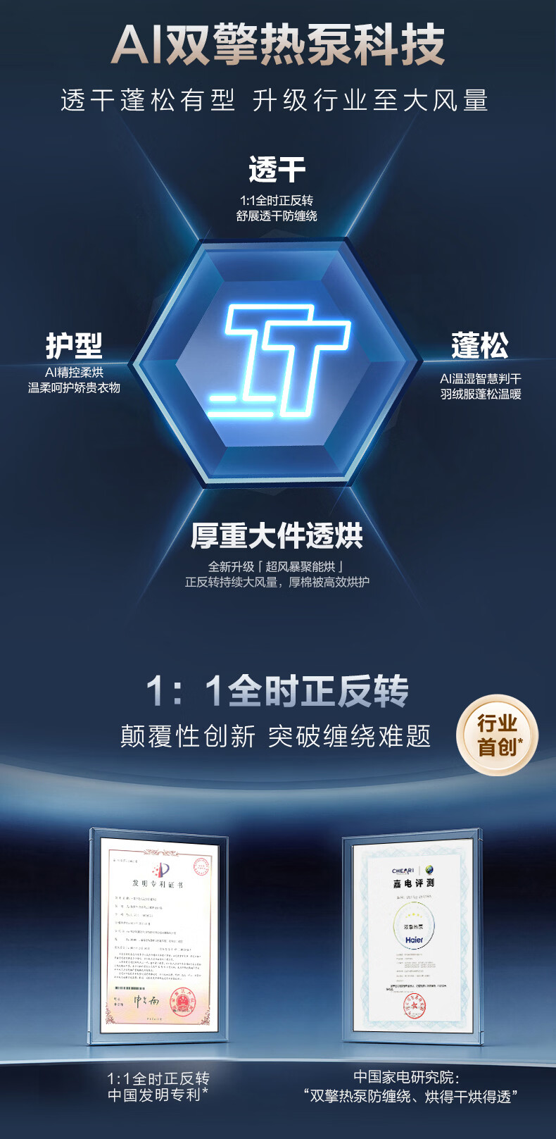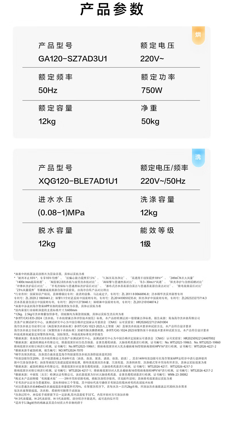海尔(Haier)云溪5.0滚筒洗烘套装 12KG 全自动滚筒洗衣机+双擎热泵烘干机A直驱双效除菌 D1
