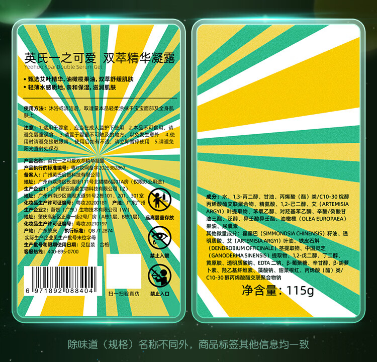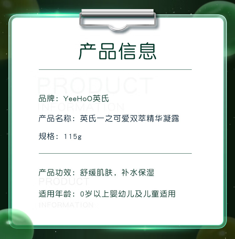 英氏(YEEHOO)婴儿面霜艾叶凝露四季儿童补水保湿宝宝面霜身体润肤乳 双萃凝露115g*2