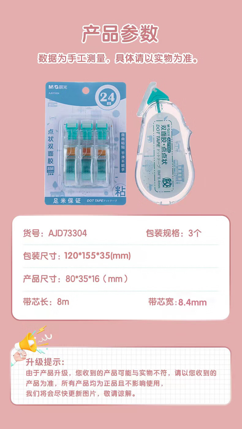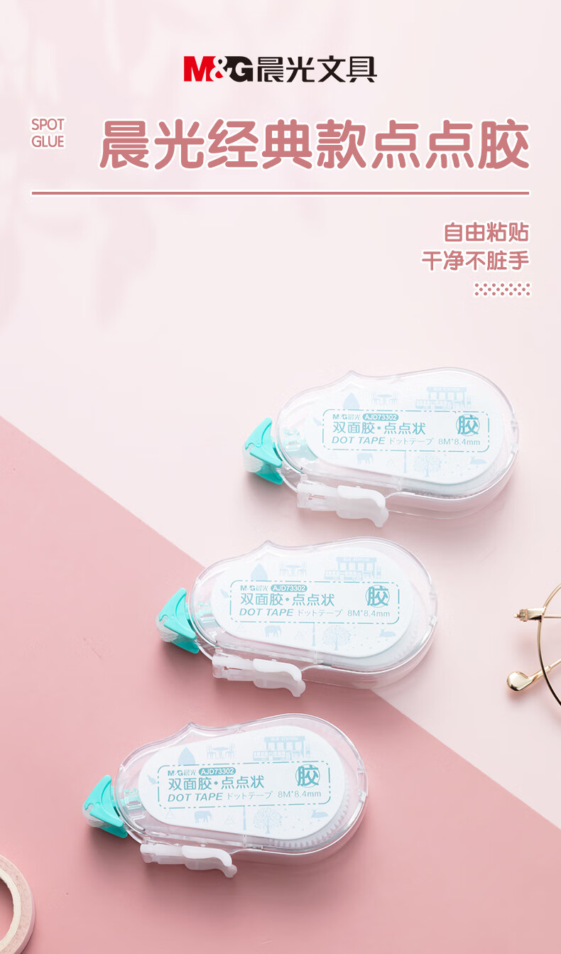 晨光(M&G)文具点状双面胶 8m*8.4mm双面点点胶 加宽带芯可擦除 经典3支装开学文具AJD73304