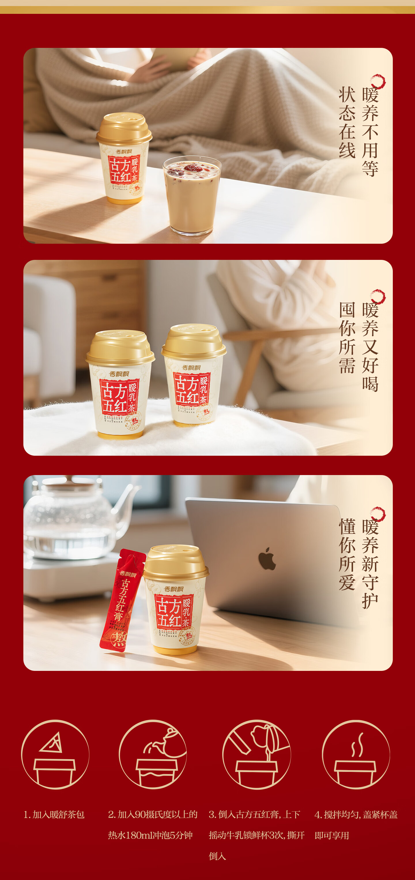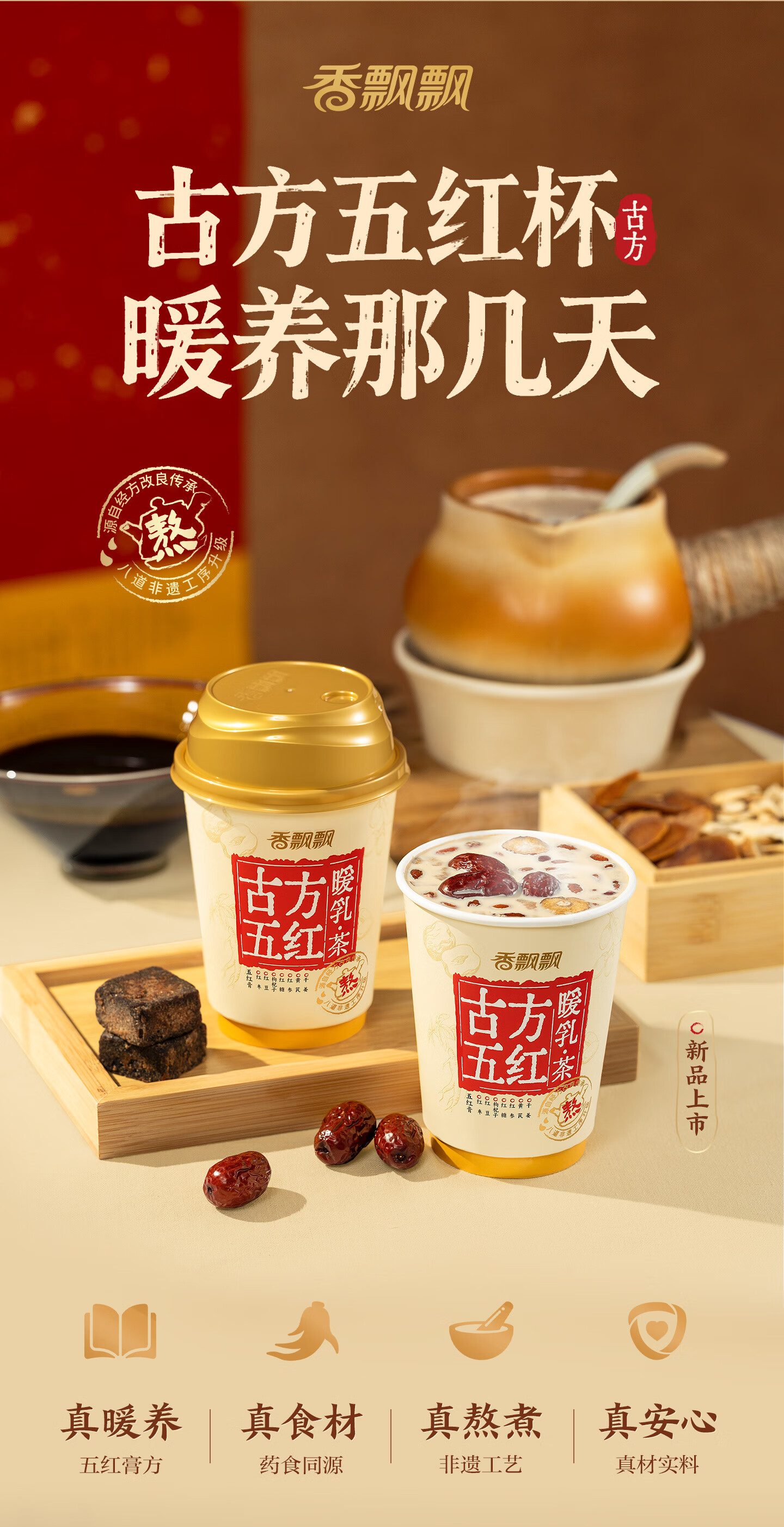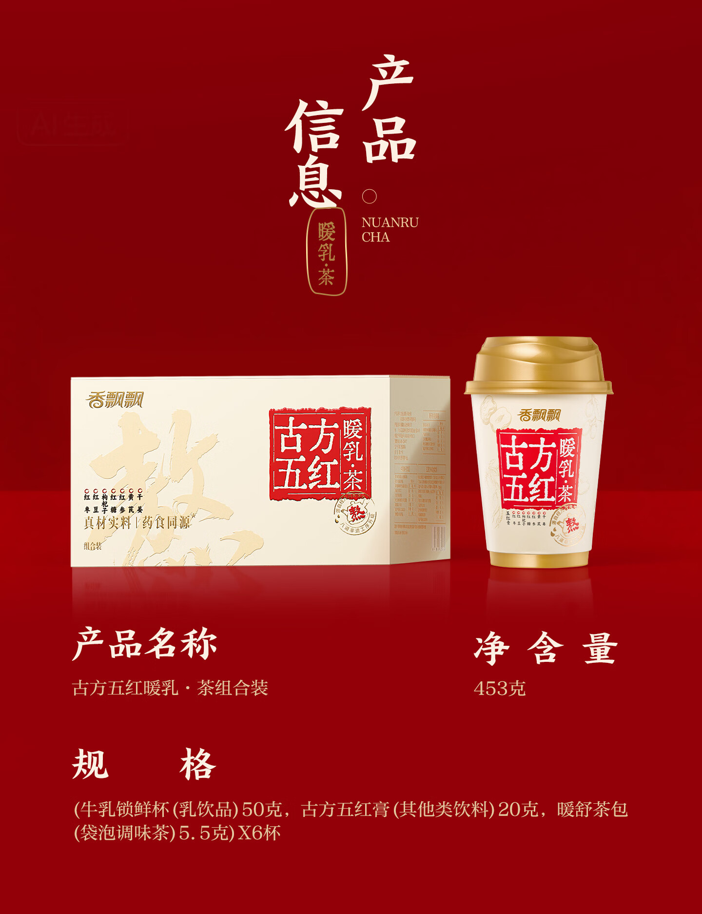 香飘飘姨妈奶茶古方五红冬日暖乳茶6杯装药食同源非遗熬住工序五红453g