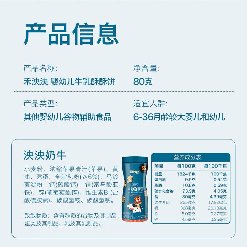 禾泱泱婴幼儿牛乳酥酥饼奶牛造型80g宝宝零食磨牙饼干强化钙铁锌6月+