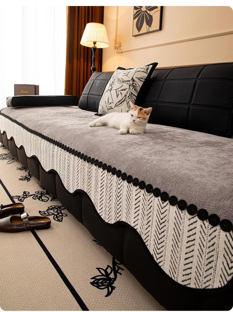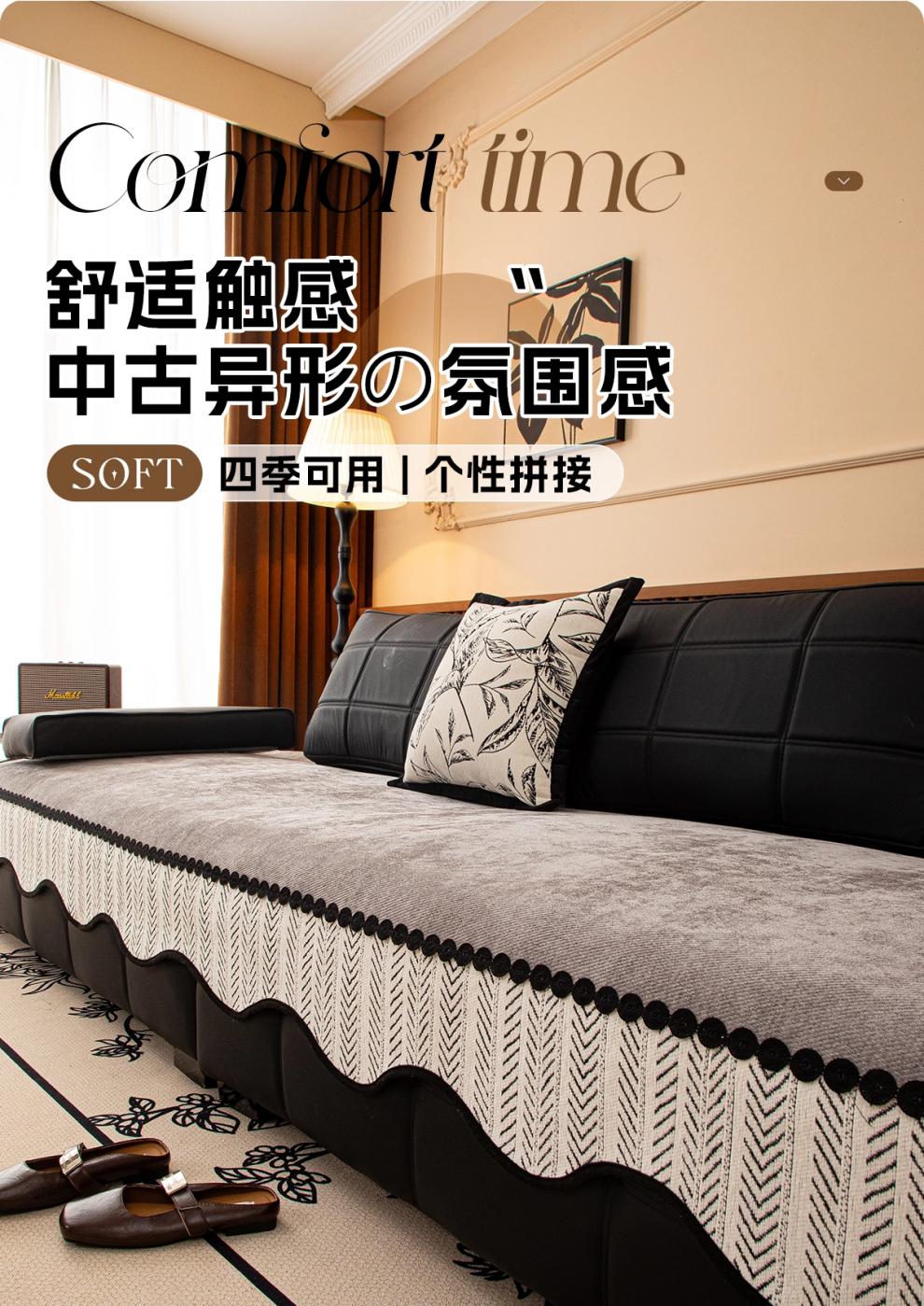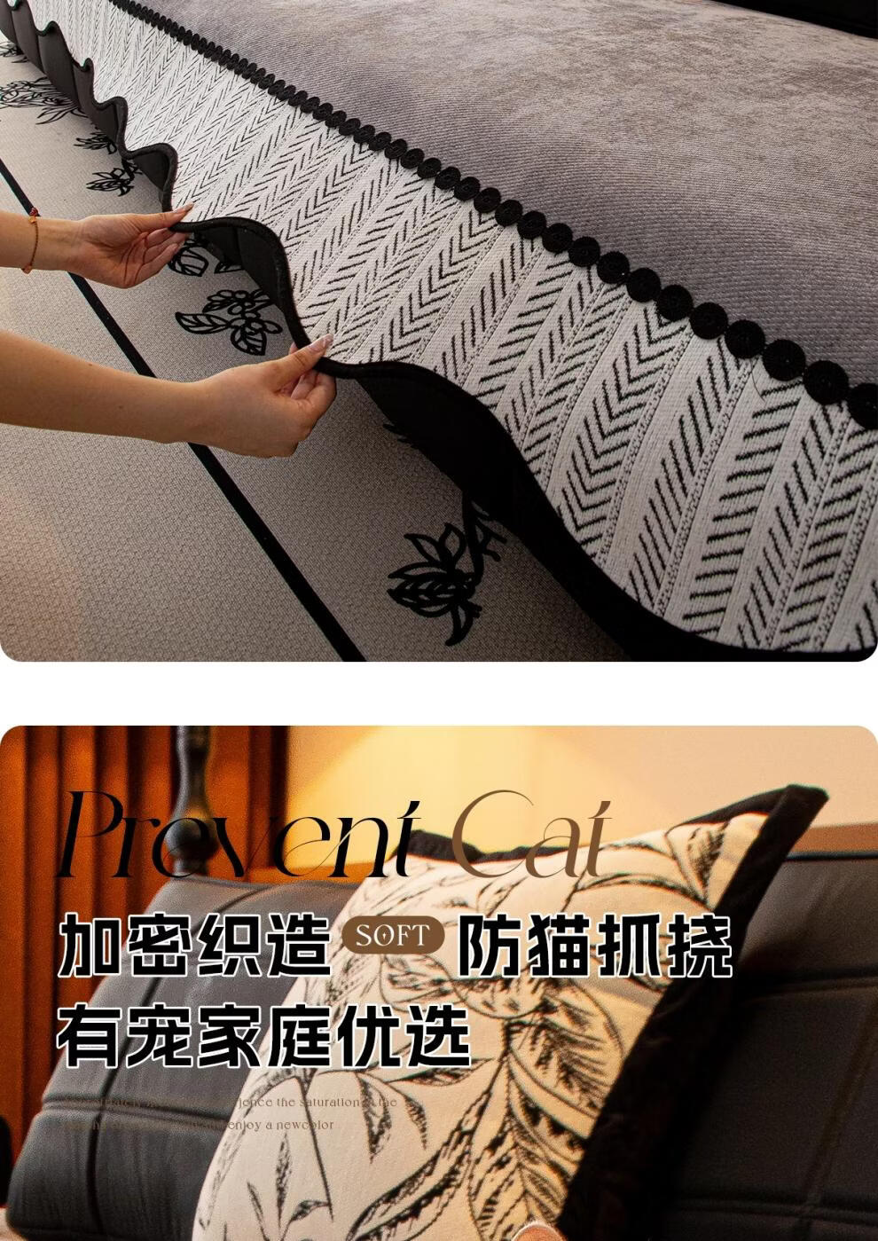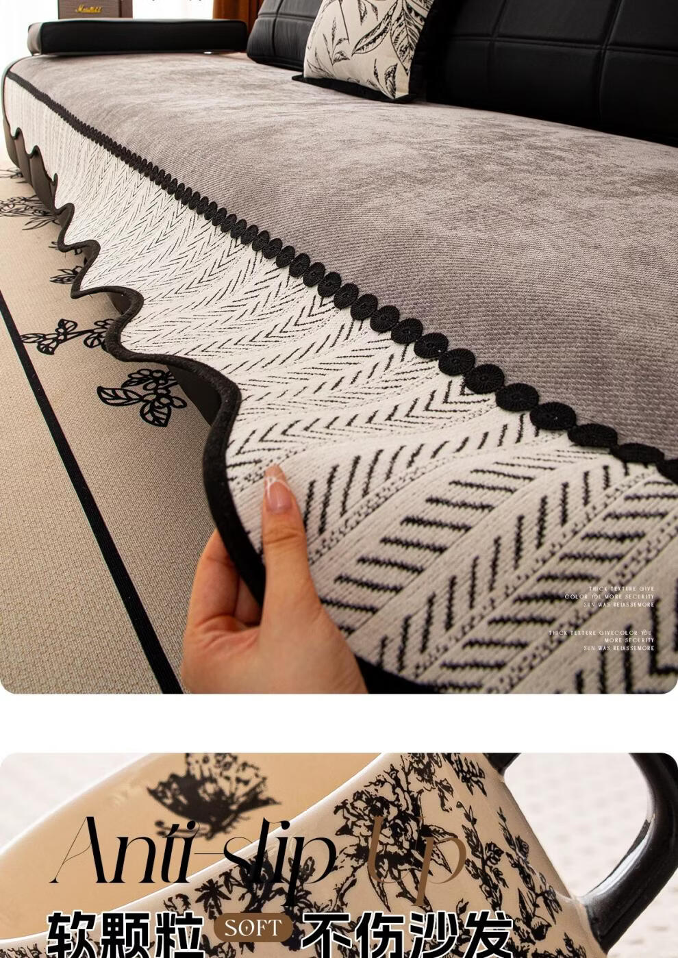正圣高档沙发垫四季通用防滑2026年新款雪尼尔防猫抓皮沙发专用坐垫 异形见梦-灰色 【面料】 70cm*70cm (可用作扶手和靠背)