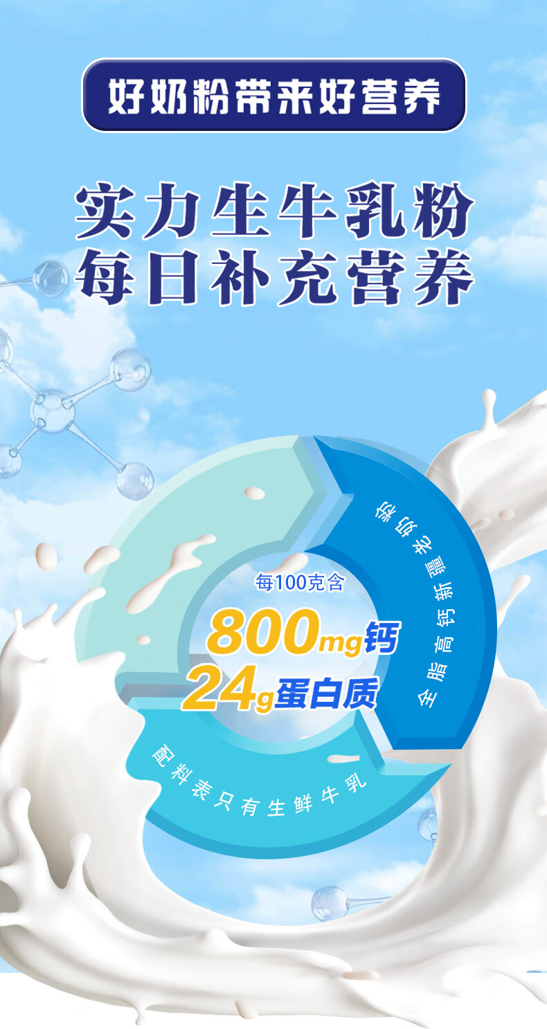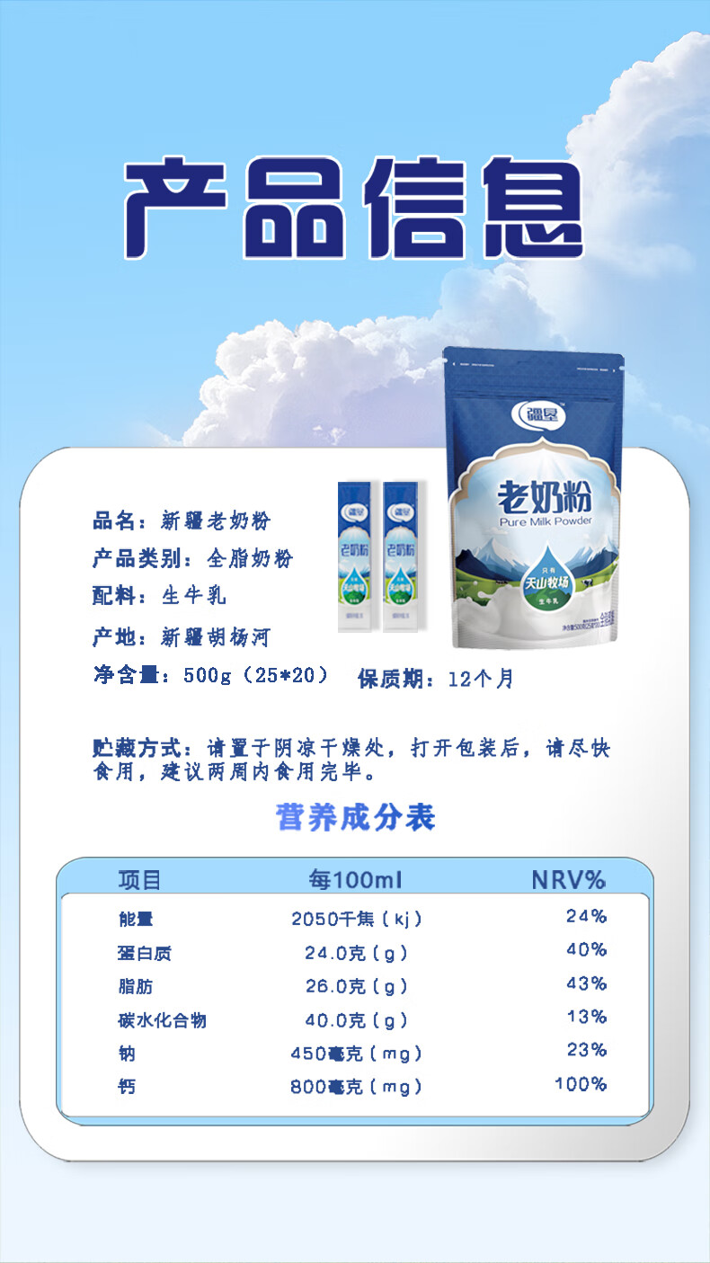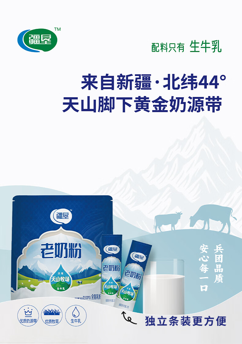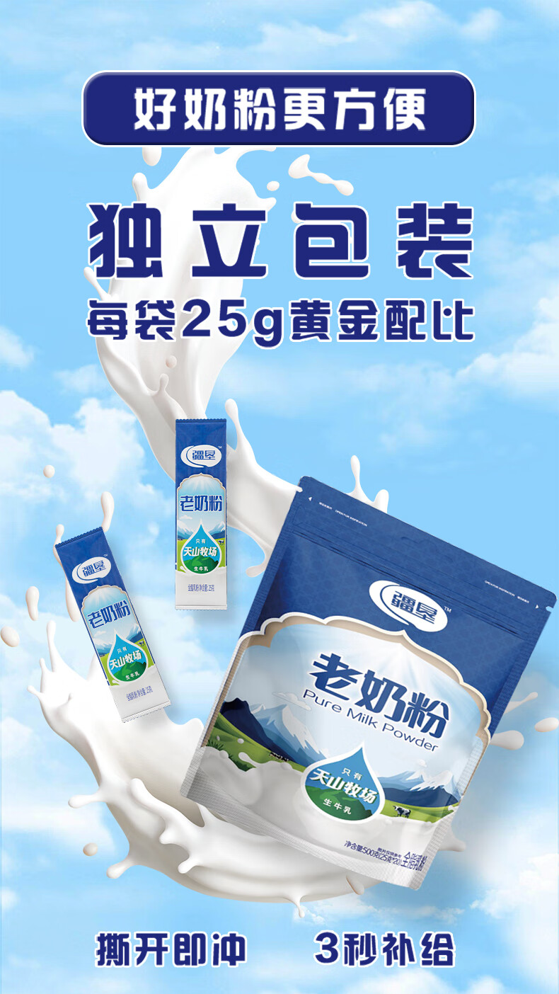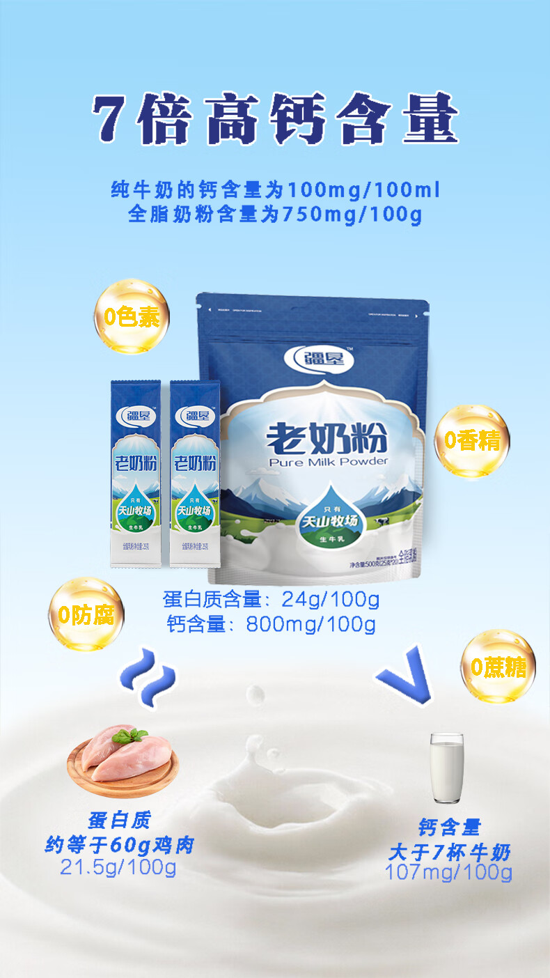 疆垦【独立条装】新疆老奶粉100%生牛乳高钙高蛋白500g*1全脂牛乳奶粉