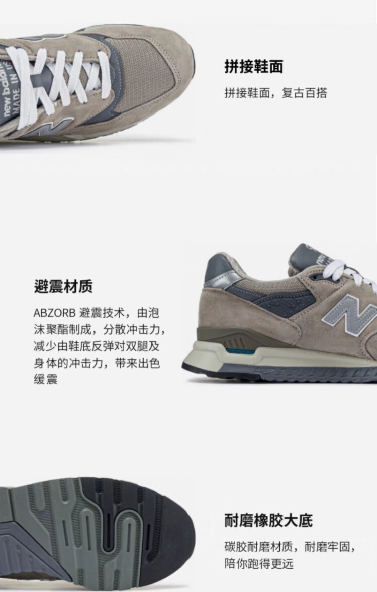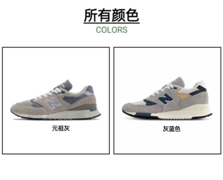 新百伦男女款 998系列 30周年联名款复古休闲运动跑步鞋 灰蓝色 45