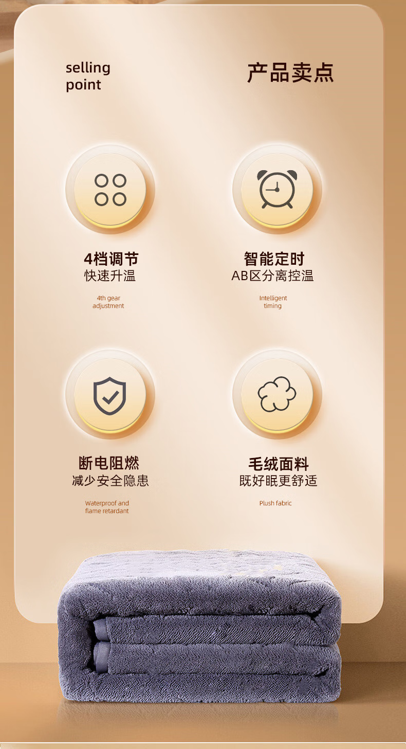长城电热毯双人长毛绒电褥子智能自动断电家用双控安全调温除湿除螨 长毛绒双人双控长2.0米*宽1.8米