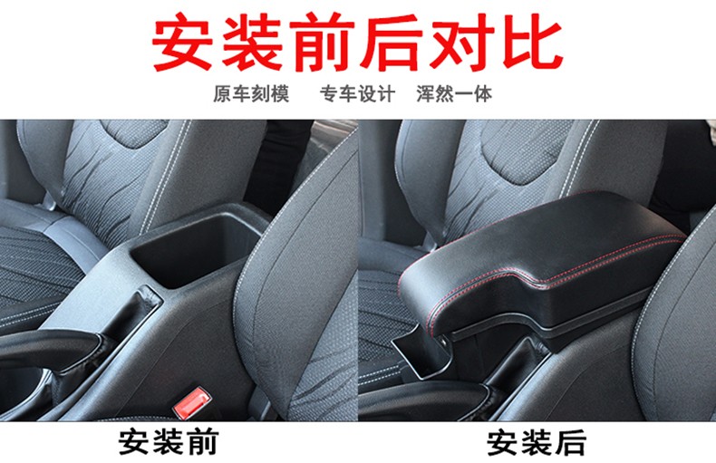 宝骏510扶手箱装饰专用免打孔中央原装宝俊510手扶箱改装配件内饰一体储物盒 超纤款-双层-面板伸缩-USB-氛围灯-黑色红线