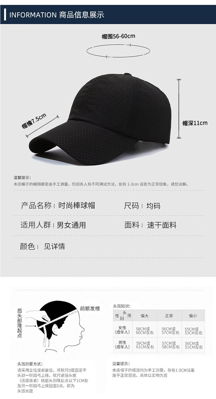 奥义驰帽子男棒球帽夏季网孔速干遮阳帽男女国潮中国鸭舌帽户外垂钓帽子 藏青色中国 均码 56-60cm