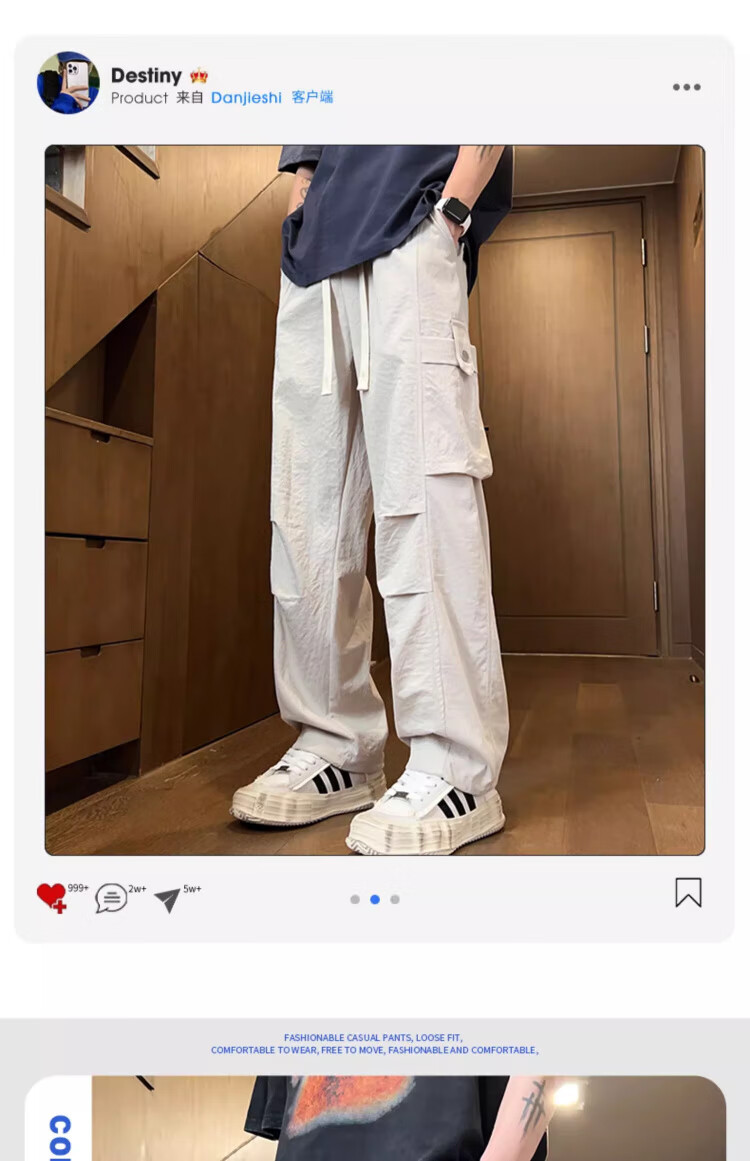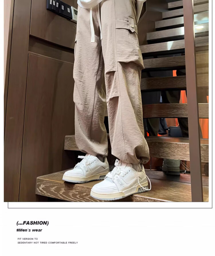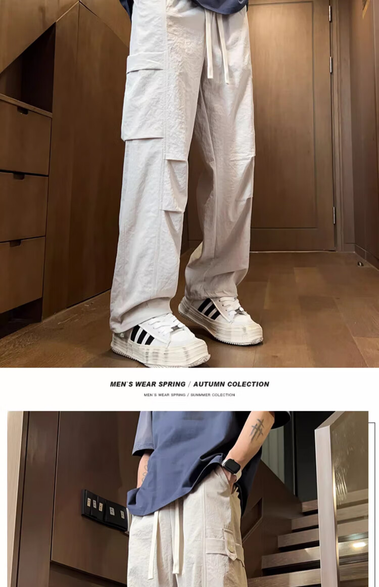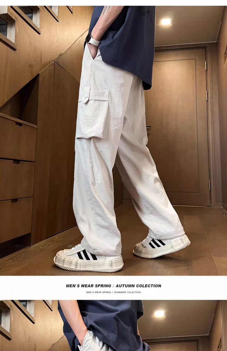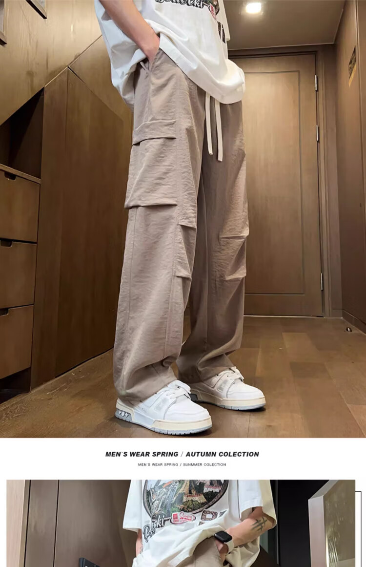 Foss Phil工装裤男装2026春夏季新款宽松百搭学生潮牌薄款休闲直筒裤子男士 ZX-K515浅卡其色 薄款 2XL (150斤-170斤)