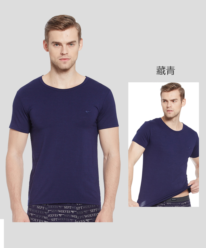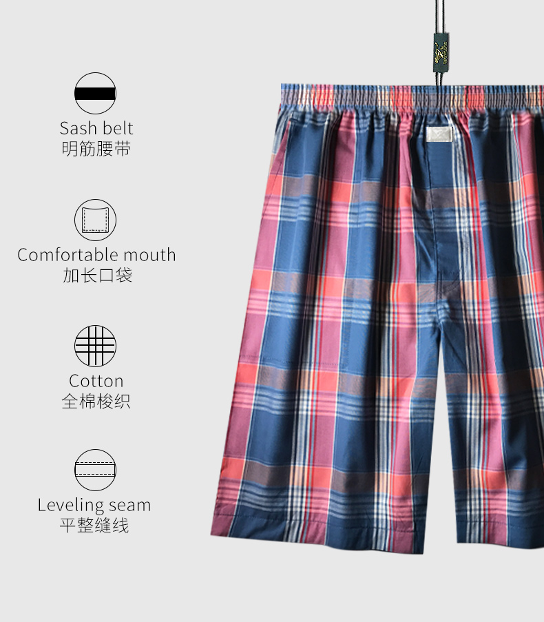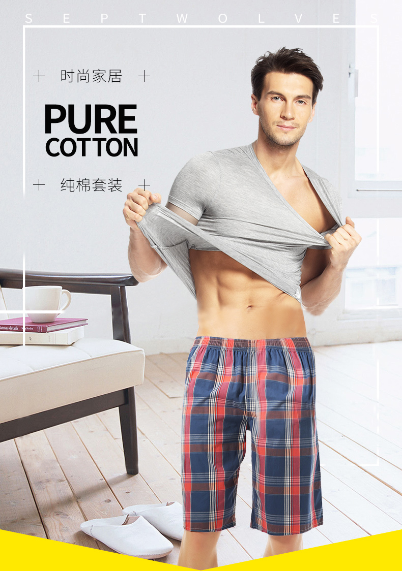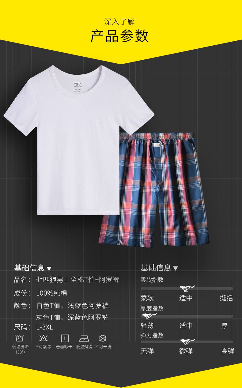 七匹狼睡衣男纯棉家居服全棉套装男外穿大裤衩春夏薄款睡裤 2件套 麻灰短袖+深蓝短裤 XL (175) (建议125-145斤)