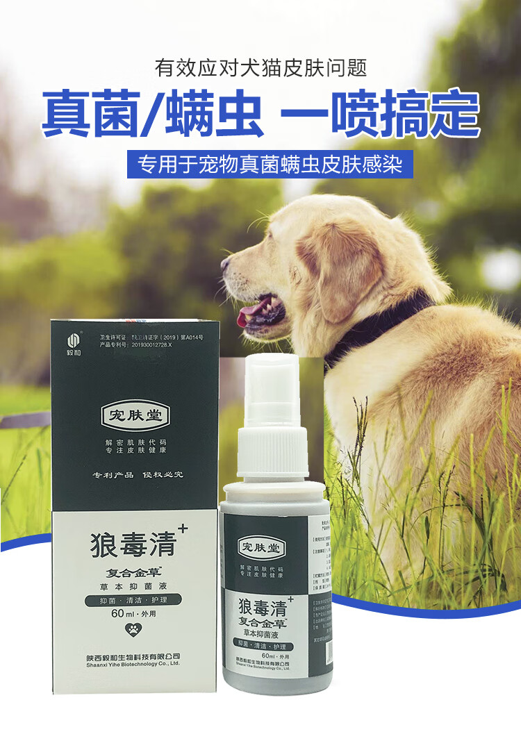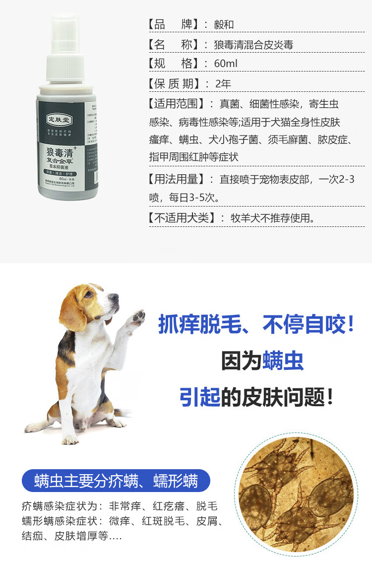 毅和【现货当日发】狼毒清喷剂60ml宠物皮肤病猫癣狗真菌螨虫猫藓药喷 2瓶 狼毒清喷剂60ml/瓶