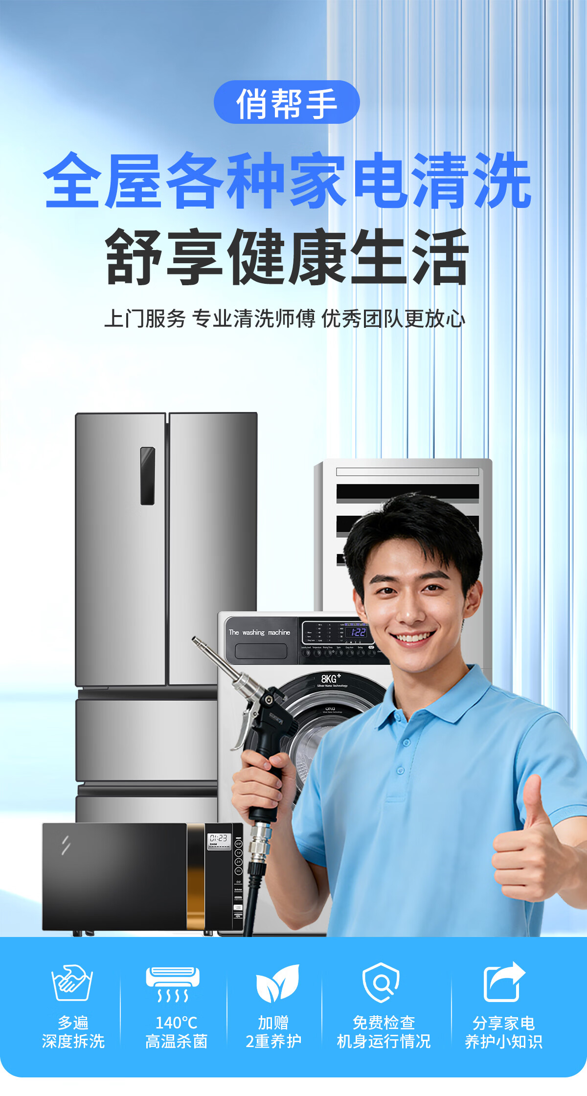 【鲸洁邦】极速同城上门服务家电清洗专业 空调清洁本地生活服务 高温蒸汽除菌除尘告别异味细菌 中央空调风口全拆洗3组