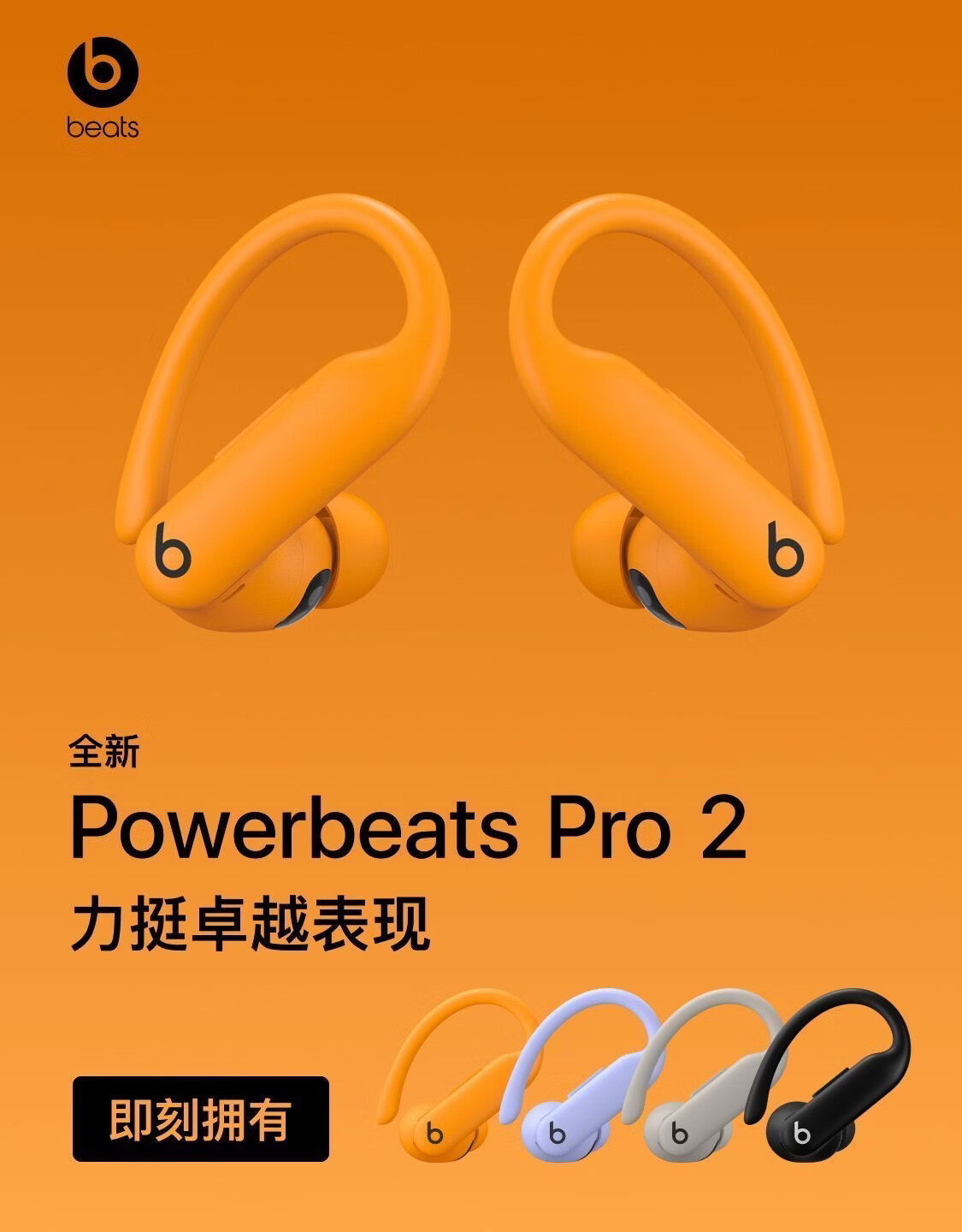 Beats Powerbeats Pro2 国行无线高性能主动降噪耳机真无线蓝牙运动耳机心率检测挂耳式耳塞 PowerPro2 国行原封灰色