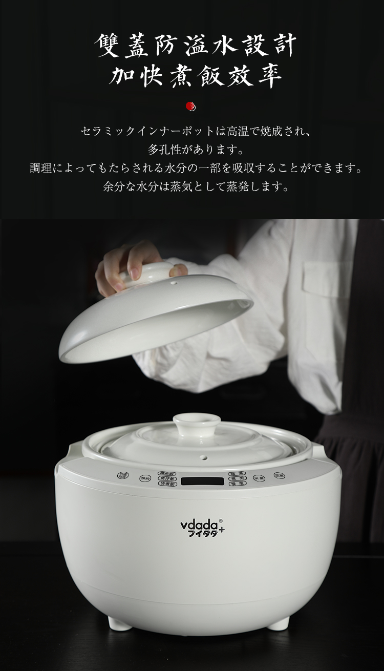 vdada【健康0涂层】日本vdada电饭煲陶瓷内胆电饭锅无涂层 日本陶瓷电饭煲 3L