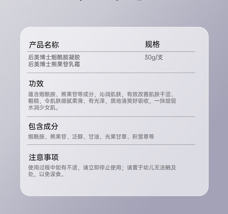 后美博士烟酰胺凝胶熊果苷乳膏复方非医用正品去黄提亮补水保湿男女可用 120g【2套】烟酰胺×2+熊果苷×2