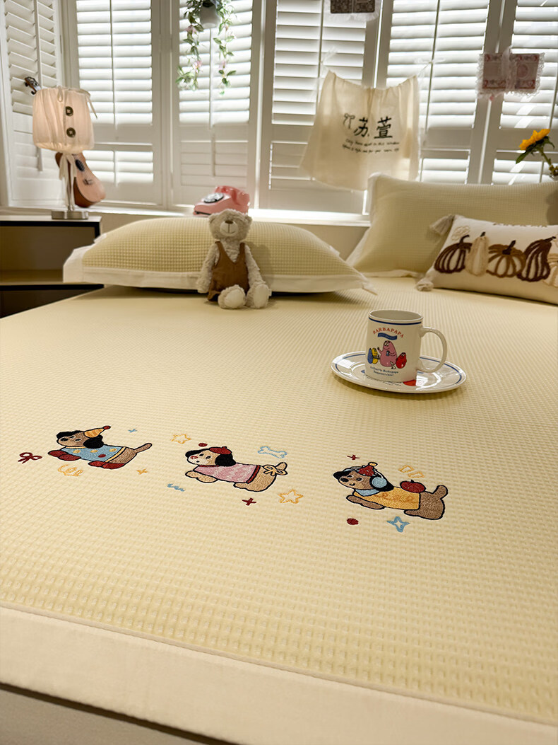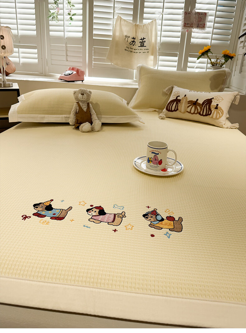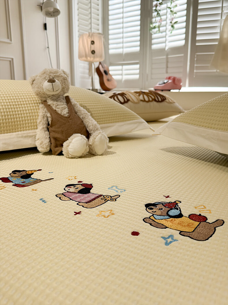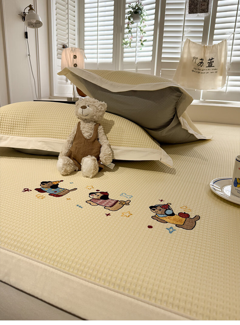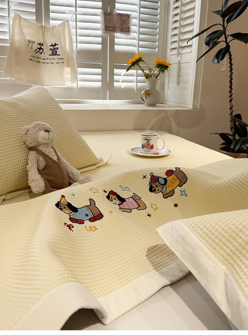 苏萱A类华夫格冰豆豆凉席三件套儿童床单夏天冰丝席可机洗空调软席子 【床笠款】懒懒小憩 三件套-180cm*200cm