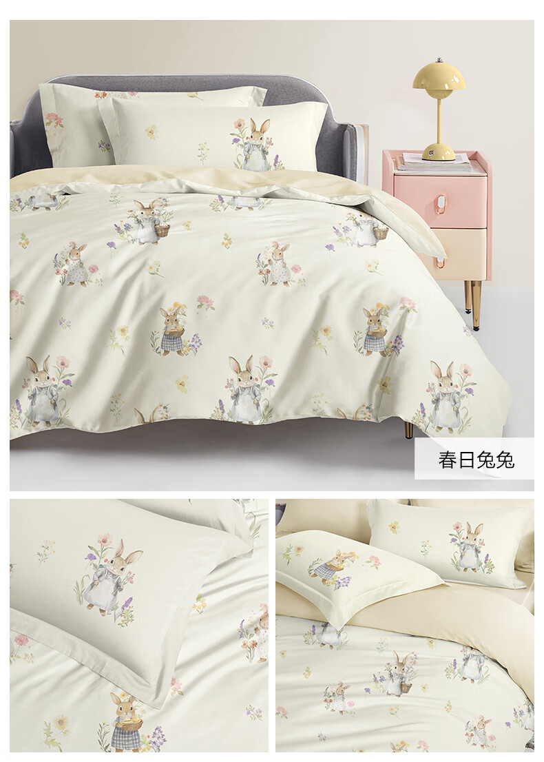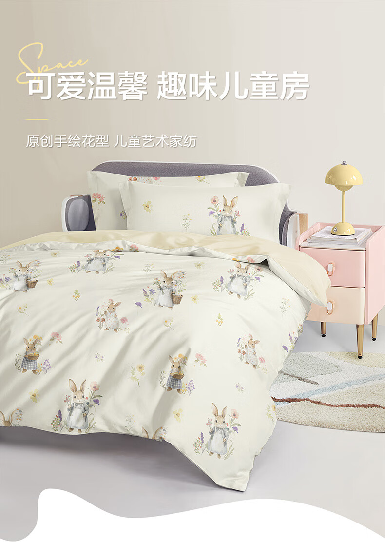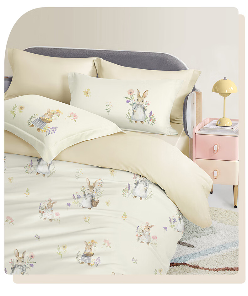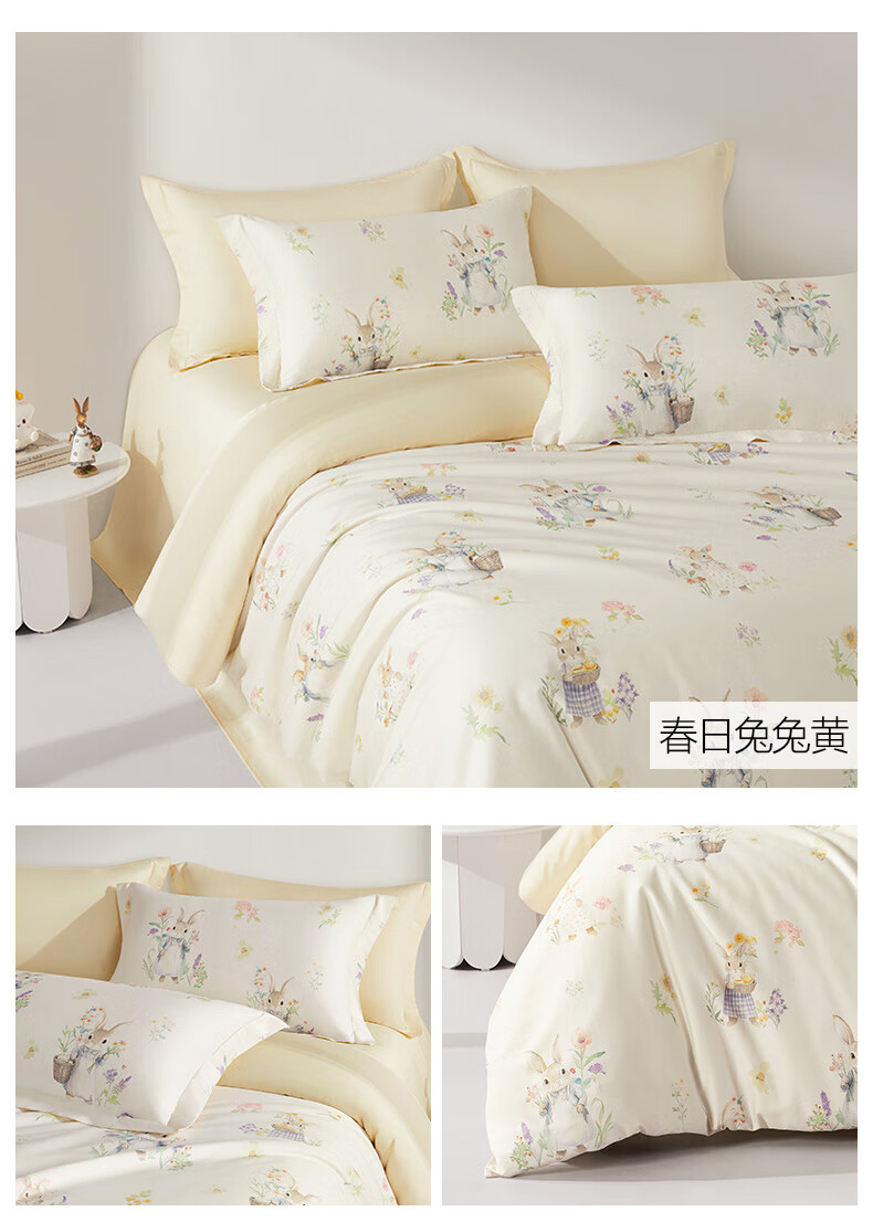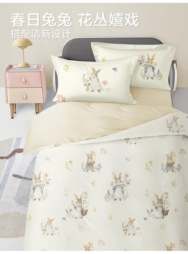 博洋宝贝(Beyond Kids)60支长绒棉四件套纯棉套件学生宿舍三件套卡通开学全棉床品套件 60支 长绒棉套件—春日兔兔黄 1.2 床单款 (被套150*210cm) 三件套