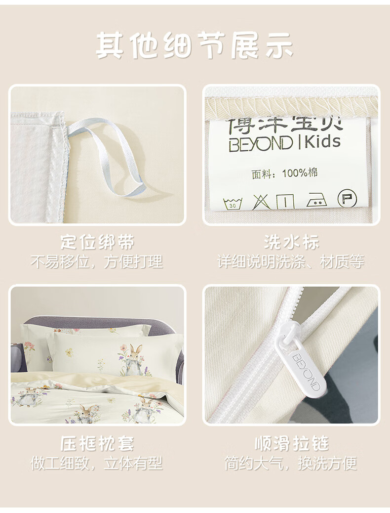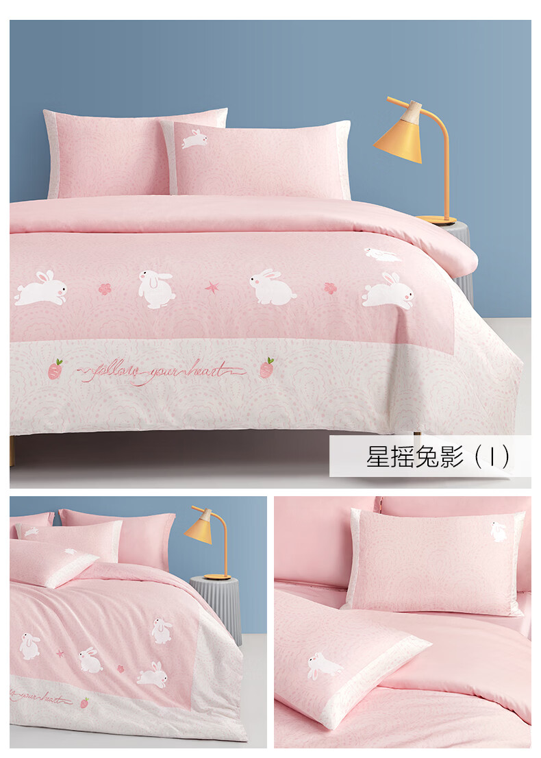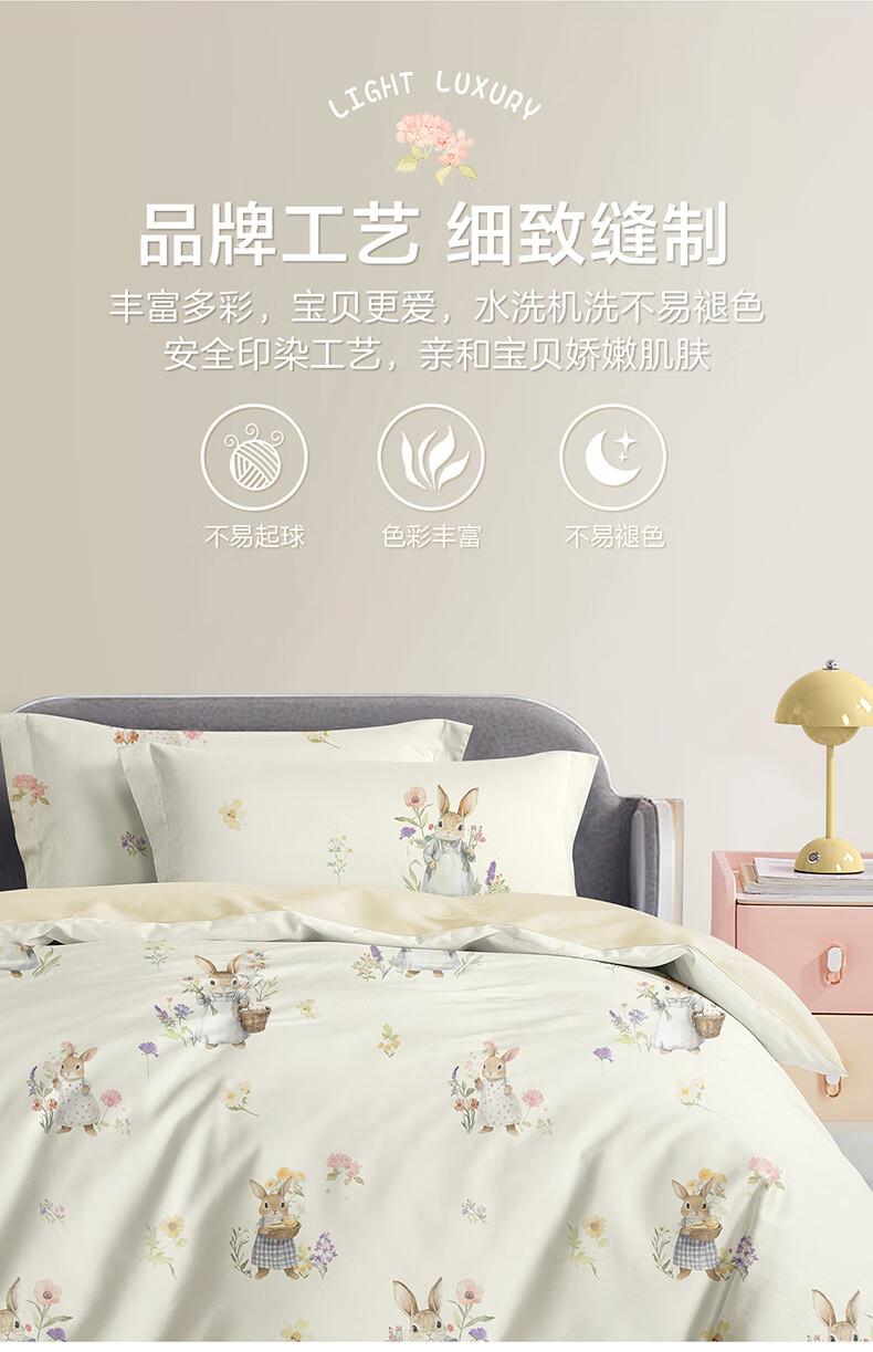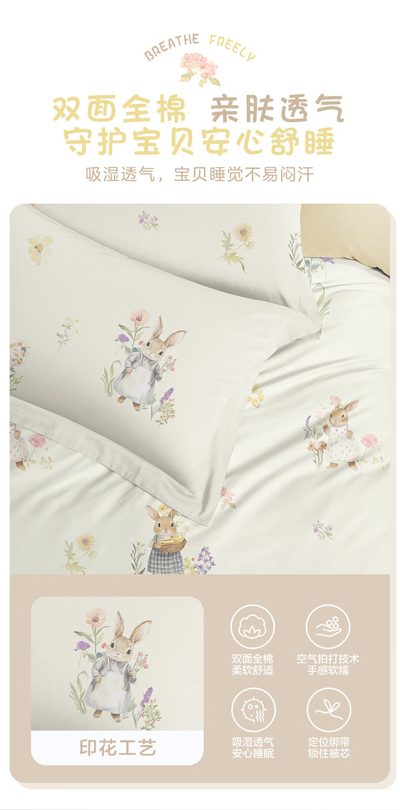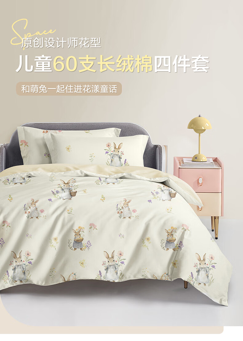 博洋宝贝(Beyond Kids)60支长绒棉四件套纯棉套件学生宿舍三件套卡通开学全棉床品套件 60支 长绒棉套件—春日兔兔黄 1.2 床单款 (被套150*210cm) 三件套