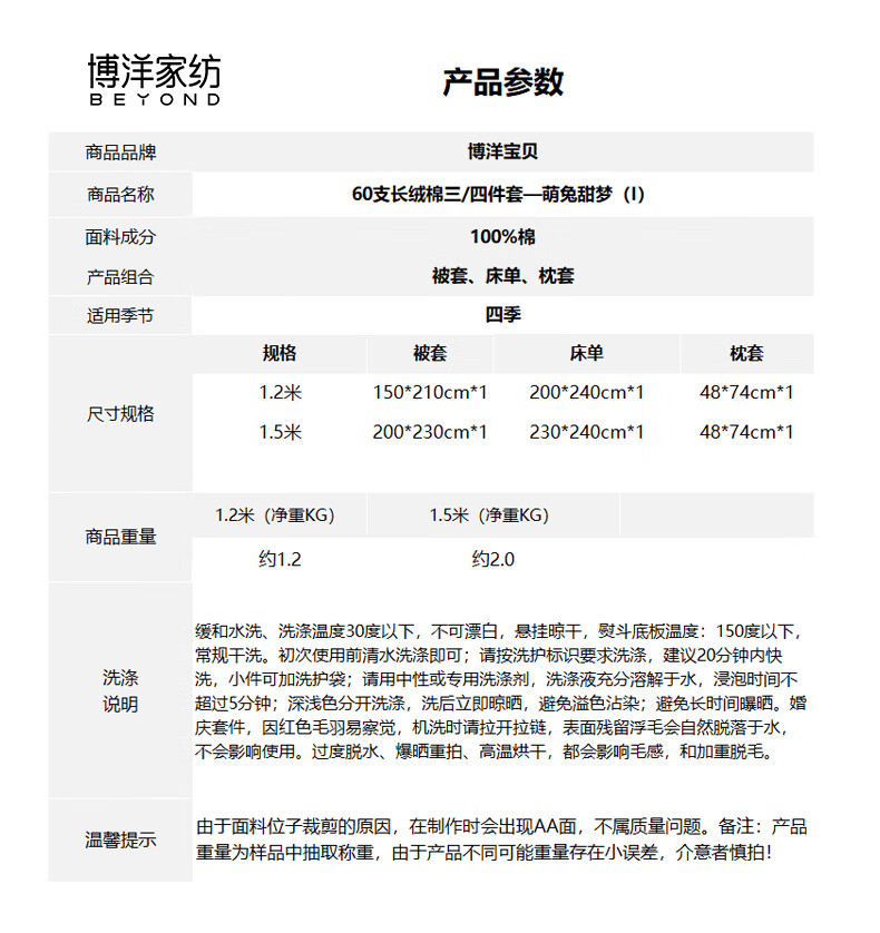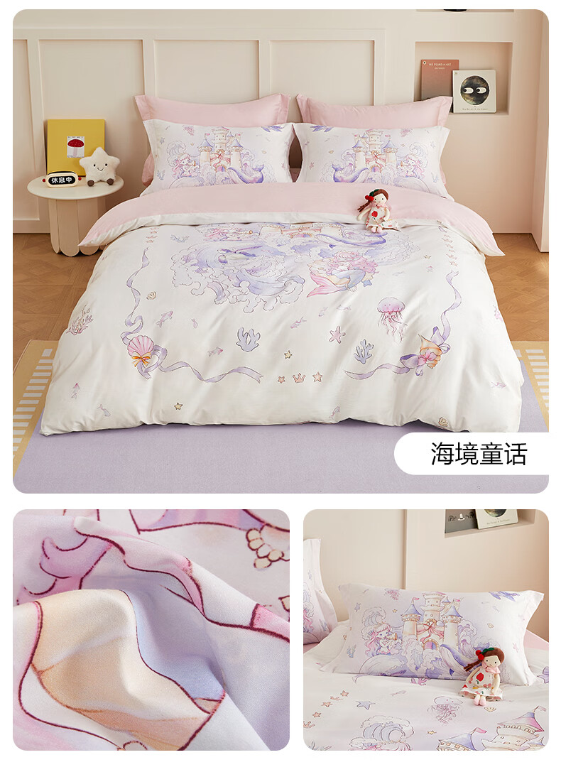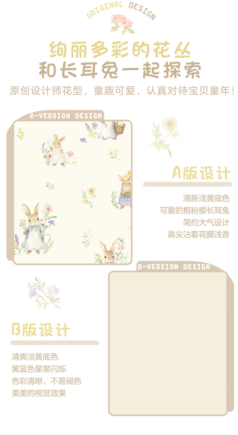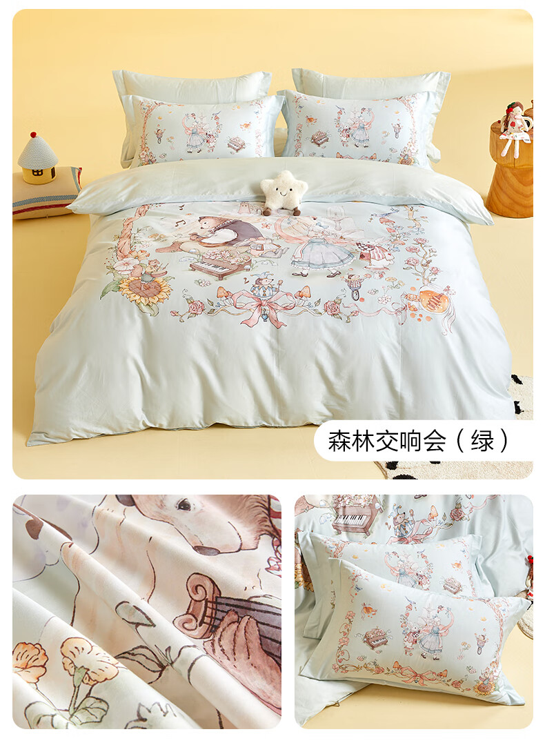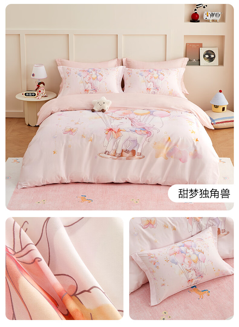 博洋宝贝(Beyond Kids)60支长绒棉四件套纯棉套件学生宿舍三件套卡通开学全棉床品套件 60支 长绒棉套件—春日兔兔黄 1.2 床单款 (被套150*210cm) 三件套