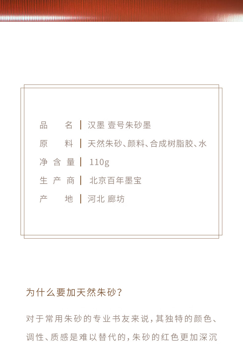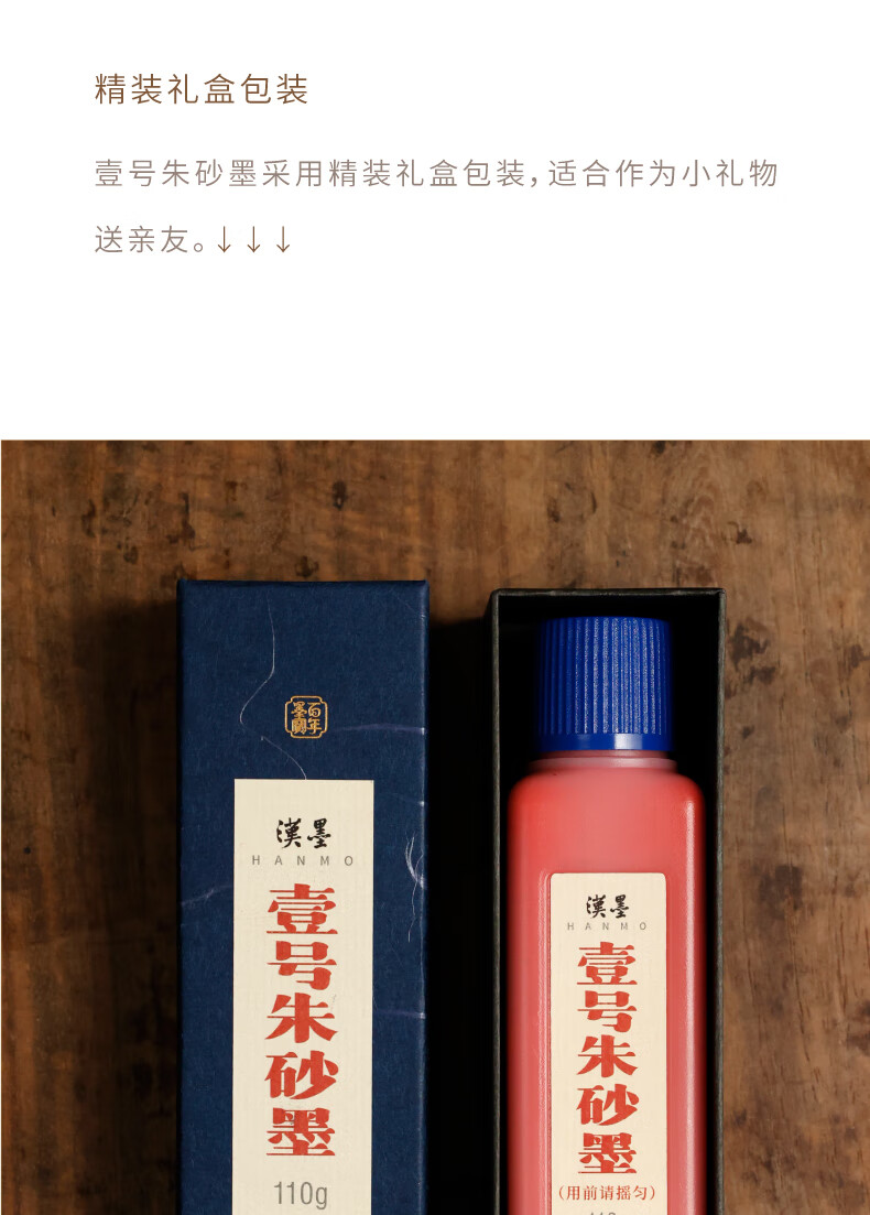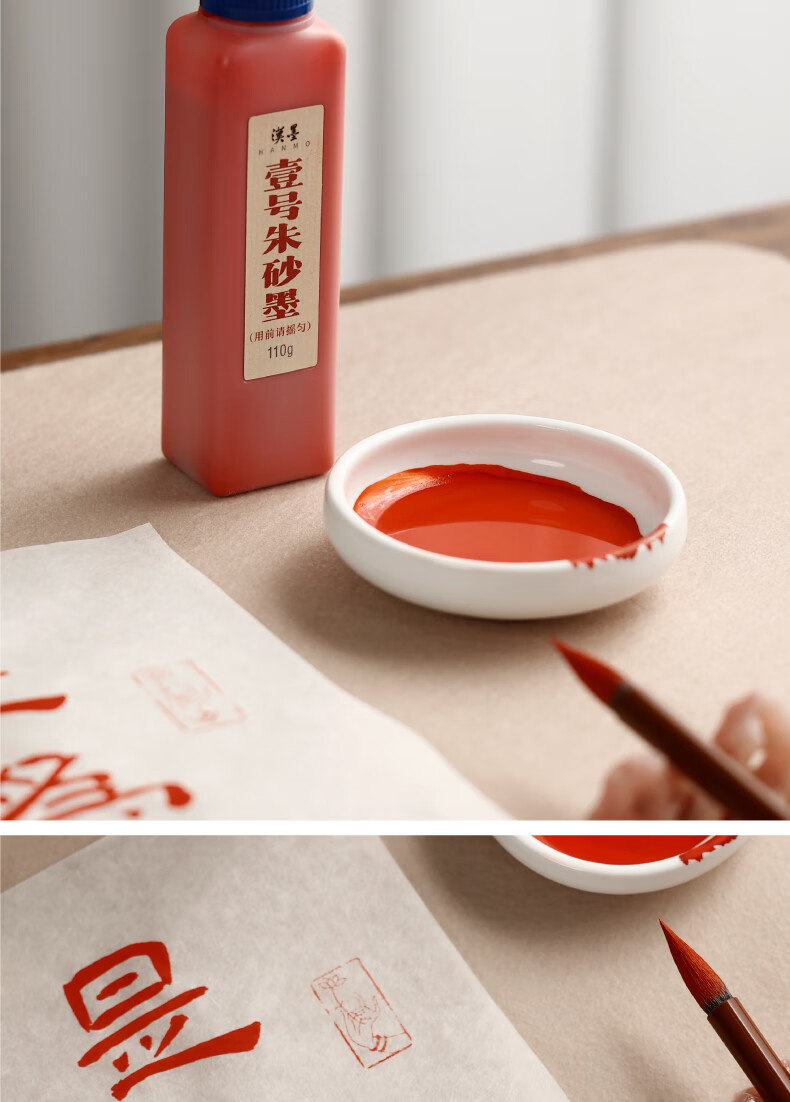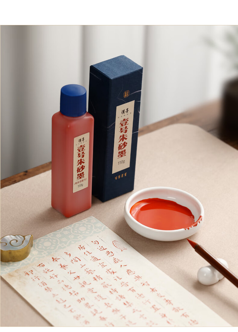 漢墨 壹号朱砂墨汁 朱液批改用国画小楷书法红墨液110g 文房四宝宣纸作品用