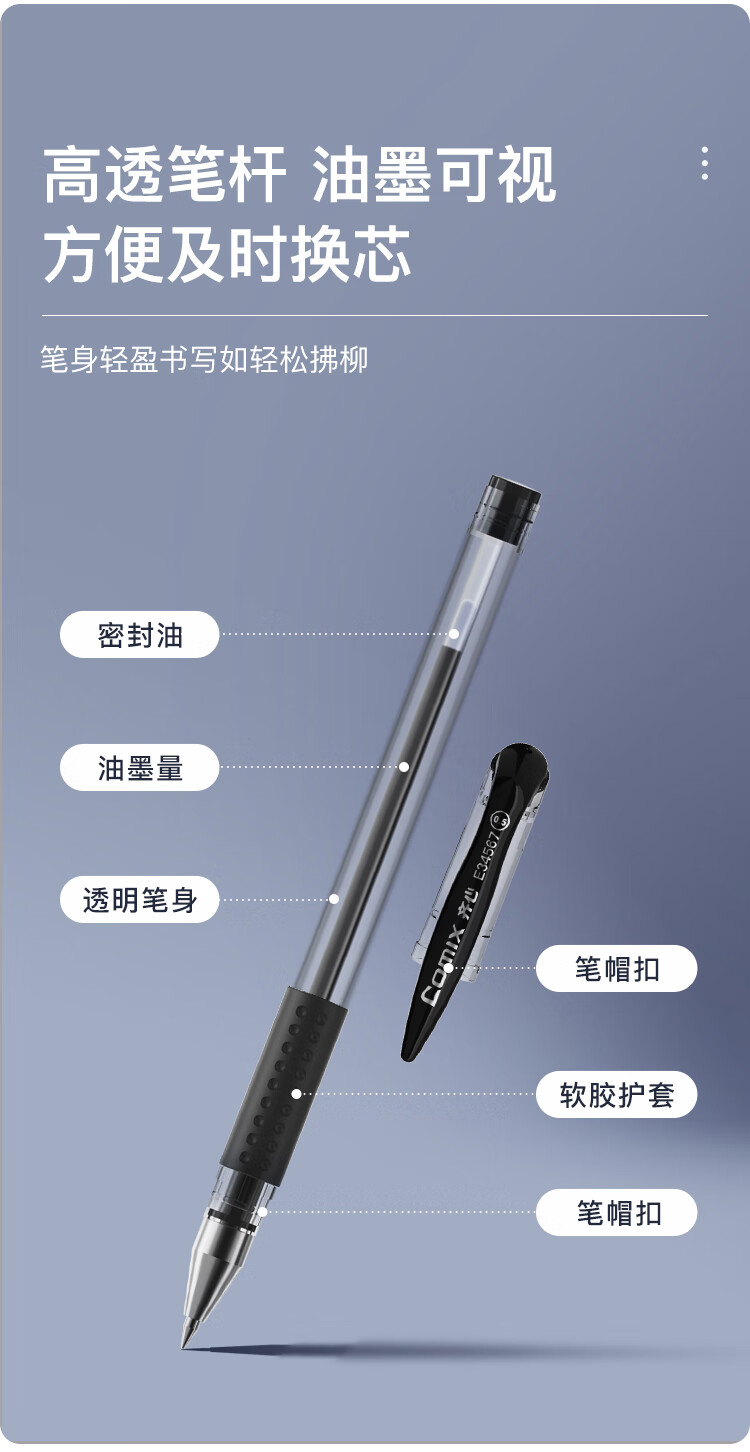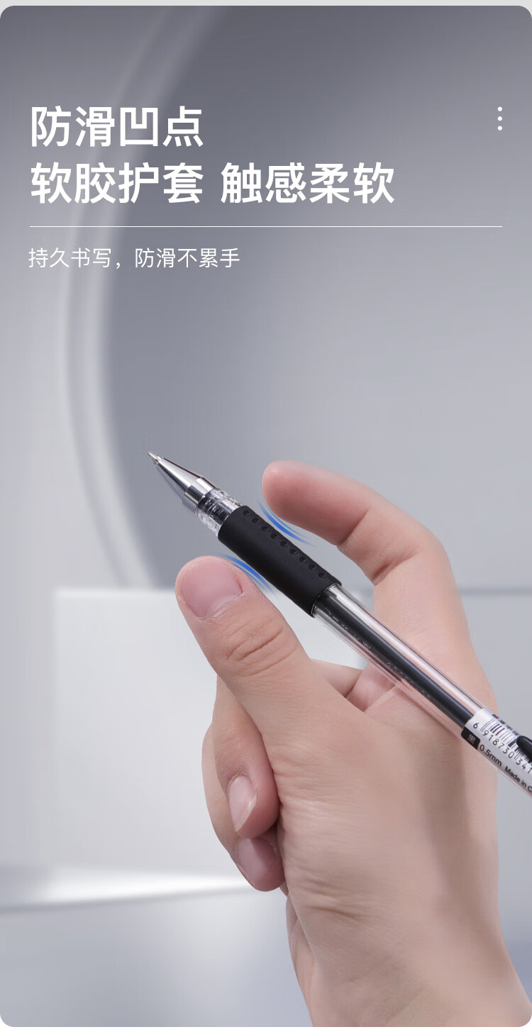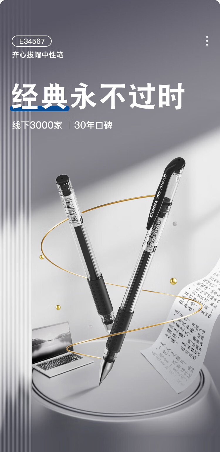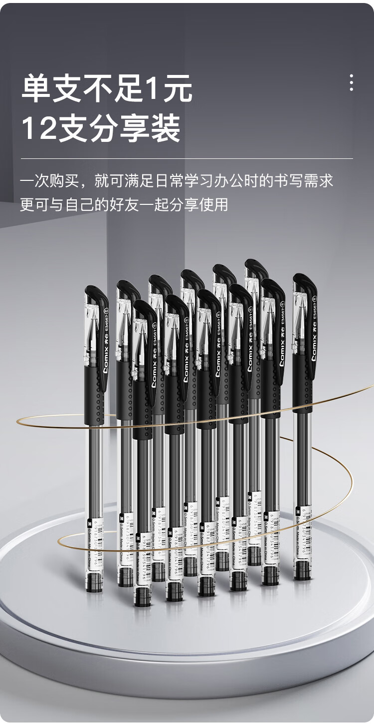 齐心(Comix)0.5mm黑色中性笔软护手拔帽中性笔签字笔商务水笔 12支/盒E34567
