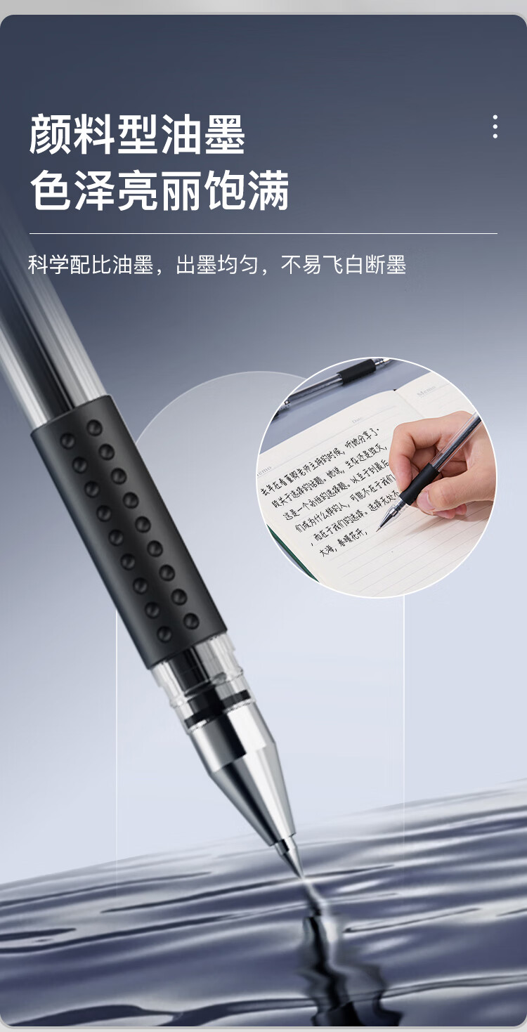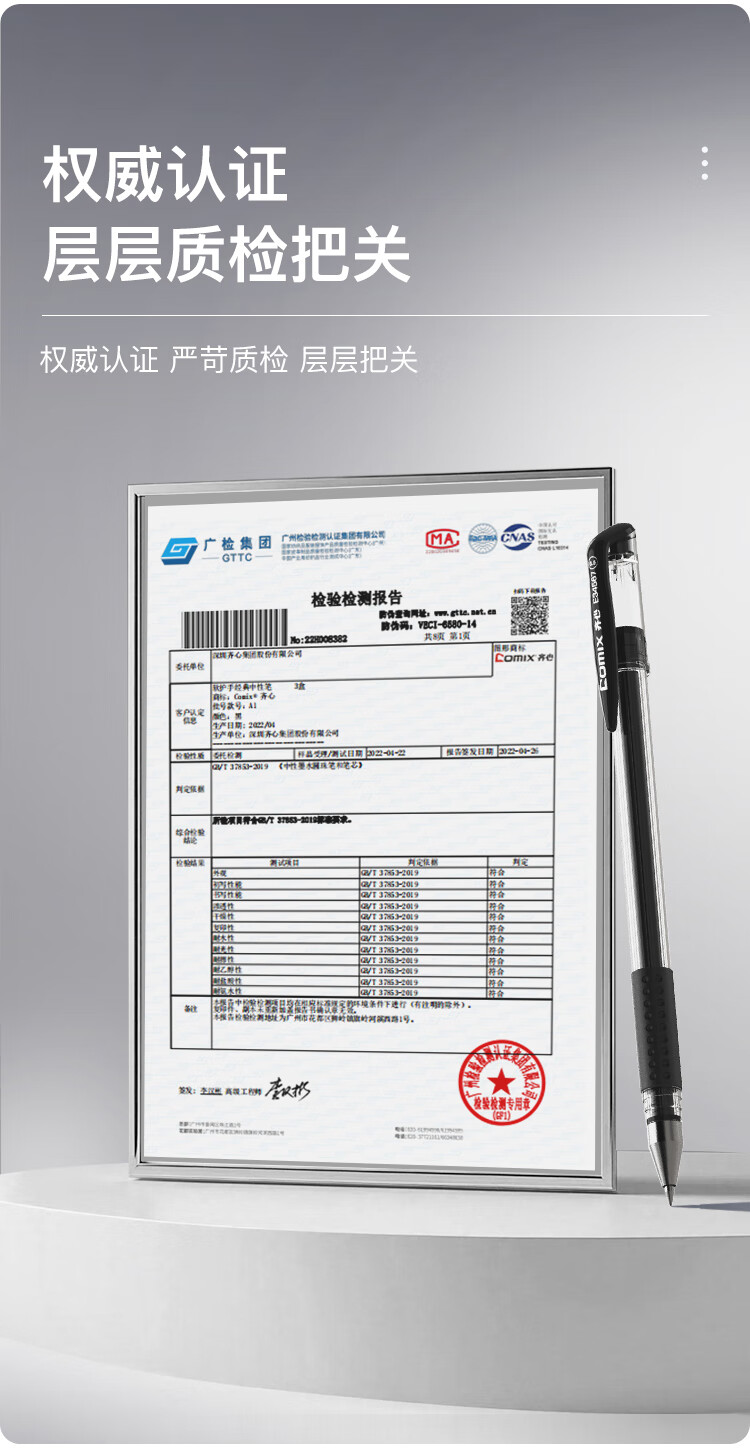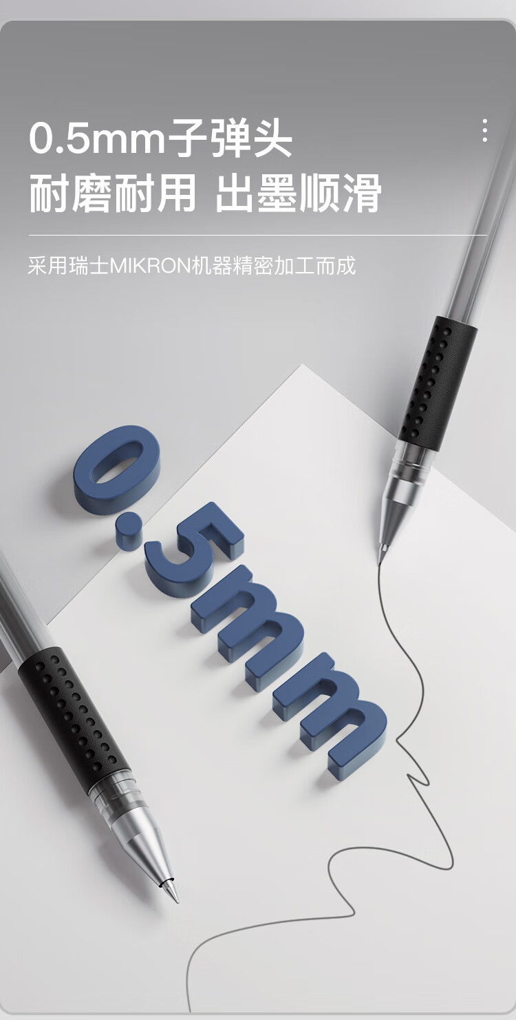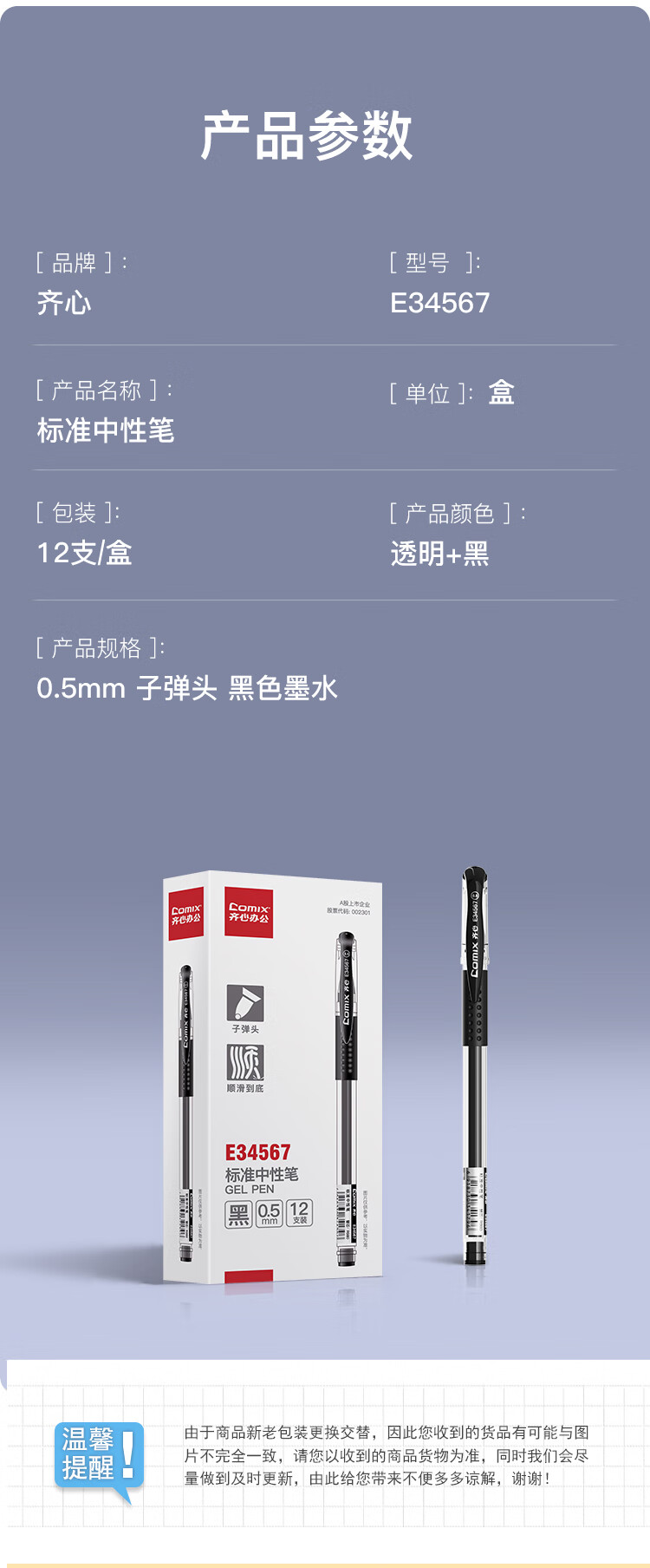 齐心(Comix)0.5mm黑色中性笔软护手拔帽中性笔签字笔商务水笔 12支/盒E34567