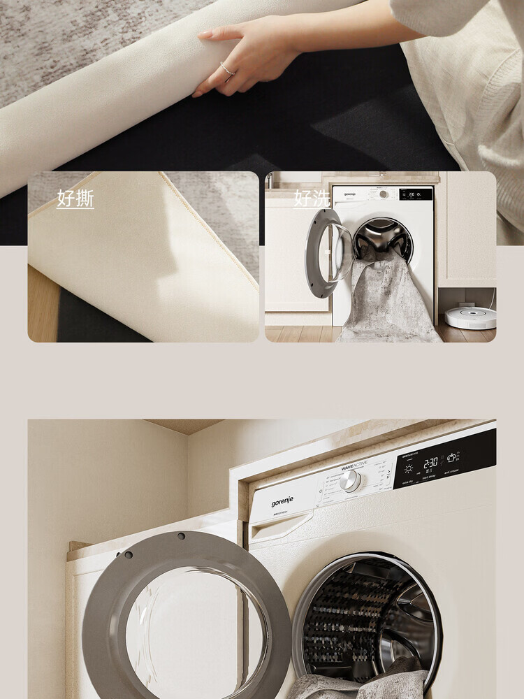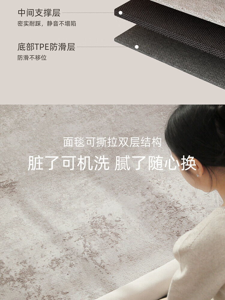 像素可拆洗客厅地毯2026新款双层可机洗现代简约免洗可擦家用隔音地垫 菱烟-22182 140×200CM(毯面+10mm缓冲底)
