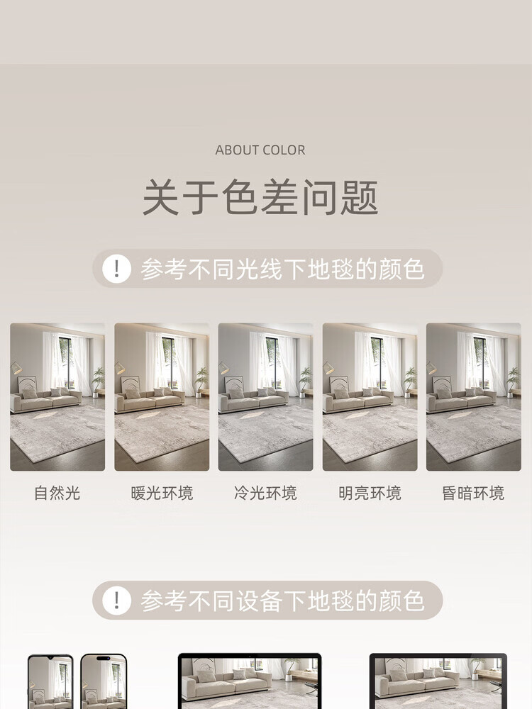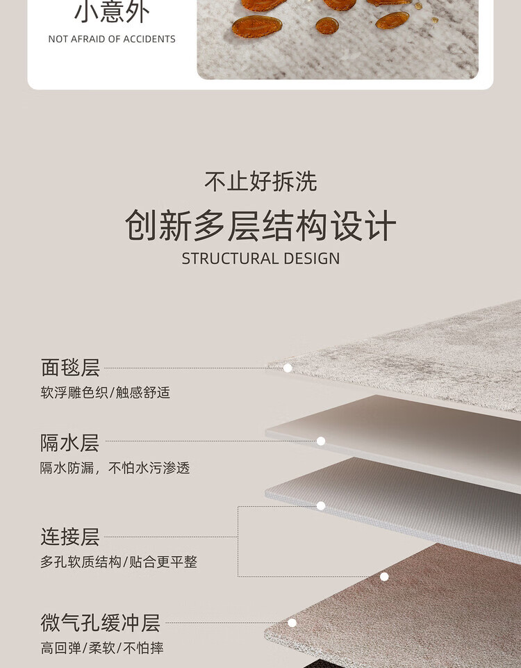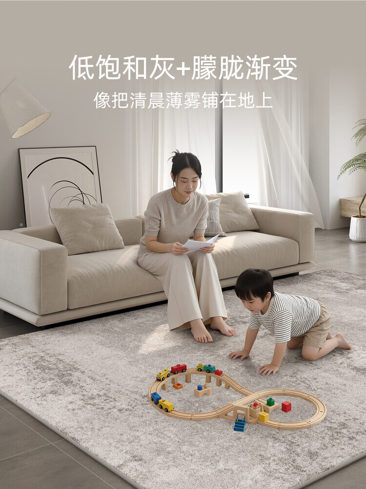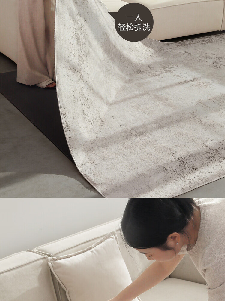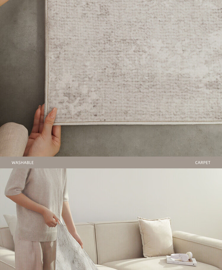 KAYE地毯客厅新款轻奢高级感免洗可擦家用地垫子卧室大面积沙发茶几毯 QR-Y半夏-01 120X160cm