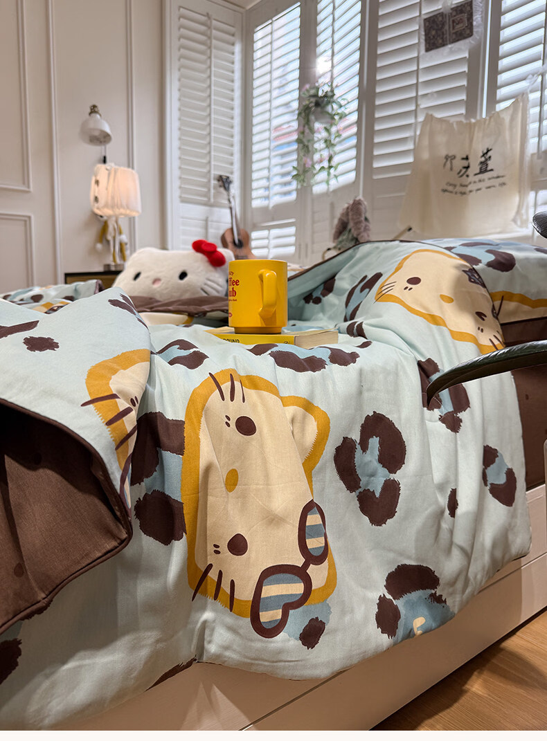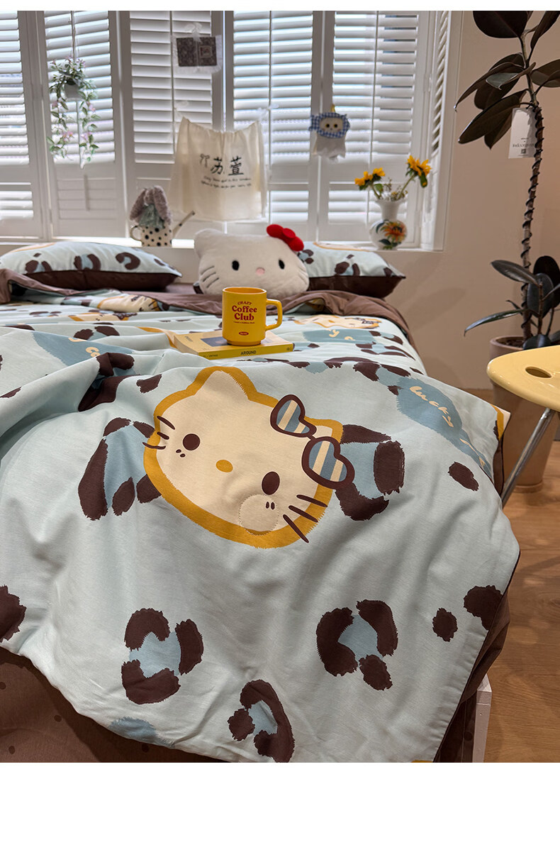 苏萱豹纹KT全棉纯棉夏被四件套夏季夏凉被空调被可机洗单双人2026热卖 蓝豹KT 单人夏被-150*200cm