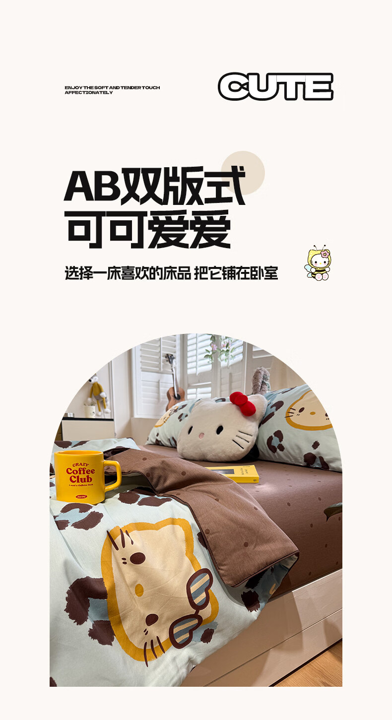无印良品100%全棉床上四件套纯棉2026新款卡通狗狗被套床单床笠款床品套件 黑白西高地【100%全棉亲肤柔软】 床单款 1.8m四件套-被套200x230cm