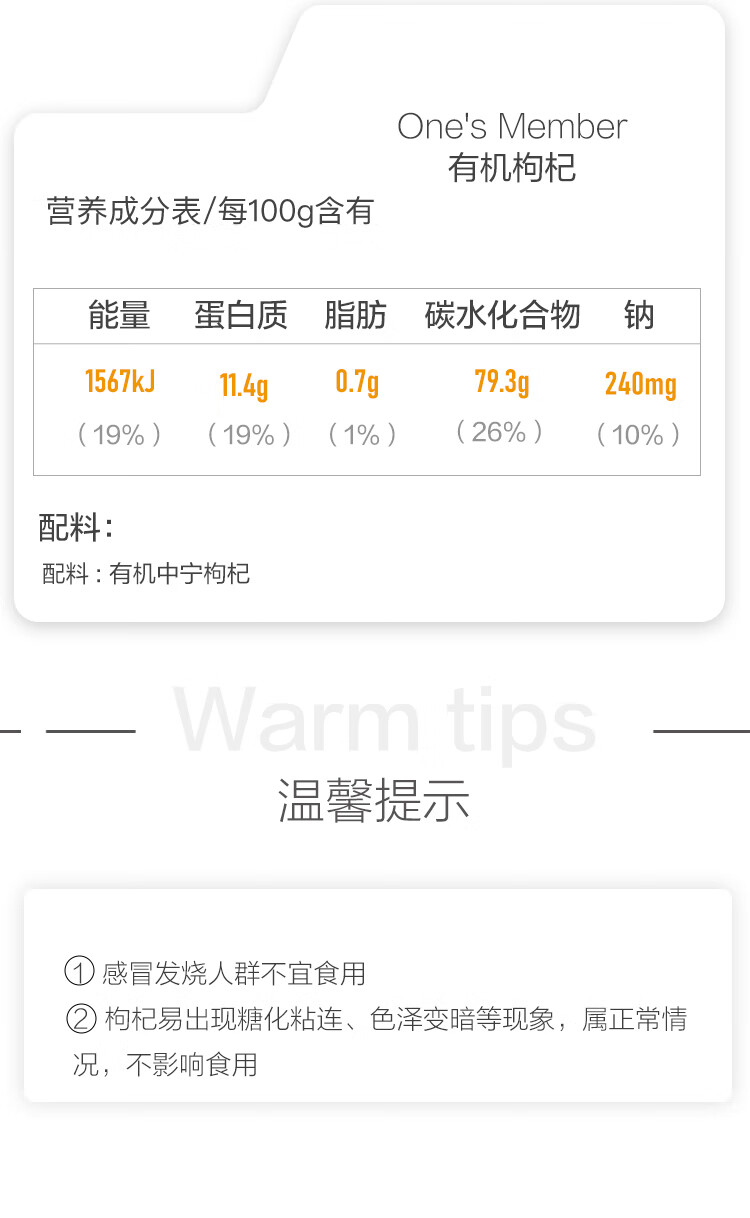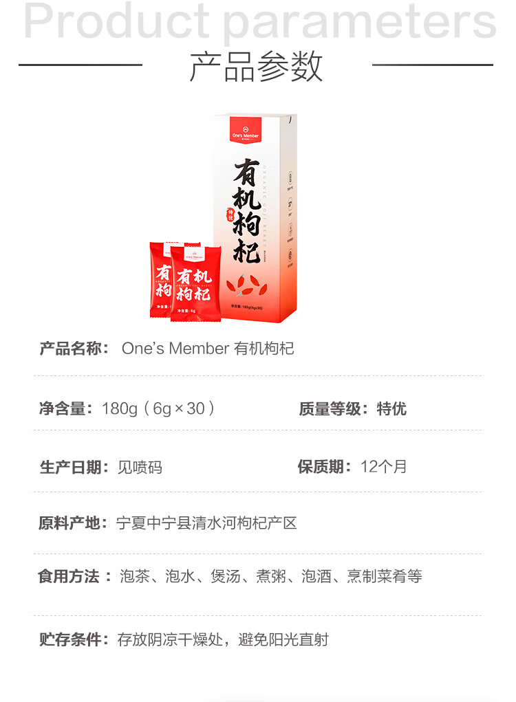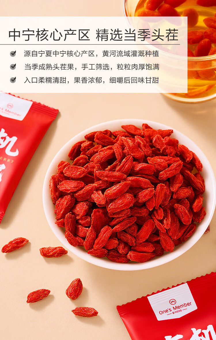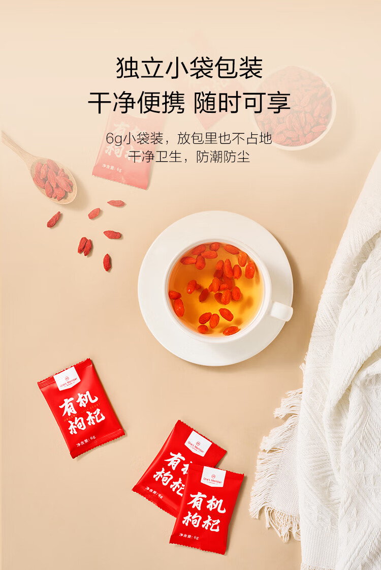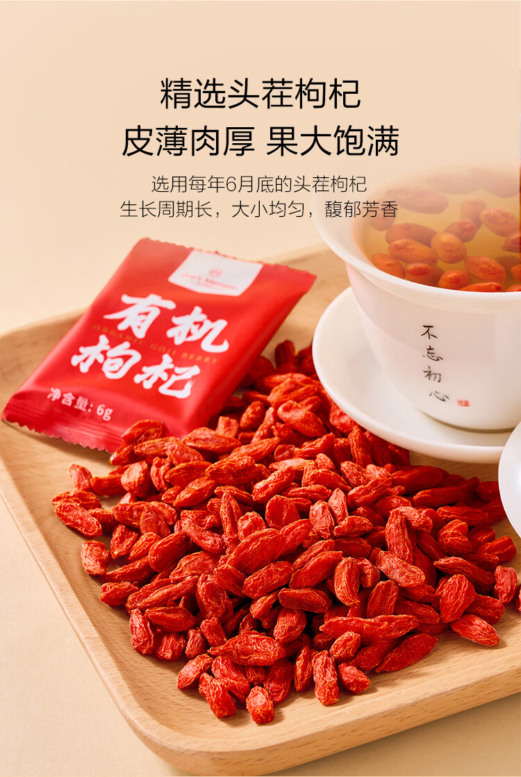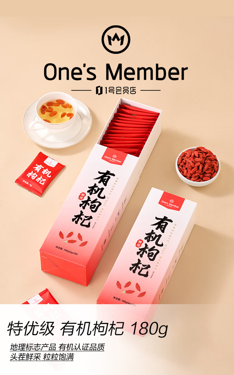1号会员店宁夏有机枸杞干果头茬特优级 180g(6g*30包)滋补煲汤煮茶独立包装