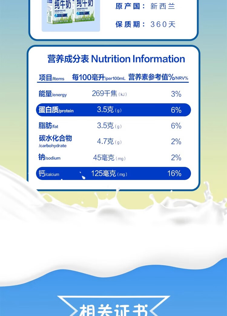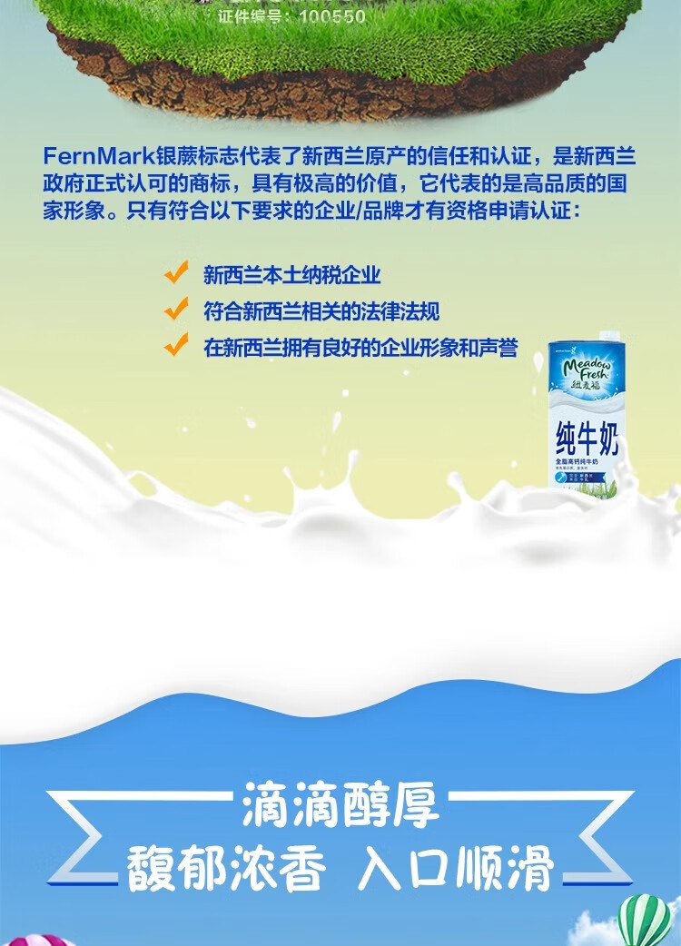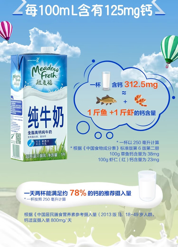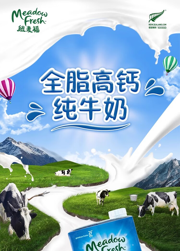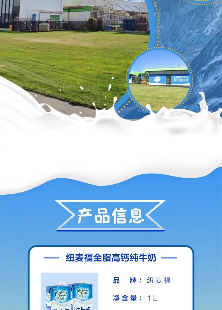 纽麦福全脂高钙纯牛奶1L*12盒新西兰进口(26年6月10日到期)