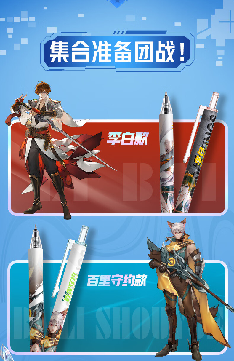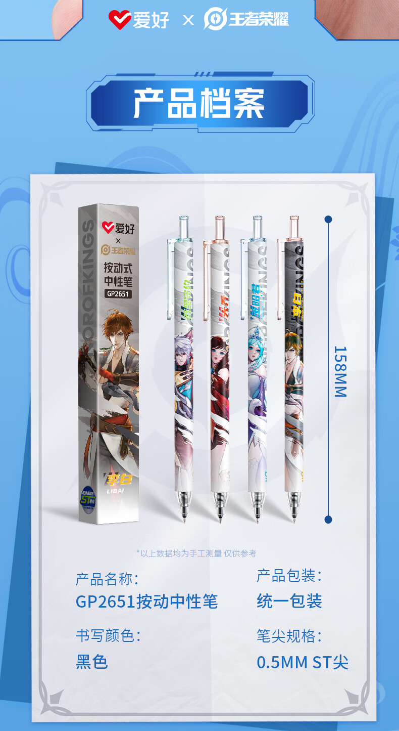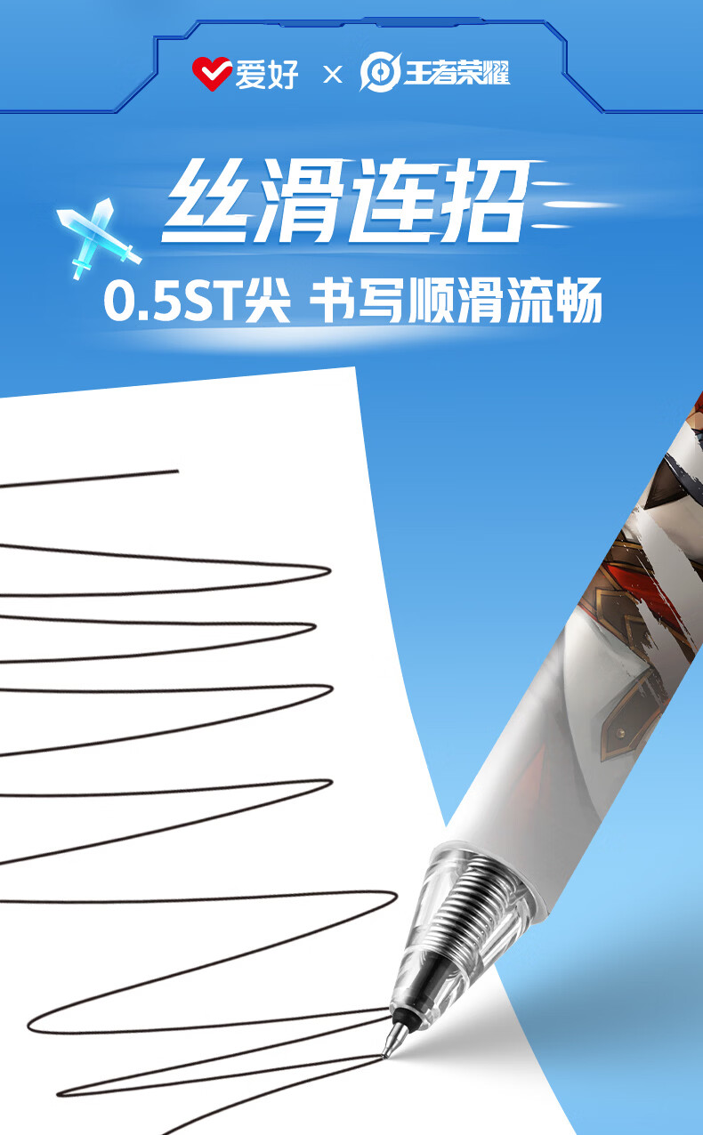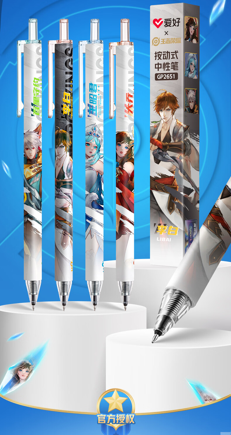 爱好(AIHAO)王者荣耀联名盲盒按动中性笔0.5mm学生速干水笔ST尖高颜值刷题笔 GP2651 【独立包装】盲盒笔10支