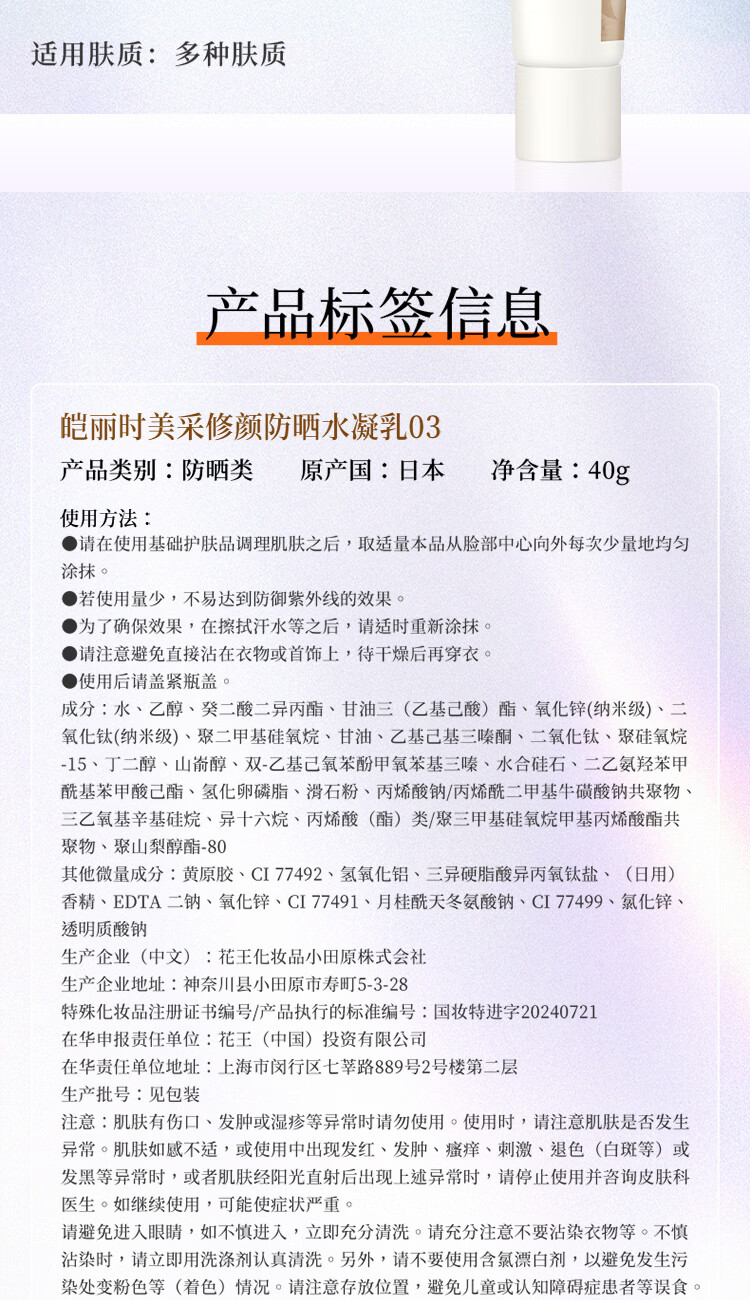 皑丽屈臣氏 皑丽时美采防晒水凝乳 修颜防晒水凝乳03(裸色)40g