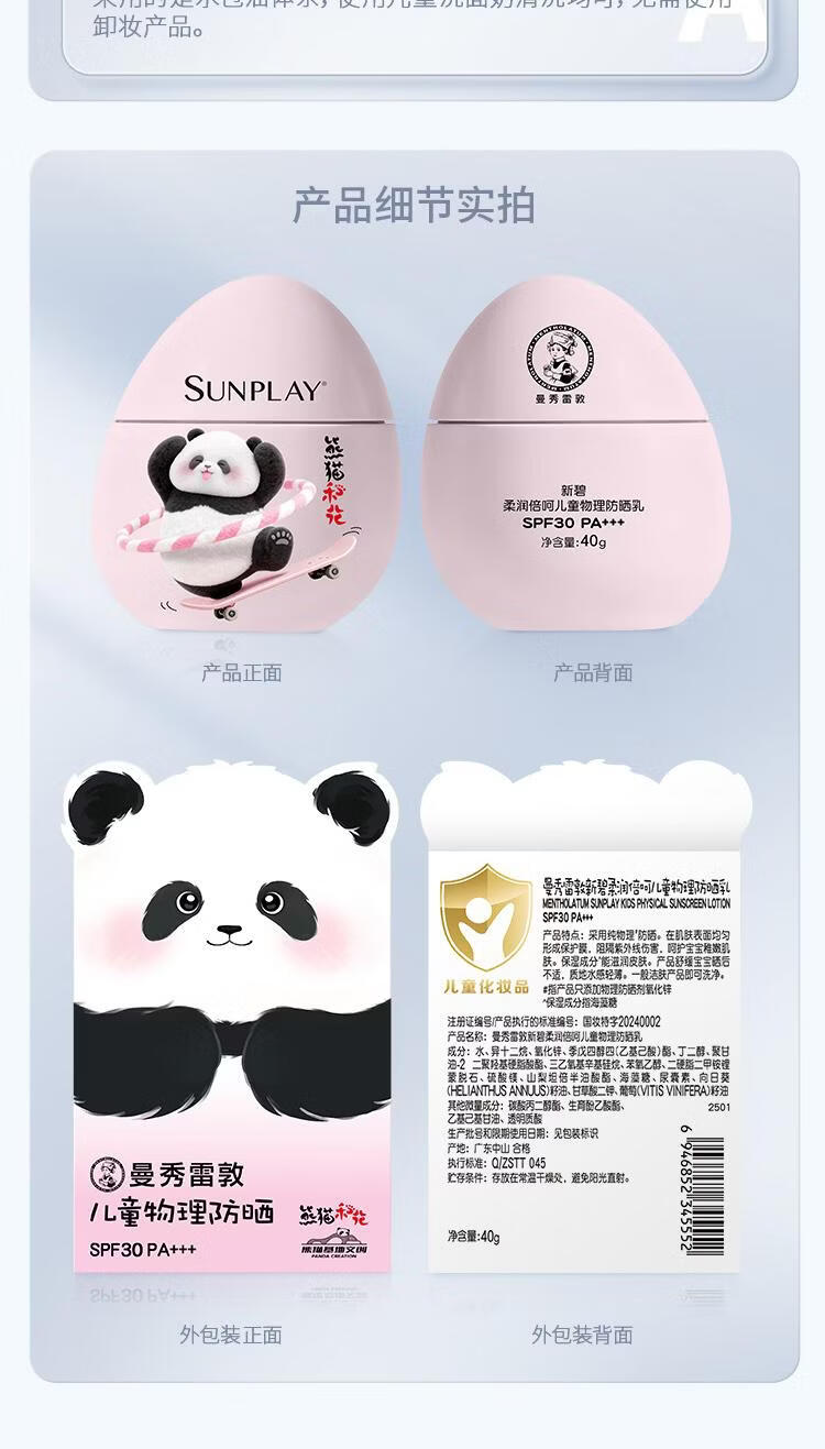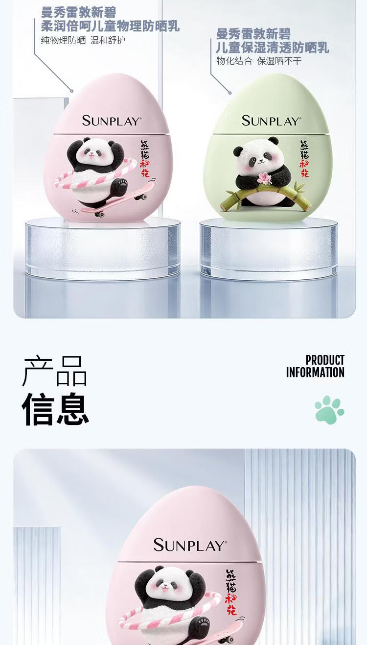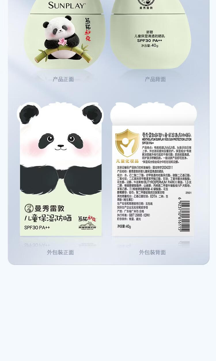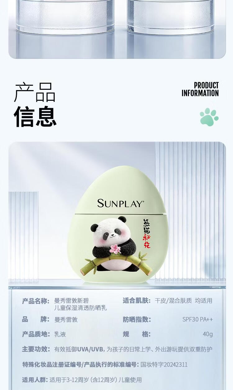 屈臣氏曼秀雷敦新碧儿童物理防晒乳 40g 1瓶 保湿清透防晒乳-熊猫花花版