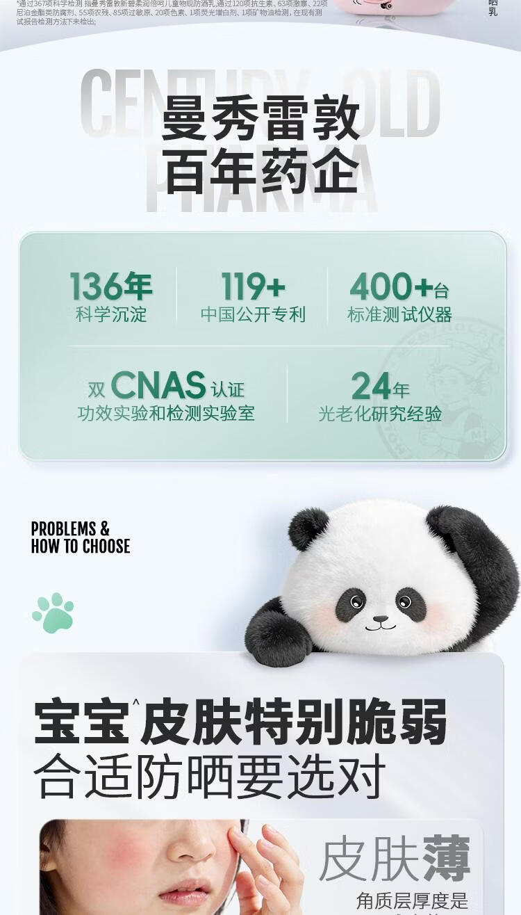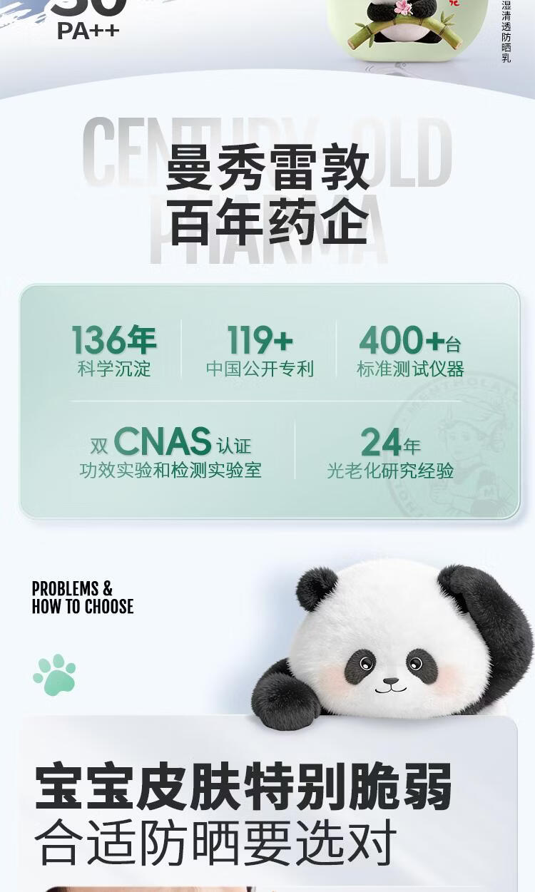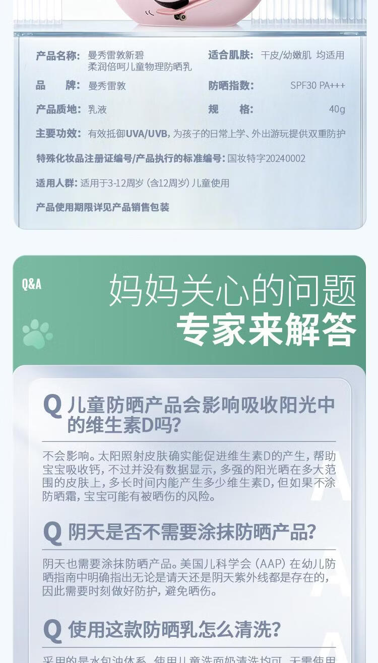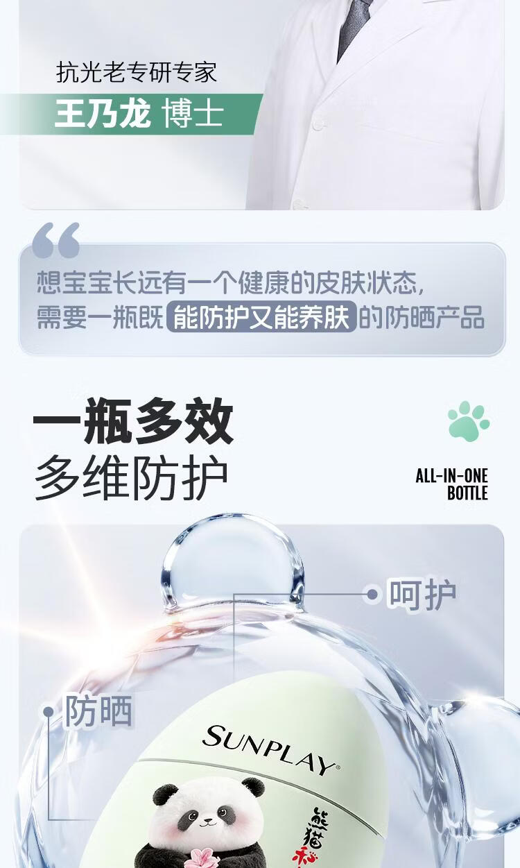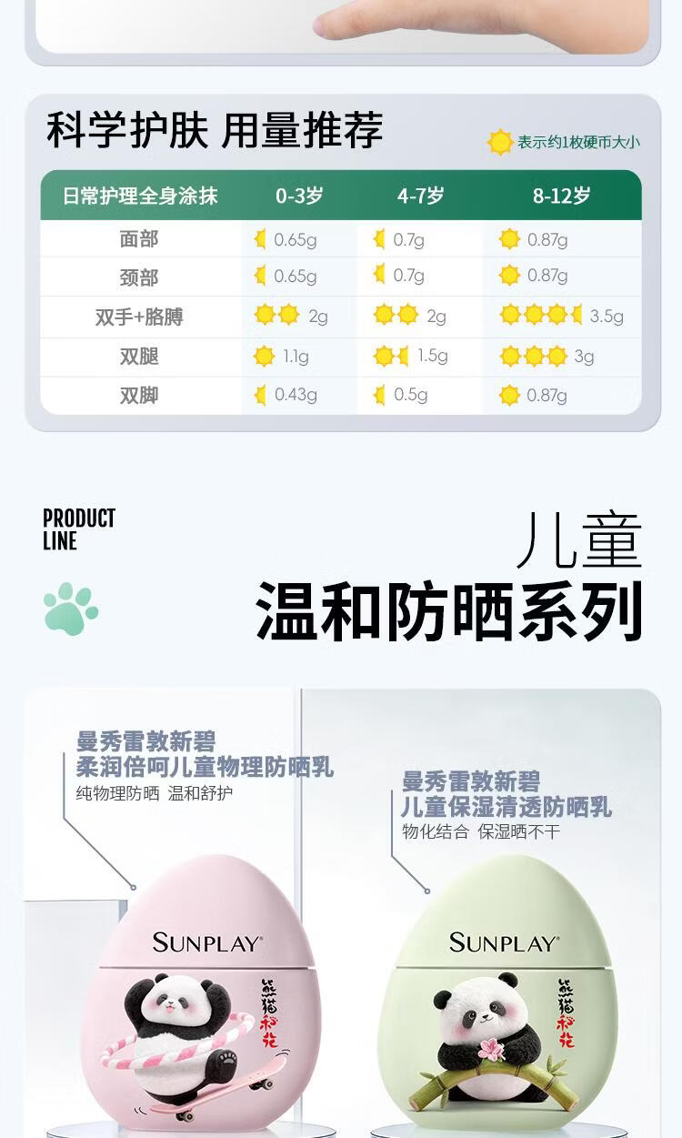 屈臣氏曼秀雷敦新碧儿童物理防晒乳 40g 1瓶 保湿清透防晒乳-熊猫花花版